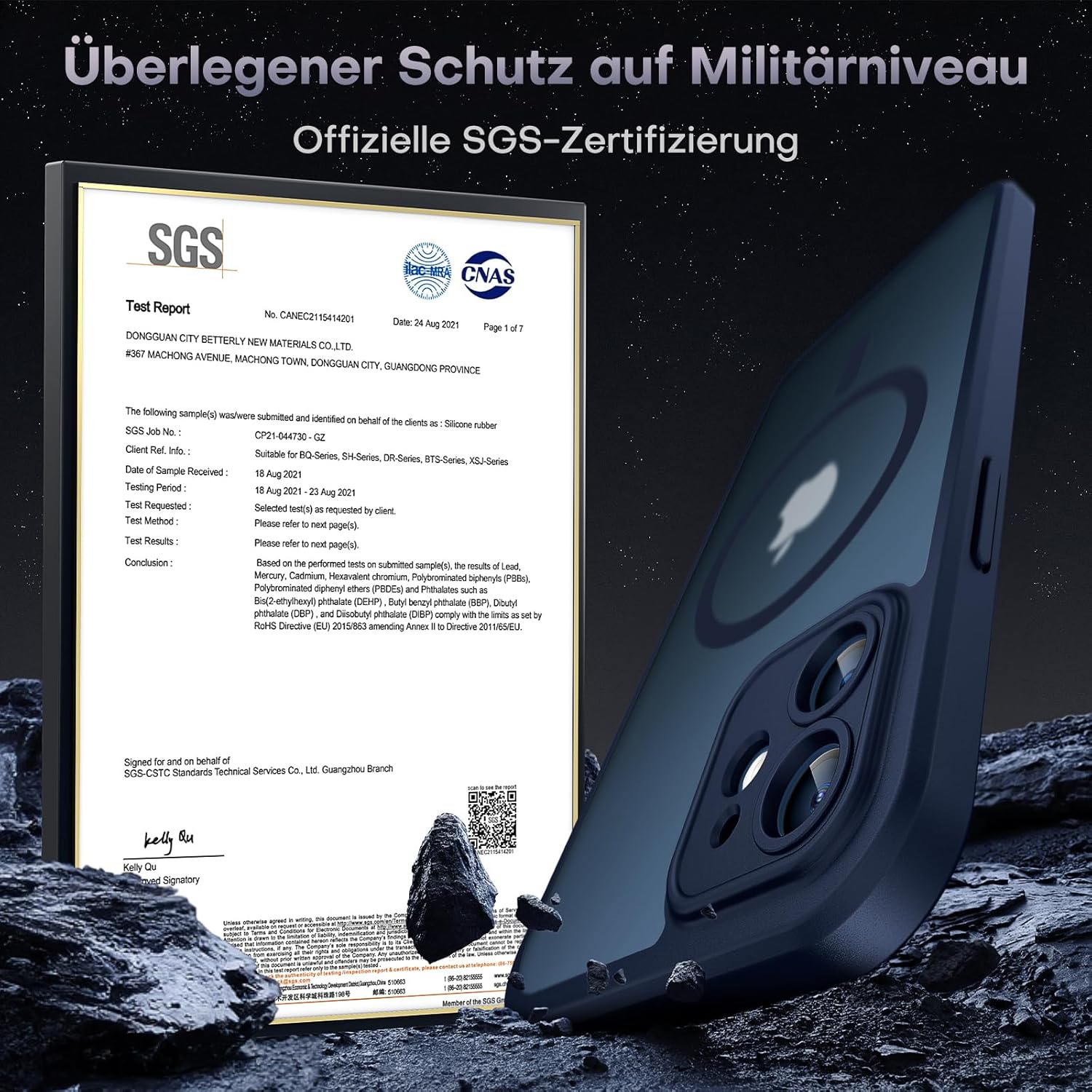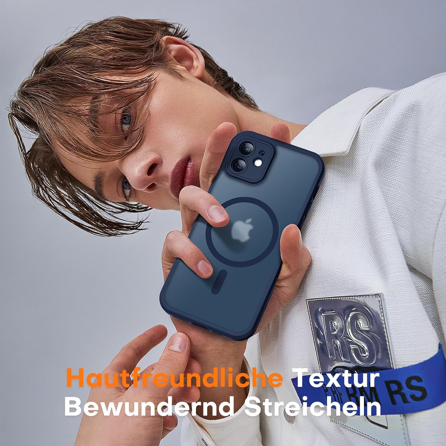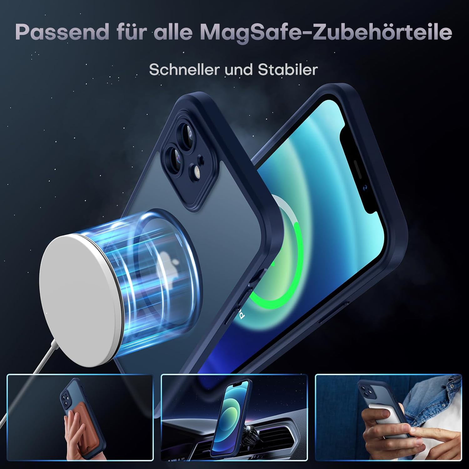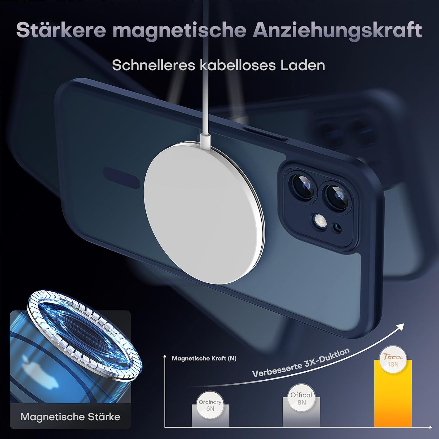 TOCOL калъф за iPhone 12, Magsafe, пълна защита на камерата, удароустойчив, устойчив на надраскване, прозрачен гръб, магнитен калъф за мобилен телефон за iPhone 12, син