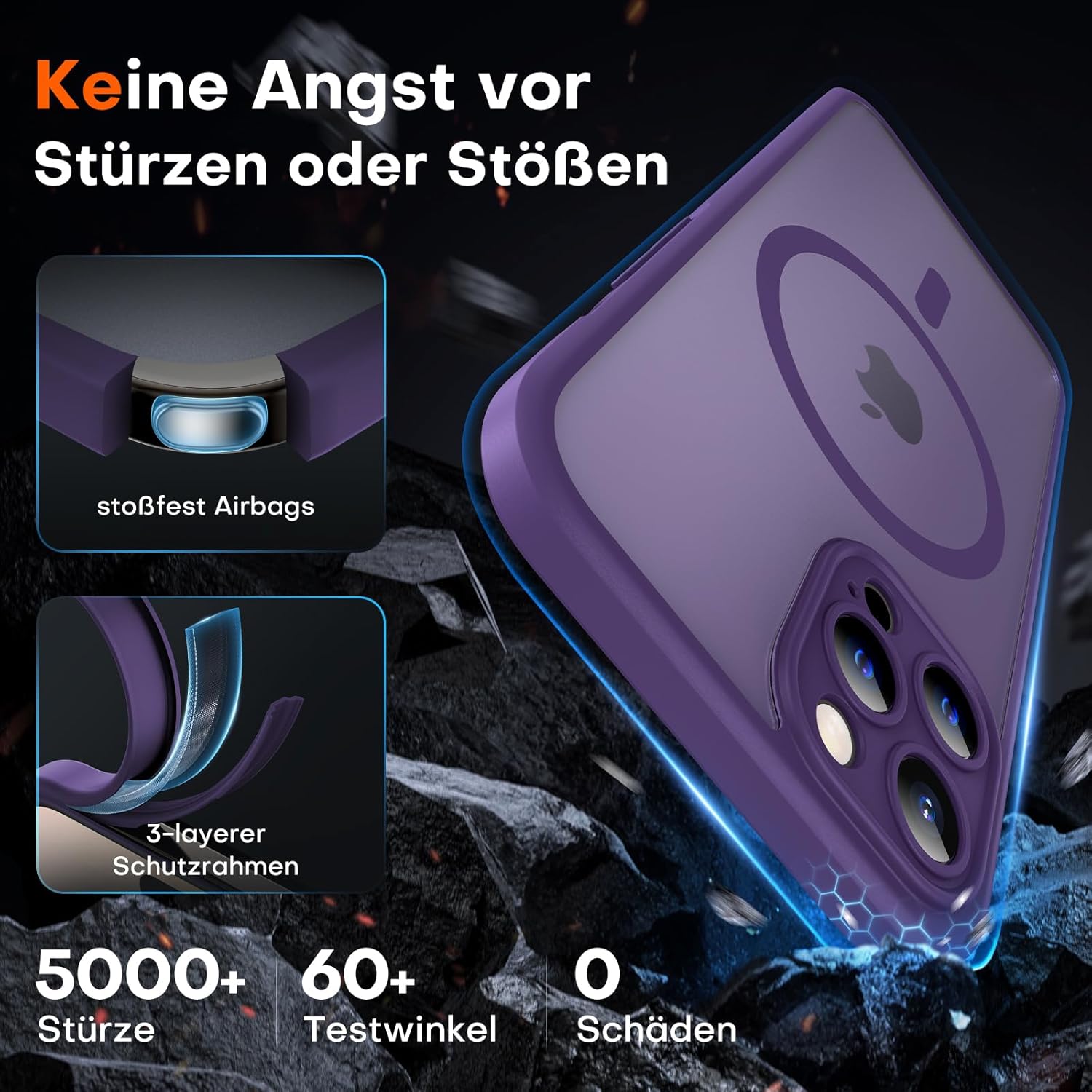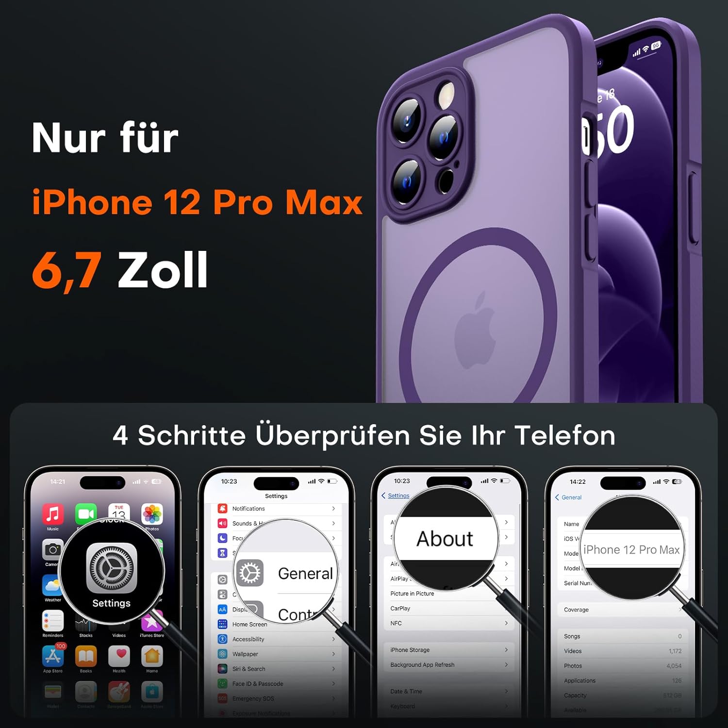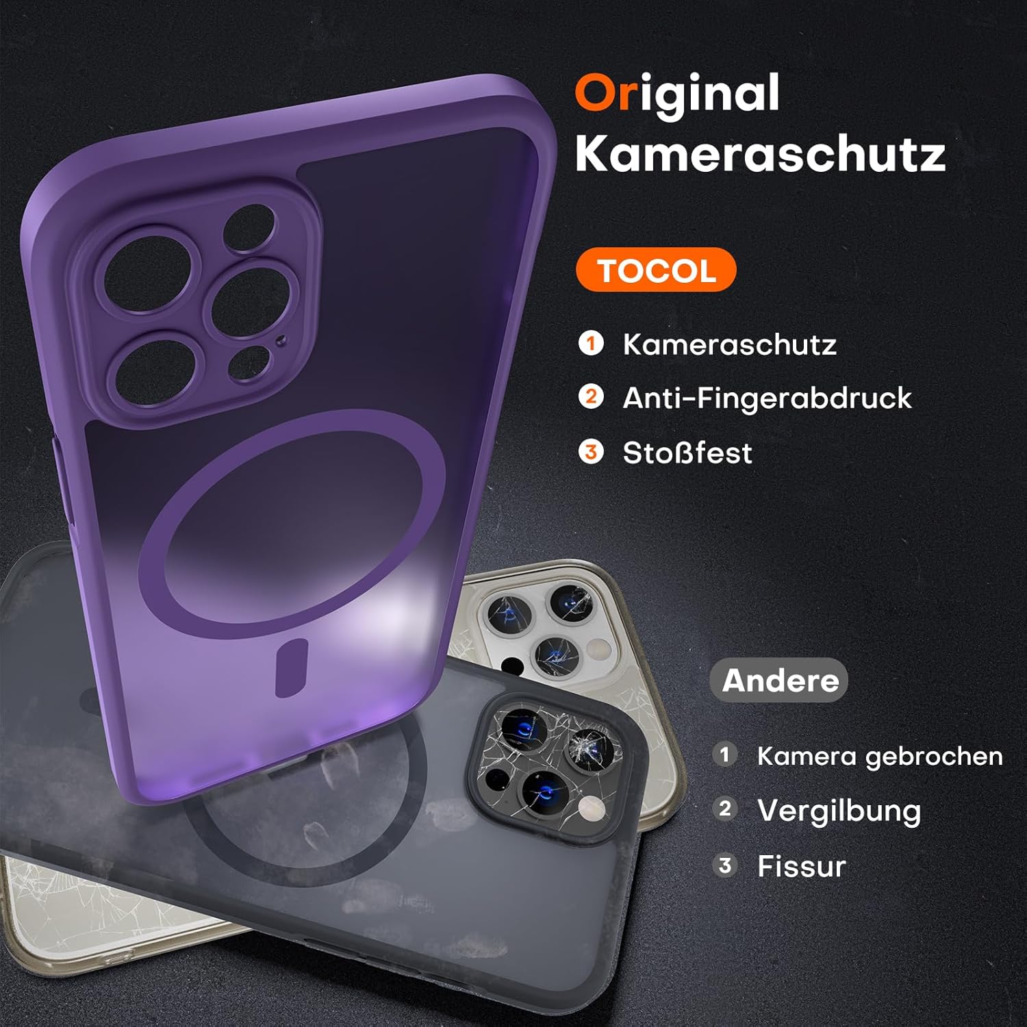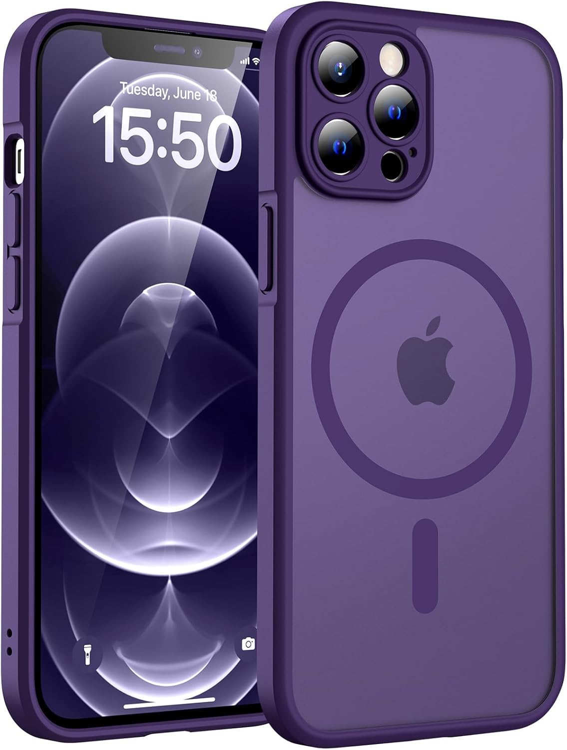 TOCOL Калъф за iPhone 12 Pro Max с Magsafe, Пълна защита на камерата, Удароустойчив, Устойчив на надраскване, Прозрачен гръб, Магнитен Калъф за Мобилен Телефон за iPhone 12 Pro Max, Тъмно Лилав