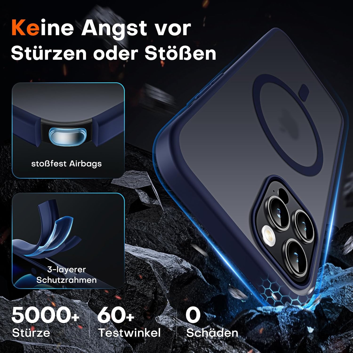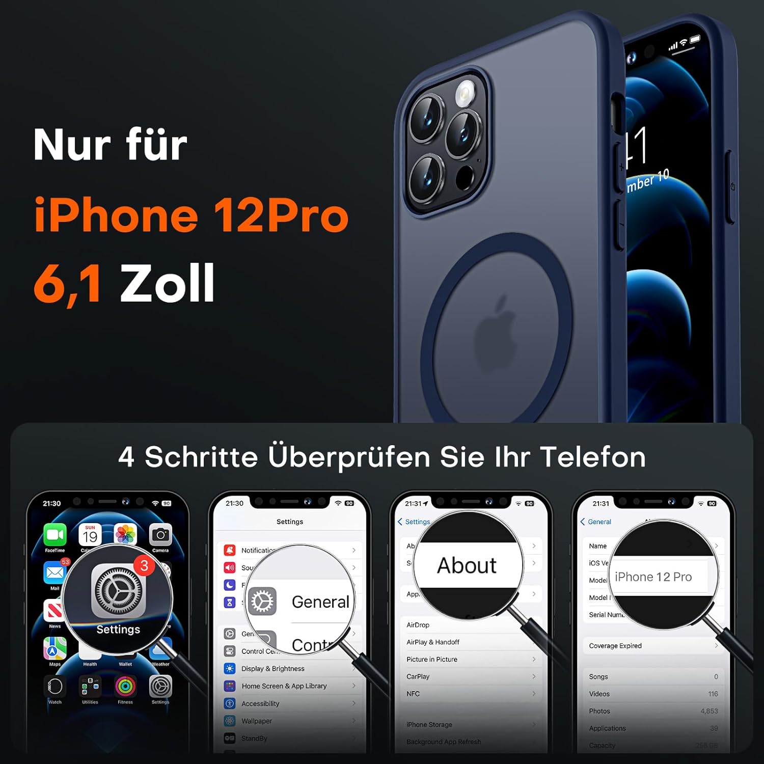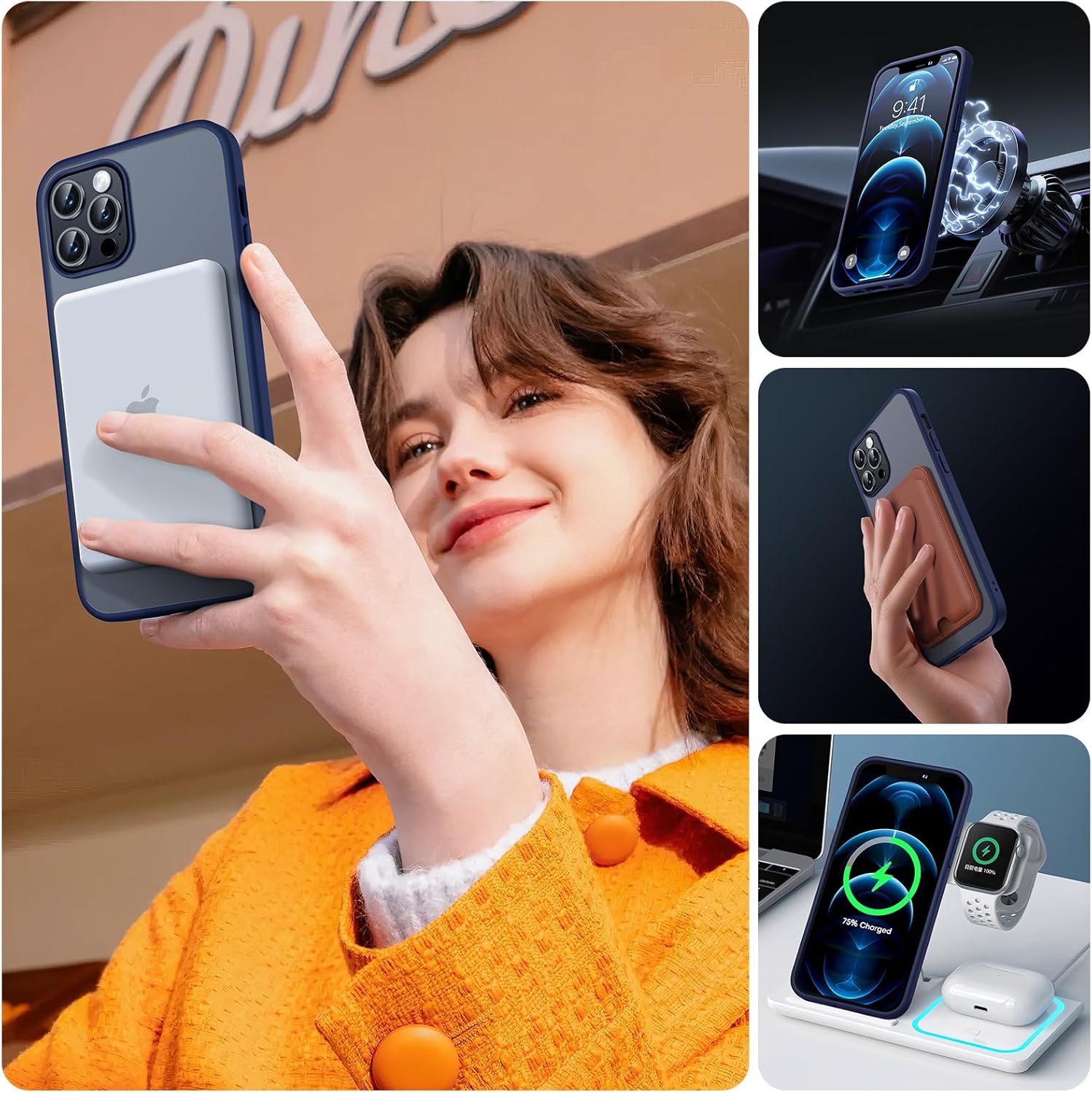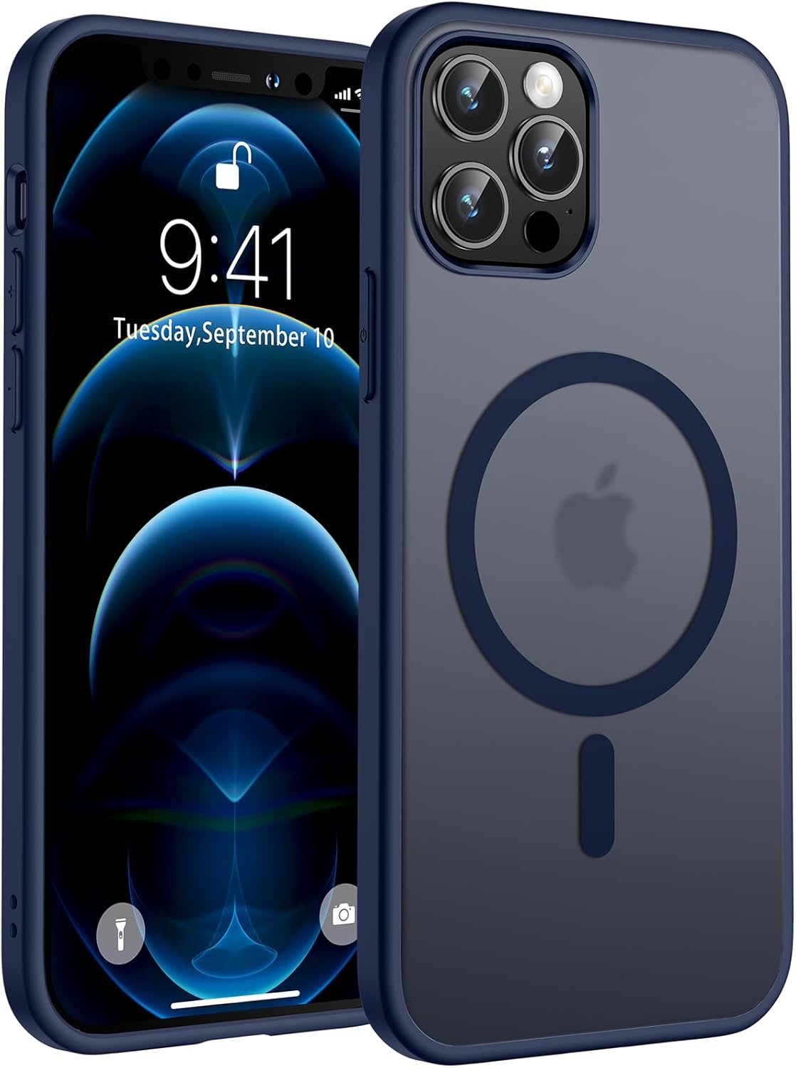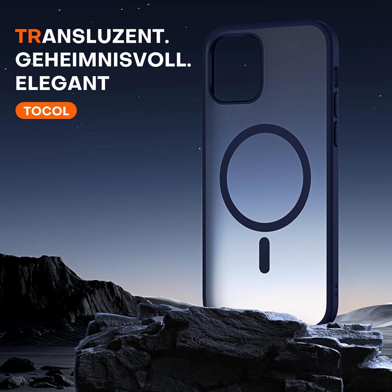 TOCOL Калъф за iPhone 12 Pro с Magsafe покритие, Удароустойчив, Против пръстови отпечатъци, Устойчив на надраскване, Прозрачен гръб, Неплъзгащ се, Матов, Магнитен Калъф за Мобилен Телефон за iPhone 12 Pro, Син