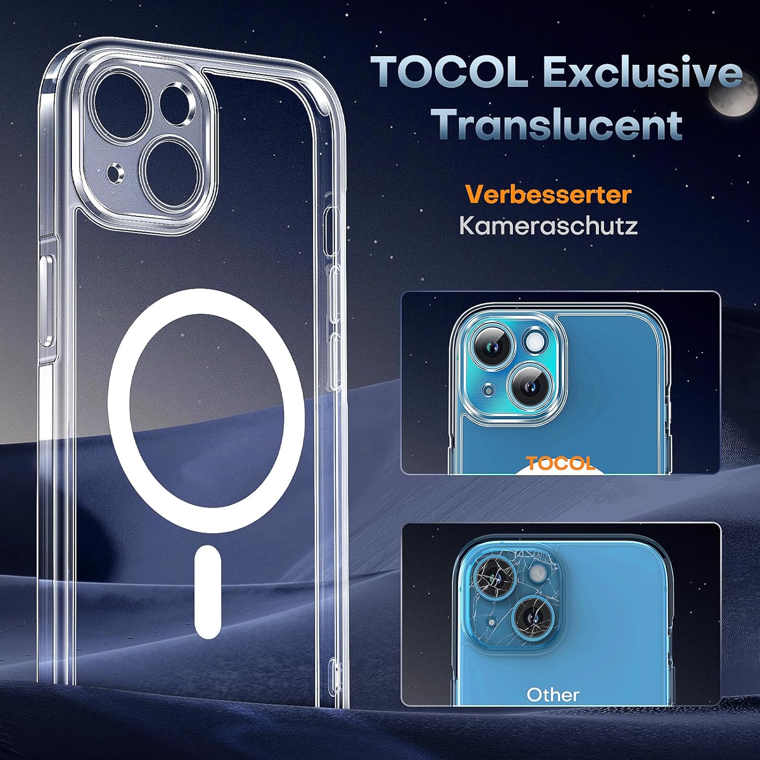 TOCOL калъф за iPhone 13, Magsafe, пълна защита на камерата, никога не пожълтява, удароустойчив, устойчив на надраскване, магнитен калъф за мобилен телефон за iPhone 13, прозрачен