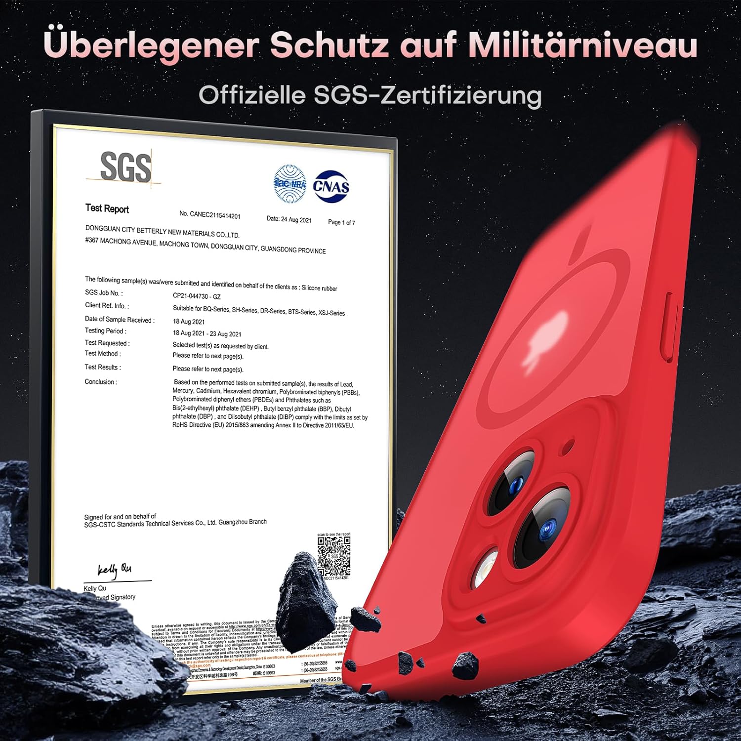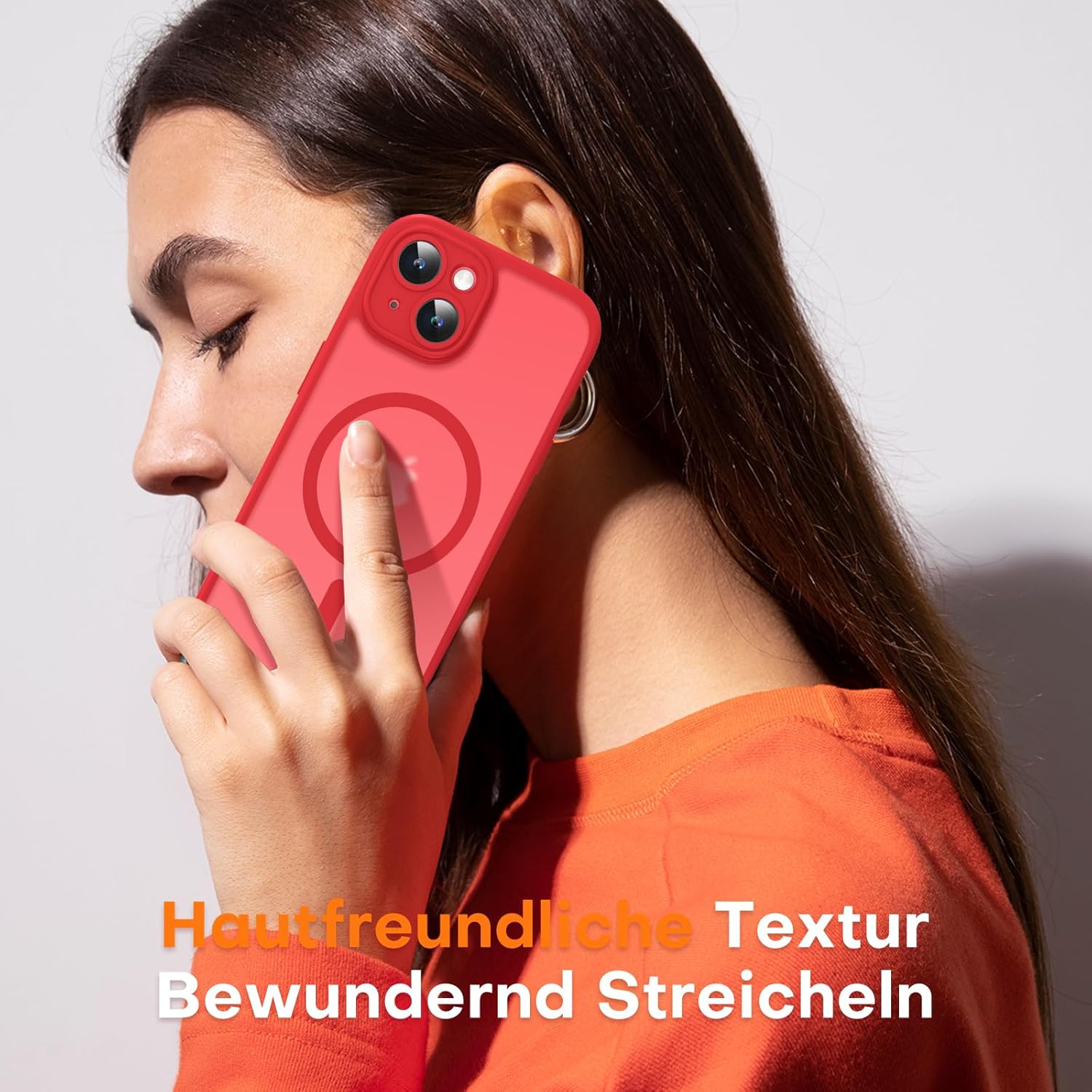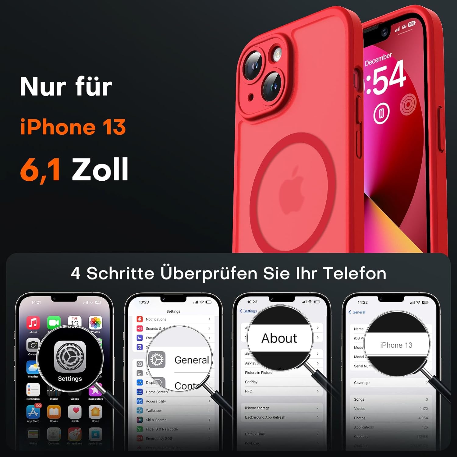 TOCOL калъф за iPhone 13, Magsafe, пълна защита на камерата, удароустойчив, устойчив на надраскване, прозрачен гръб, магнитен калъф за мобилен телефон за iPhone 13, червен