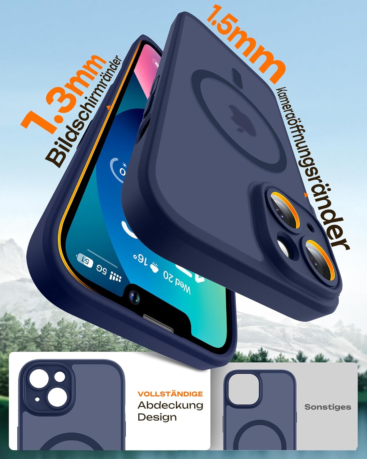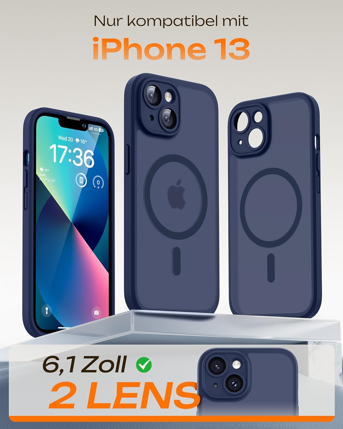 TOCOL калъф за iPhone 13, Magsafe, пълна защита на камерата, удароустойчив, устойчив на надраскване, прозрачен гръб, магнитен калъф за мобилен телефон за iPhone 13, син