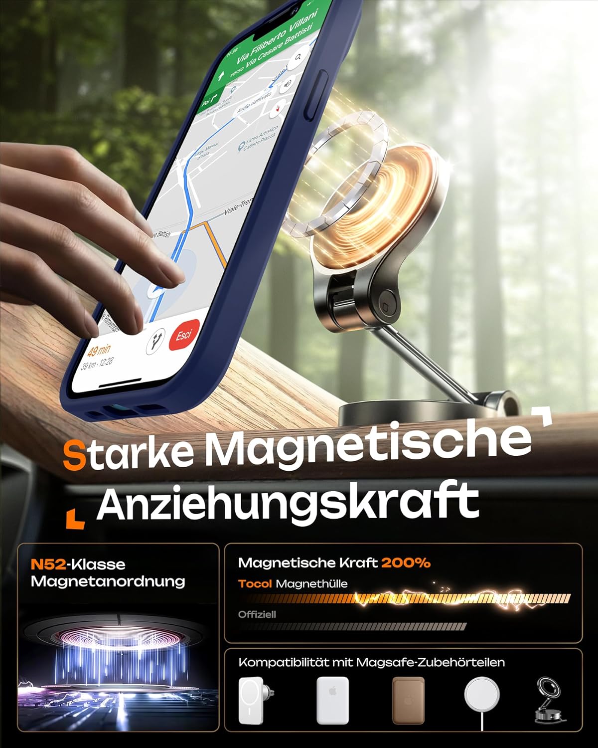 • Вграден магнитен пръстен: Магнитен калъф за iPhone 17 с вграден магнитен пръстен, никога не се разхлабва. Висока сила на задържане 20N за всички магнитни аксесоари. Остава стабилен в стойката за кола дори при тежки, неравни подове.