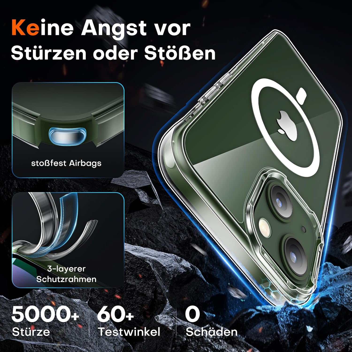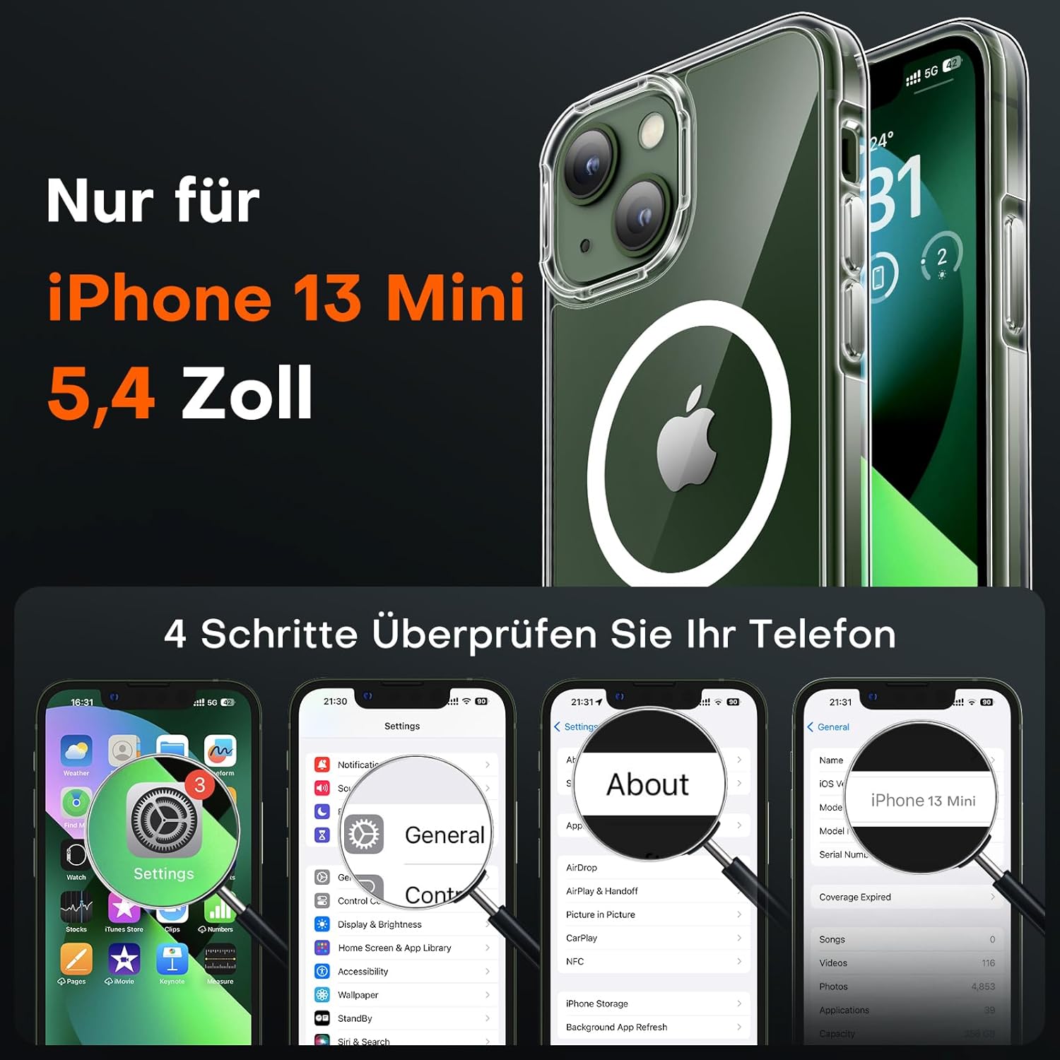 TOCOL Калъф за iPhone 13 Mini с Magsafe, никога не пожълтява, удароустойчив, против пръстови отпечатъци, устойчив на надраскване, неплъзгащ се, магнитен калъф за мобилен телефон за iPhone 13 Mini, прозрачен