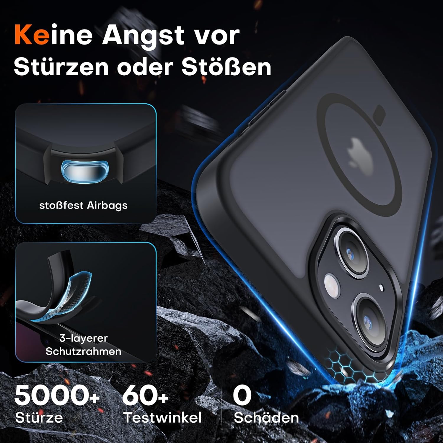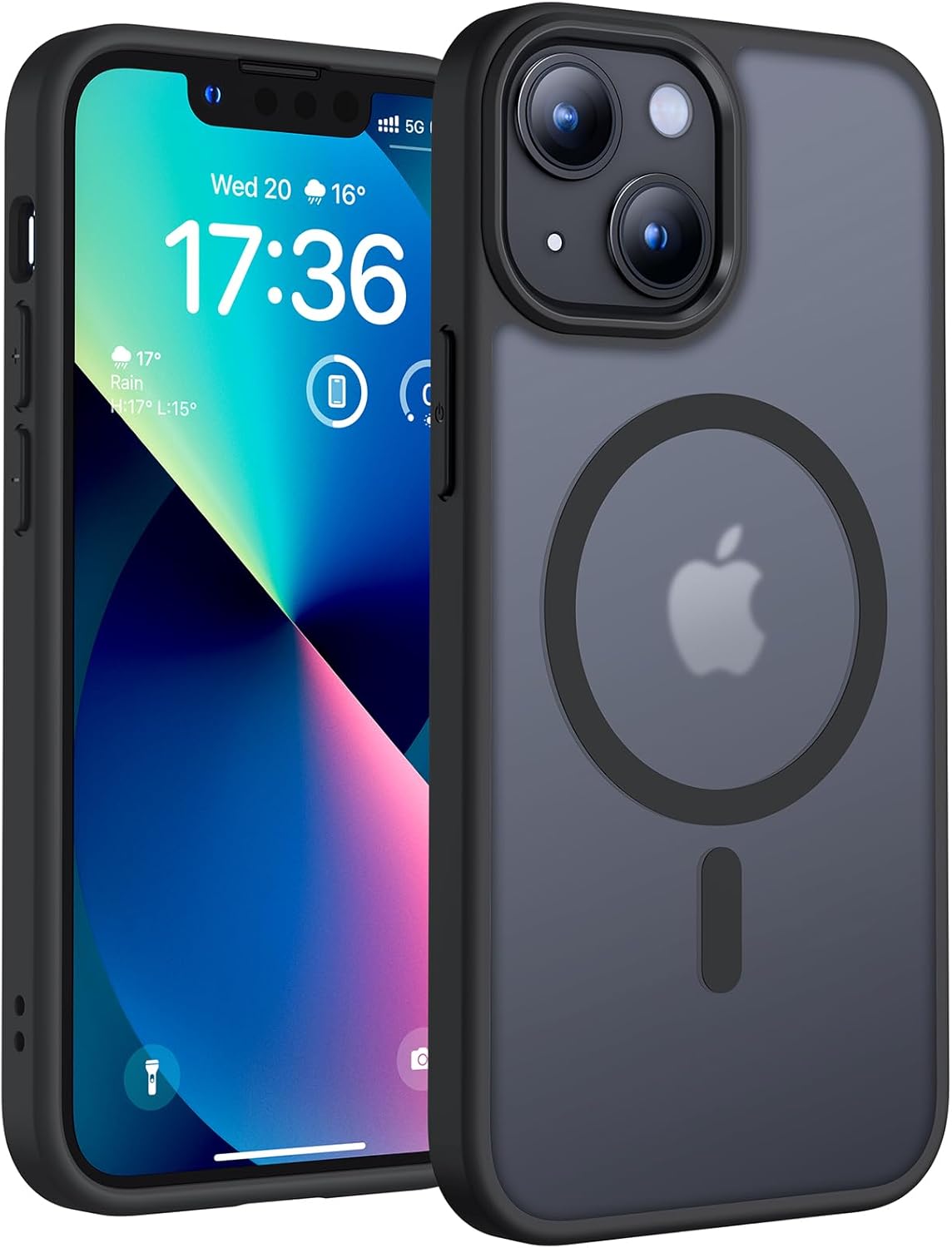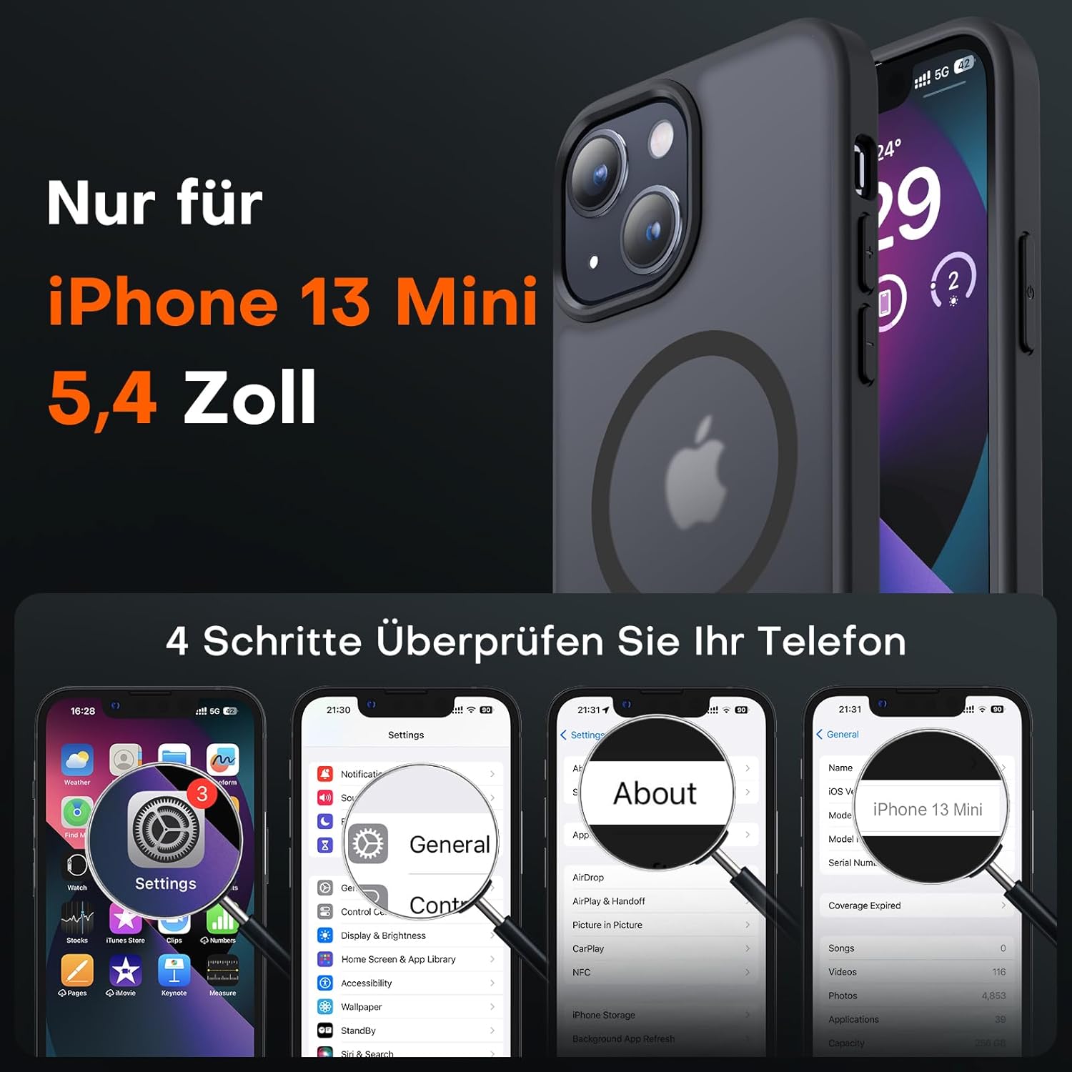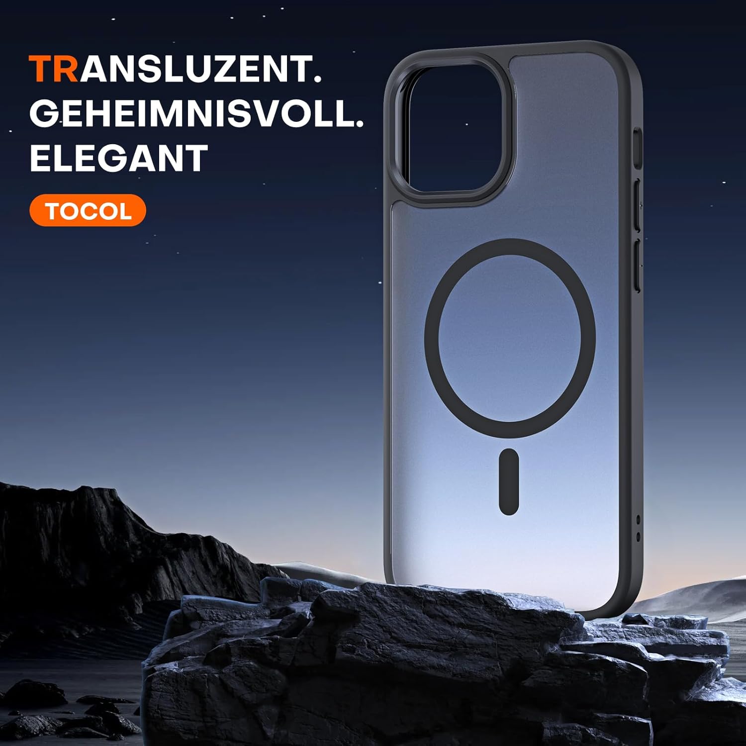 TOCOL Калъф за iPhone 13 Mini с Magsafe покритие, Удароустойчив, Против пръстови отпечатъци, Устойчив на надраскване, Прозрачен гръб, Неплъзгащ се, Матов, Магнитен Калъф за Мобилен Телефон за iPhone 13 Mini, Черен