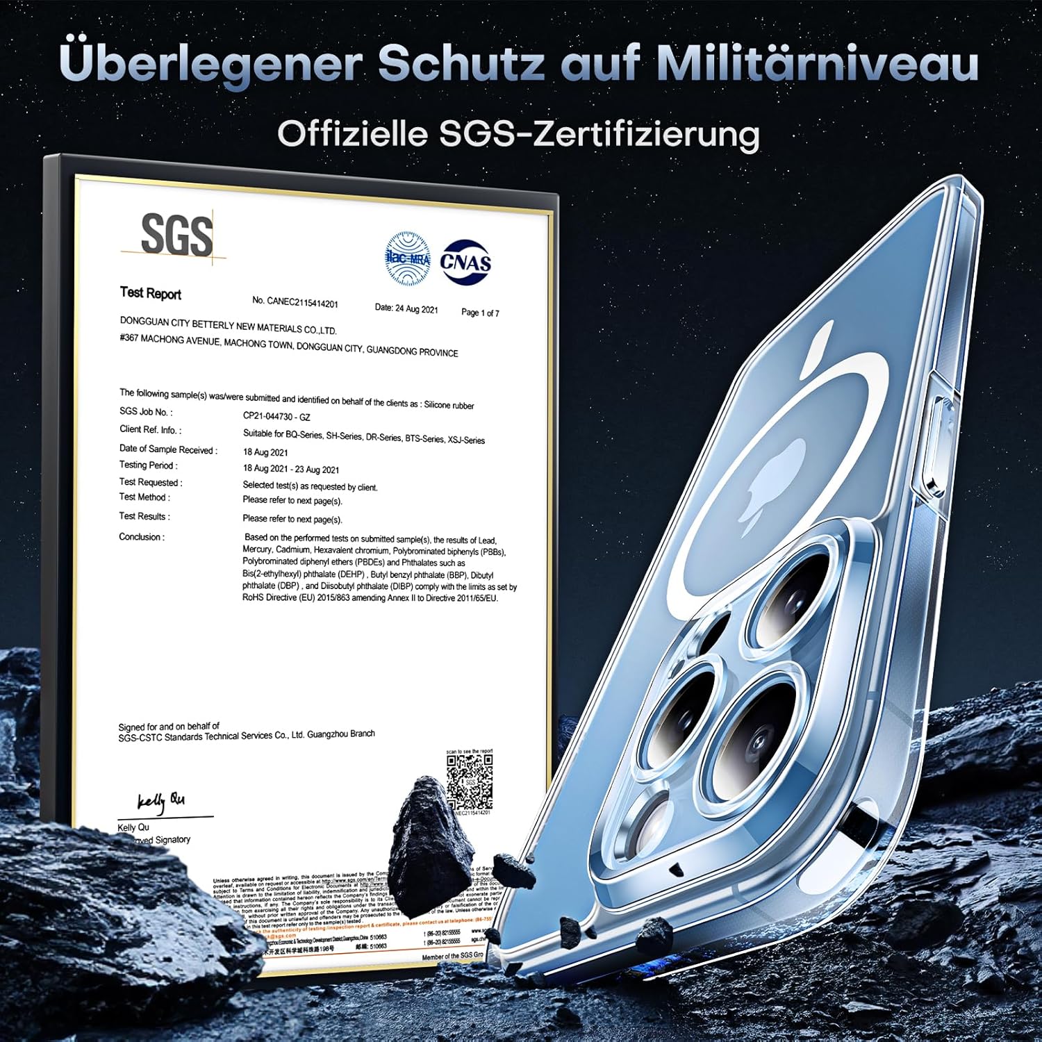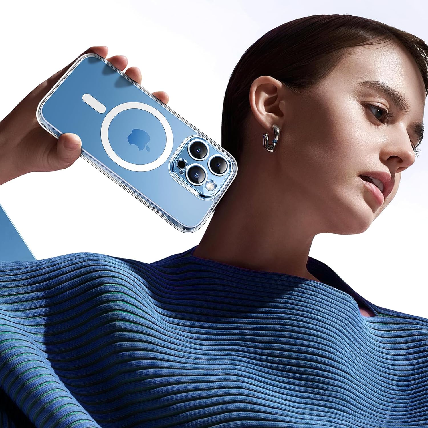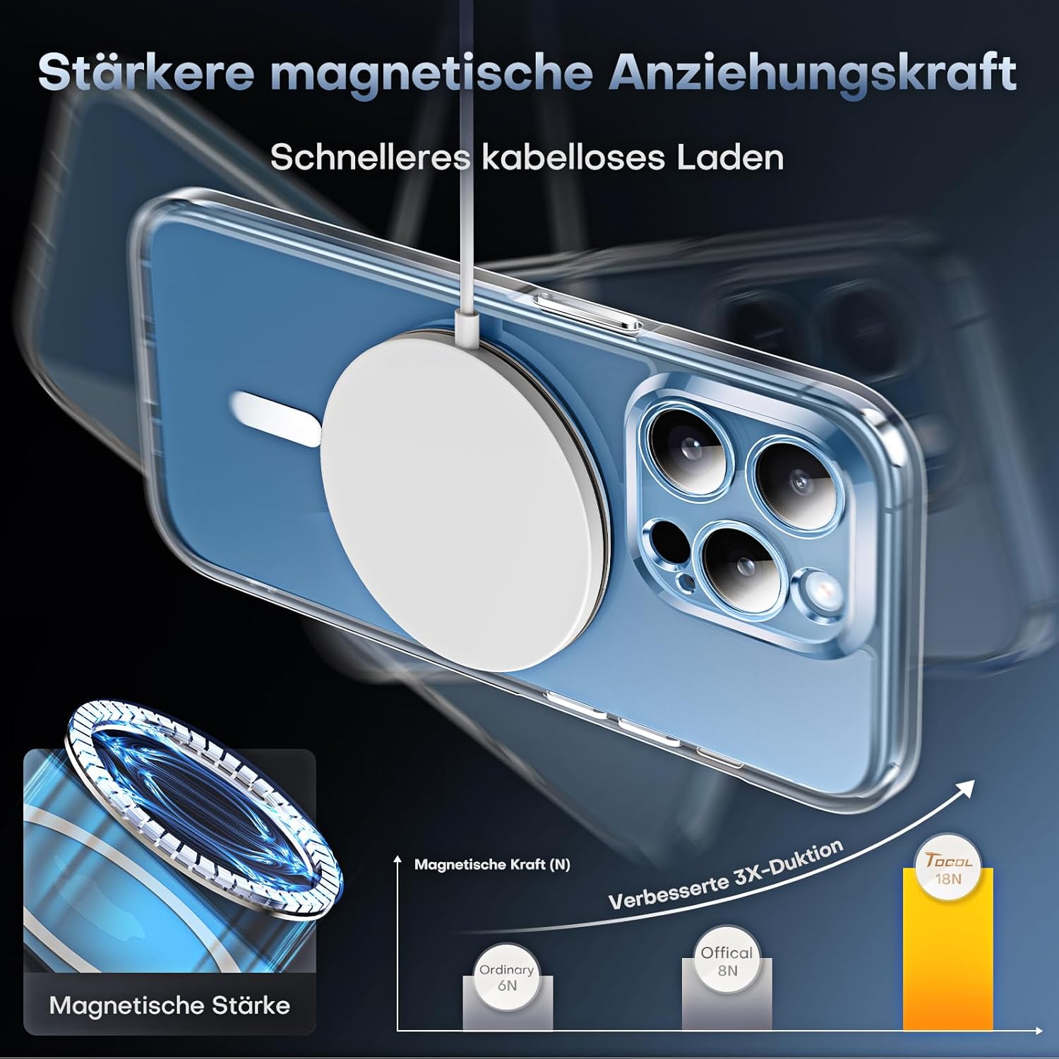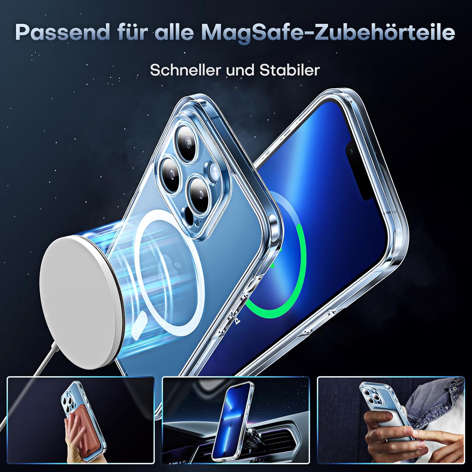TOCOL Калъф за iPhone 13 Pro Max с Magsafe, Пълна защита на камерата, Никога не пожълтява, Удароустойчив, Устойчив на надраскване, Магнитен калъф за мобилен телефон за iPhone 13 Pro Max, Прозрачен