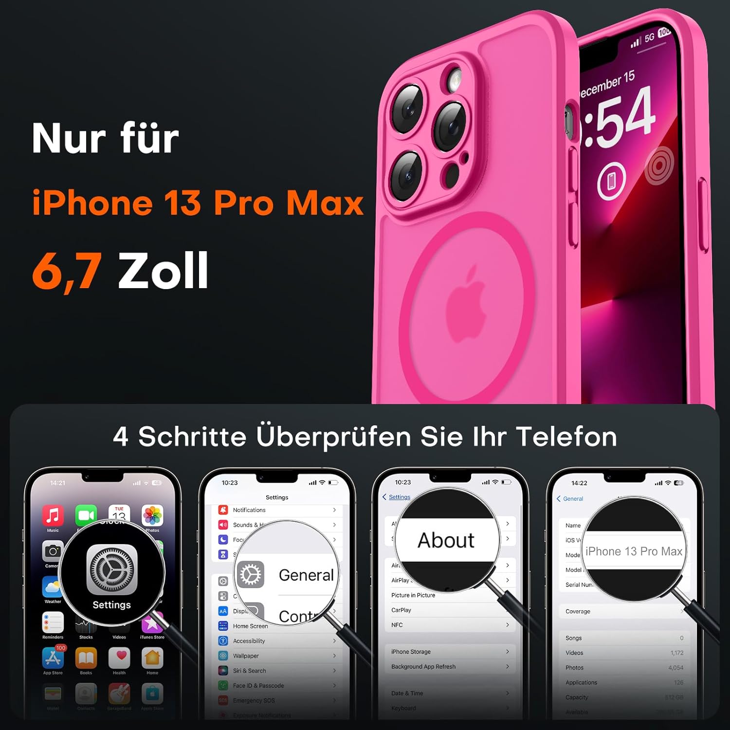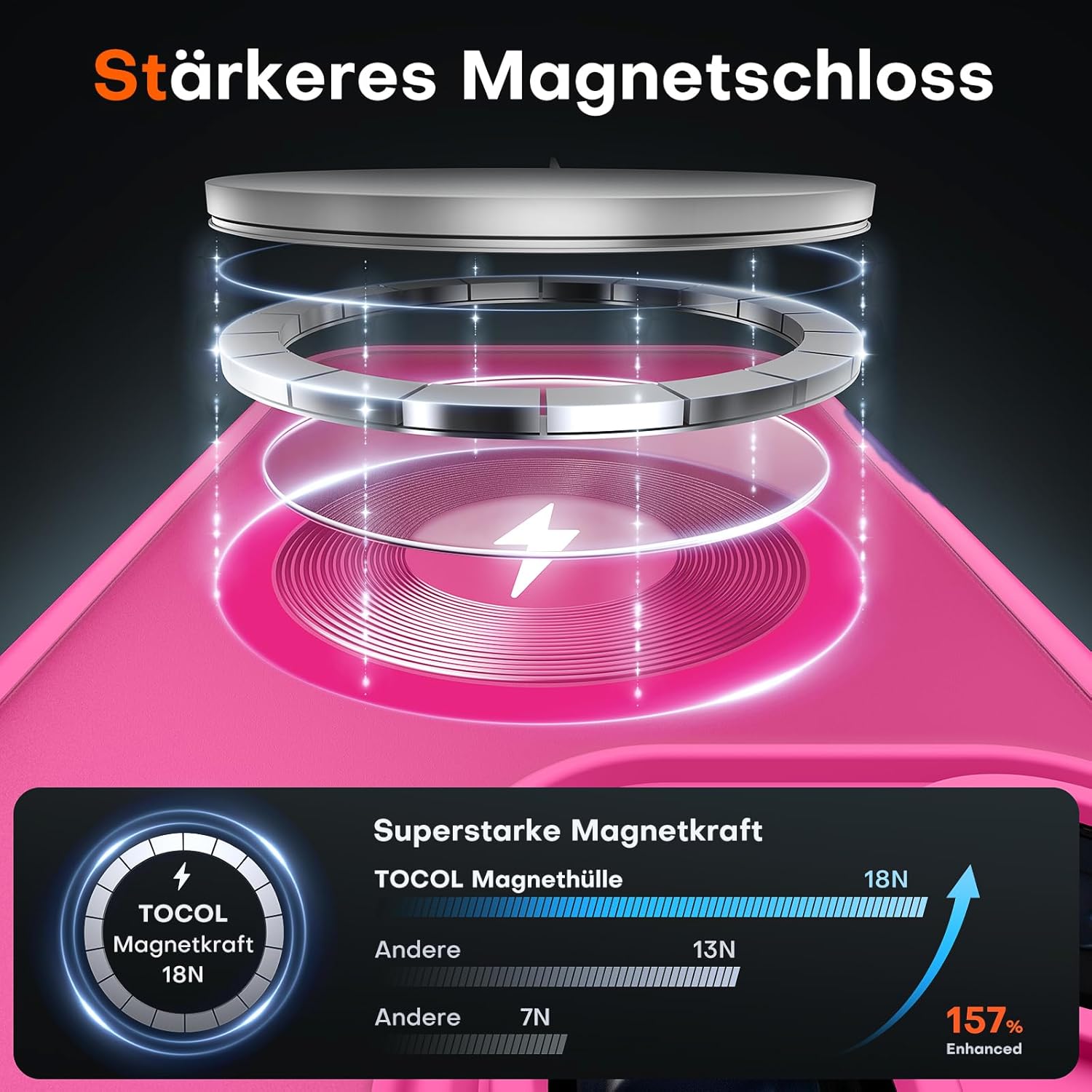 TOCOL Калъф за iPhone 13 Pro Max с Magsafe, Пълна защита на камерата, Удароустойчив, Устойчив на надраскване, Прозрачен гръб, Магнитен Калъф за Мобилен Телефон за iPhone 13 Pro Max, Ярко Розов
