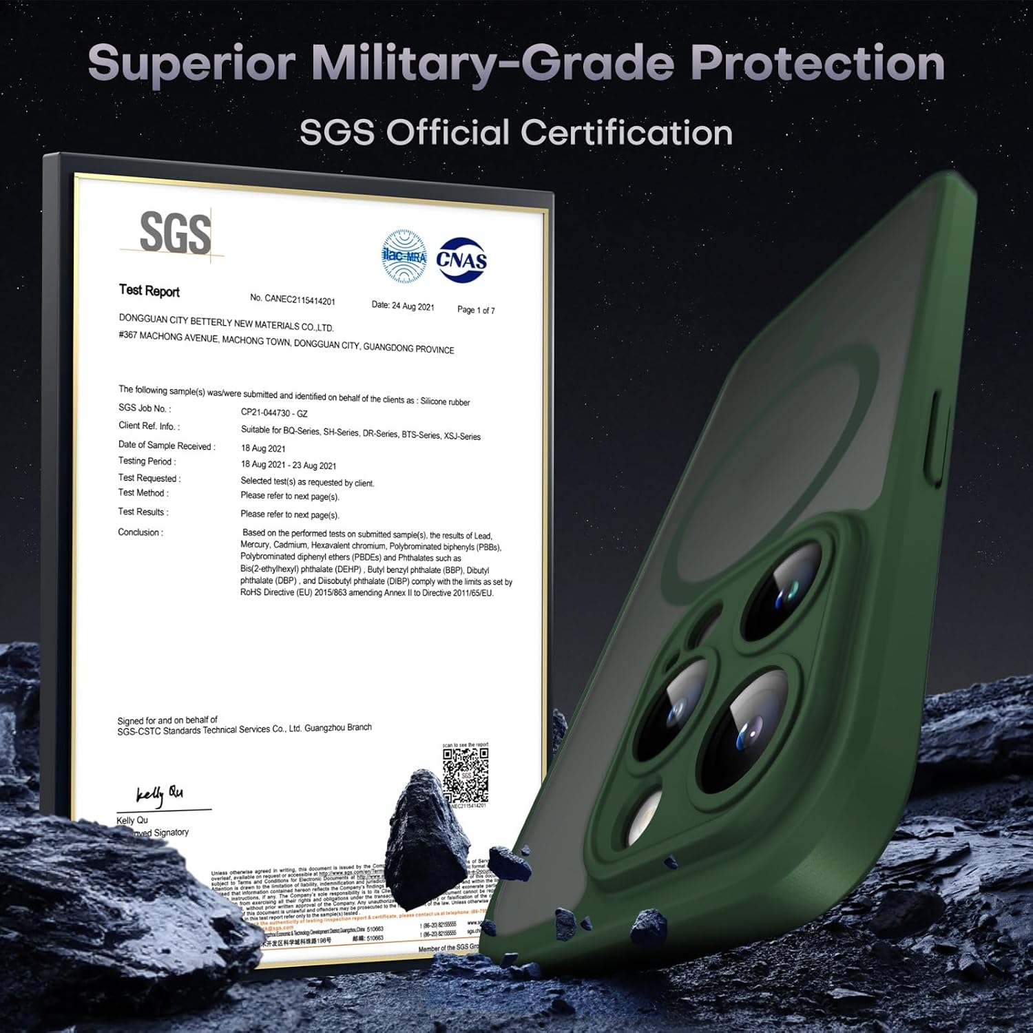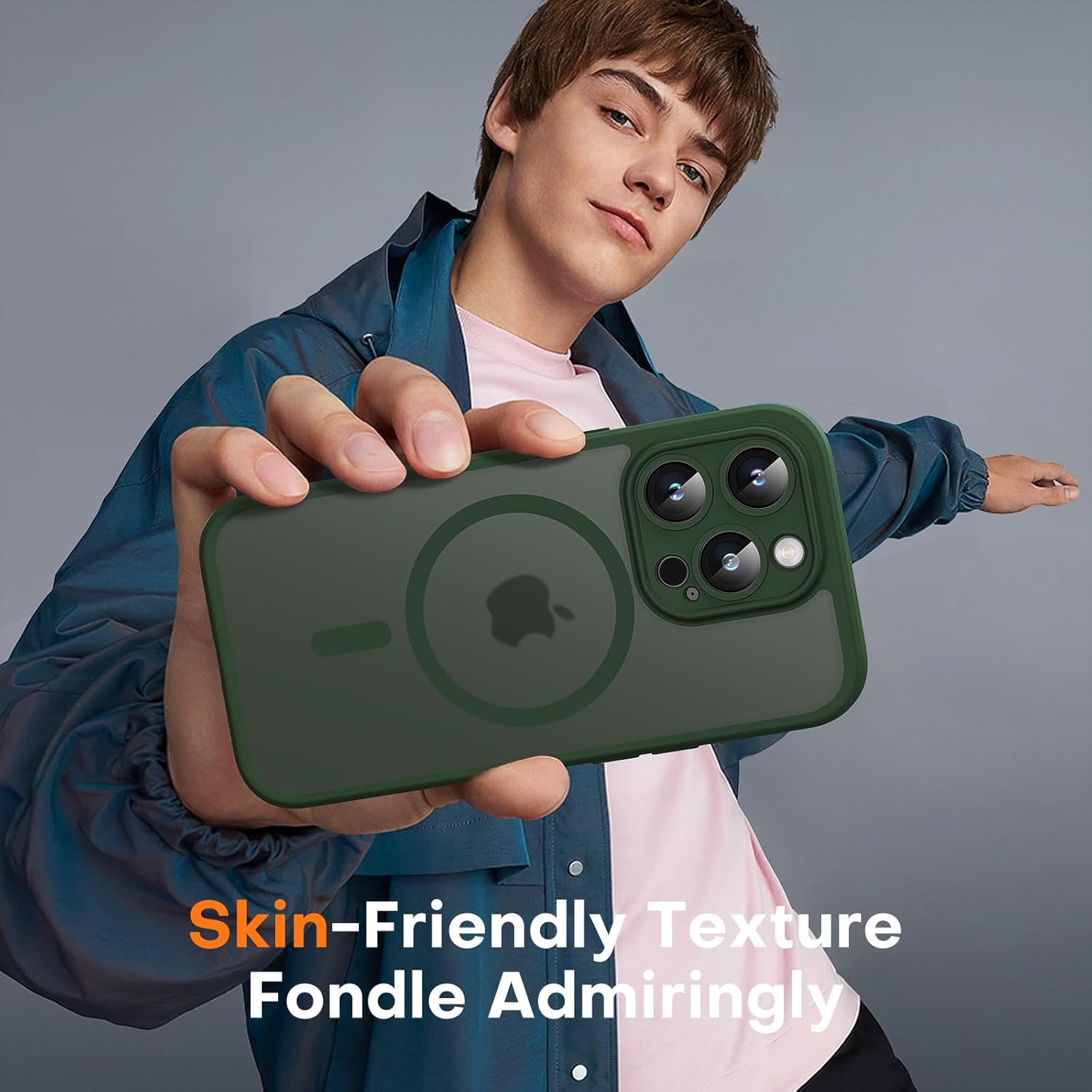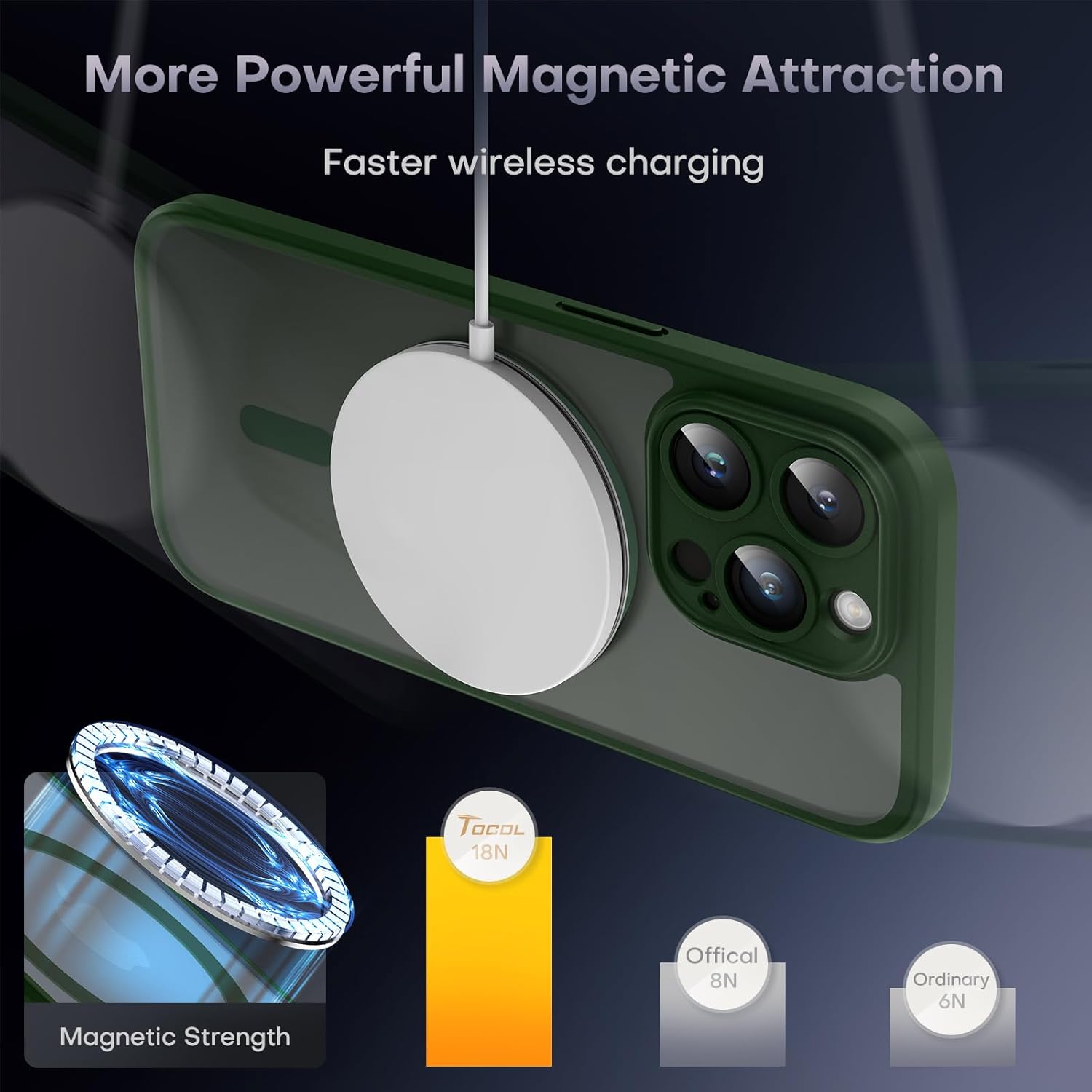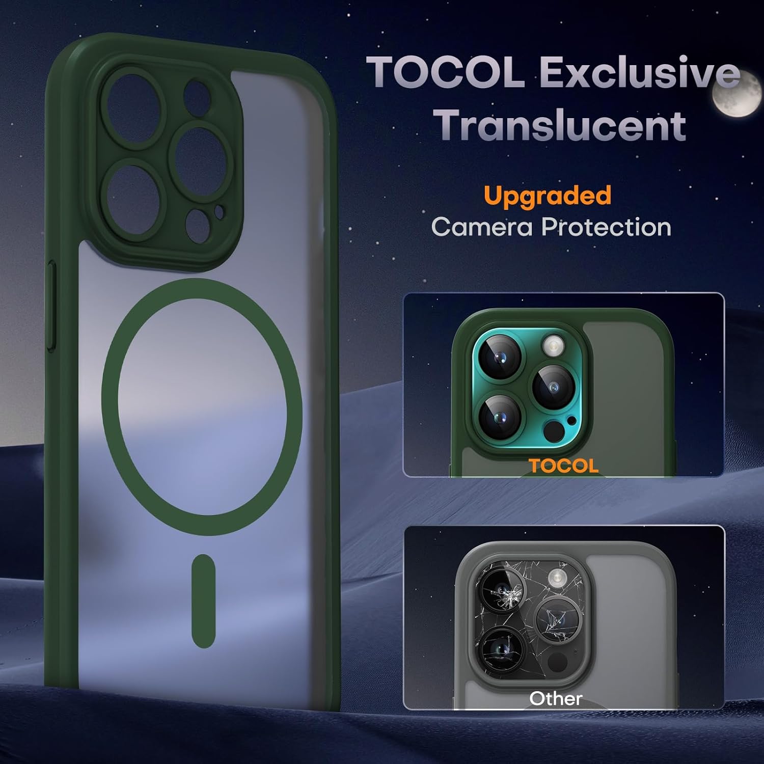 TOCOL Калъф за iPhone 13 Pro с Magsafe, Пълна защита на камерата, Удароустойчив, Устойчив на надраскване, Прозрачен гръб, Магнитен Калъф за Мобилен Телефон за iPhone 13 Pro, Алпийско Зелено