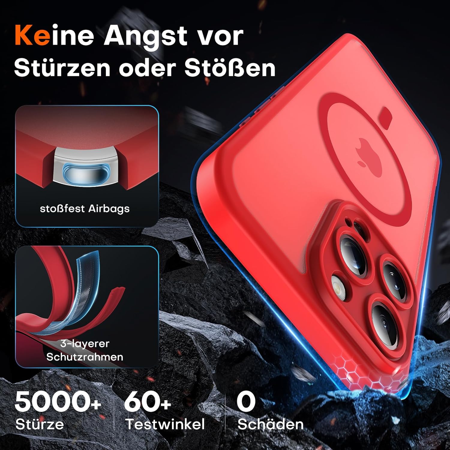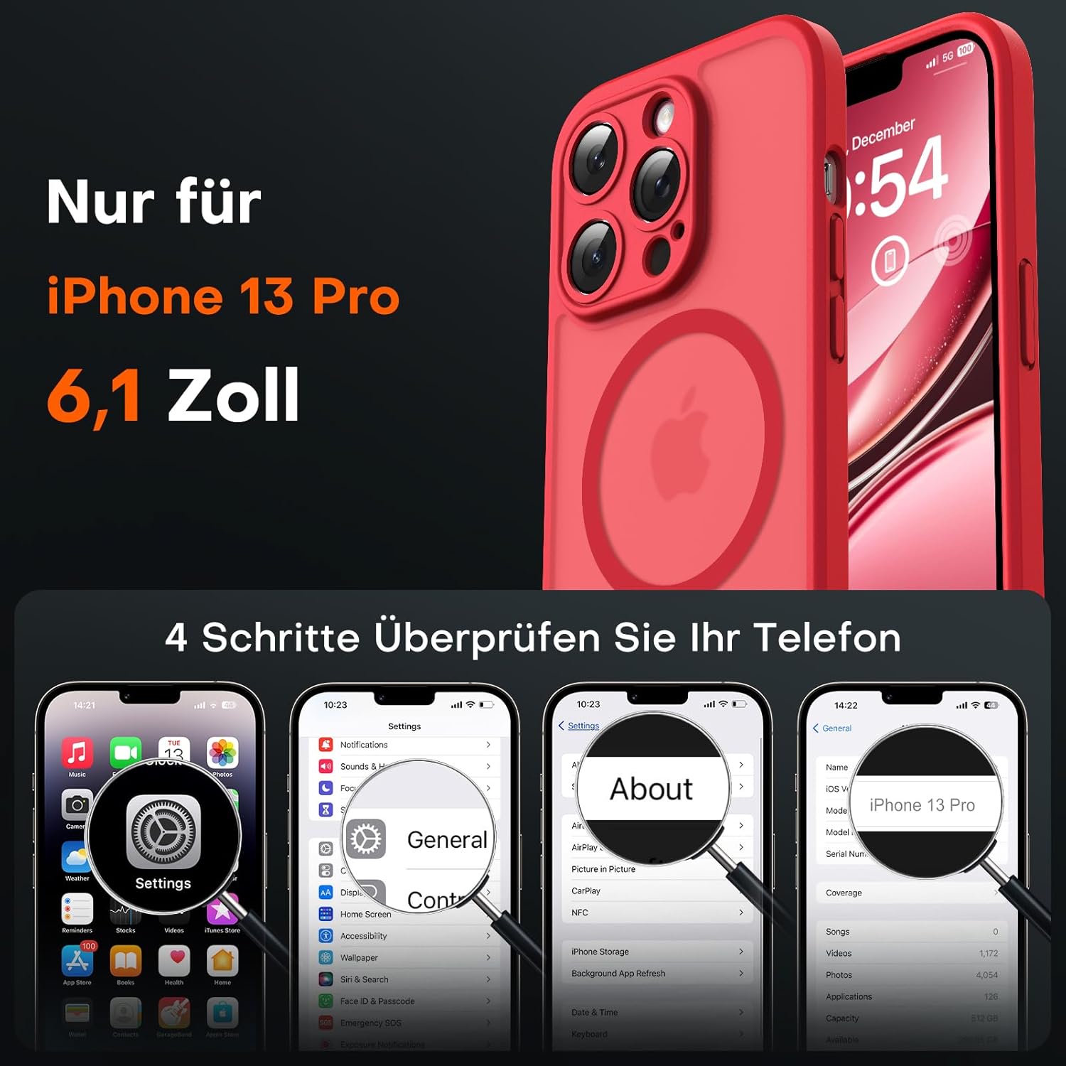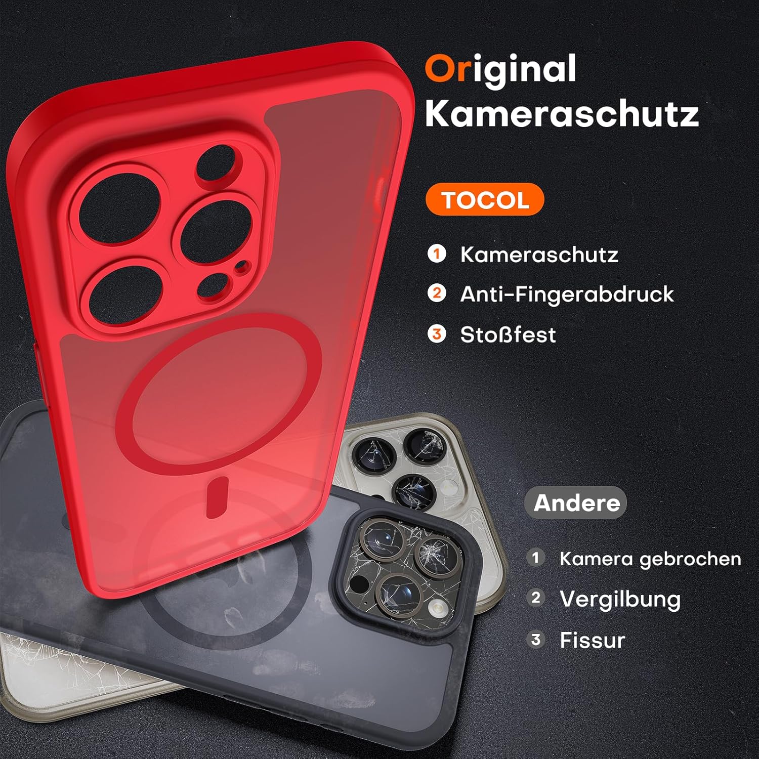 TOCOL Калъф за iPhone 13 Pro с Magsafe, Пълна защита на камерата, Удароустойчив, Устойчив на надраскване, Прозрачен гръб, Магнитен Калъф за Мобилен Телефон за iPhone 13 Pro, Червен