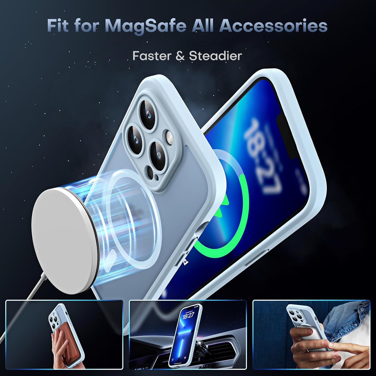 TOCOL Калъф за iPhone 13 Pro с MagSafe, пълна защита на камерата, вграден магнитен пръстен, удароустойчив, устойчив на надраскване, прозрачен матов калъф за мобилен телефон за iPhone 13 Pro 6.1 инча, лек