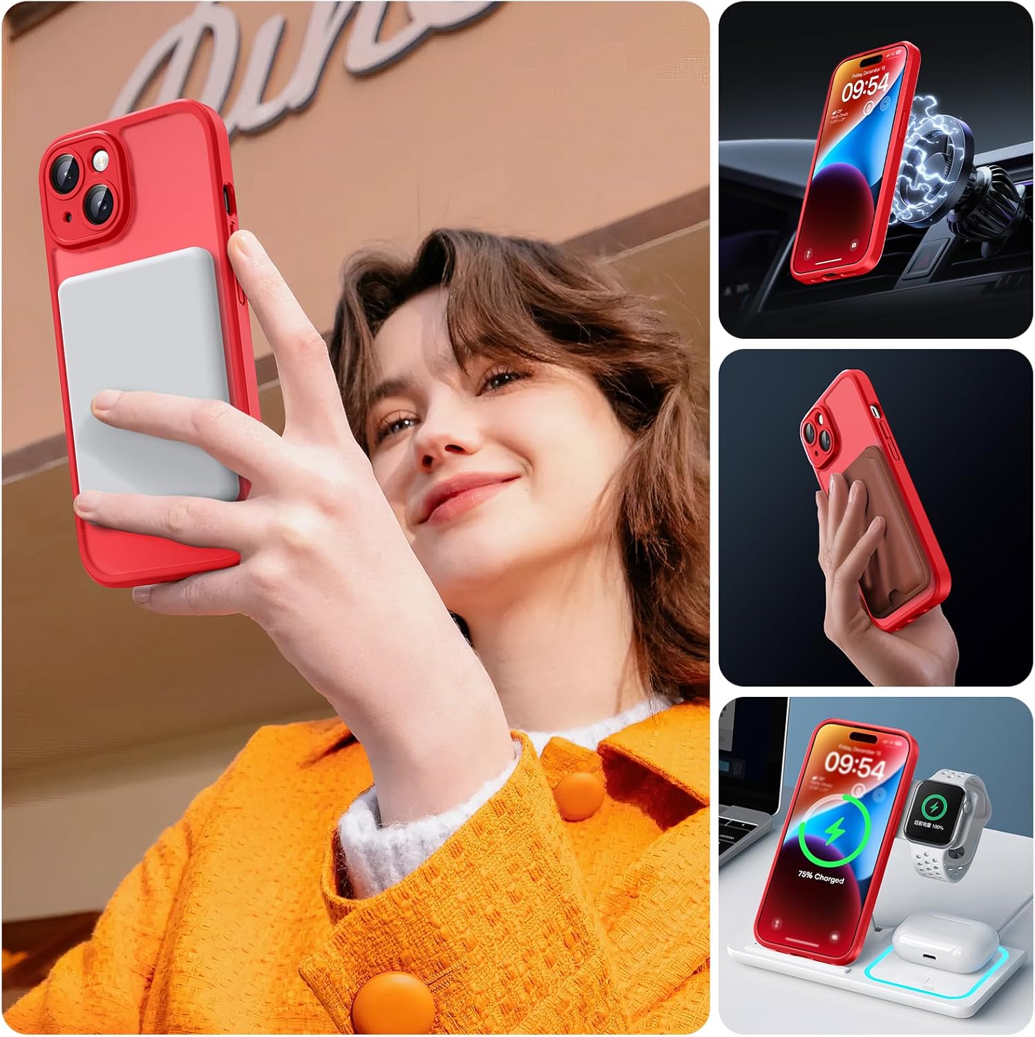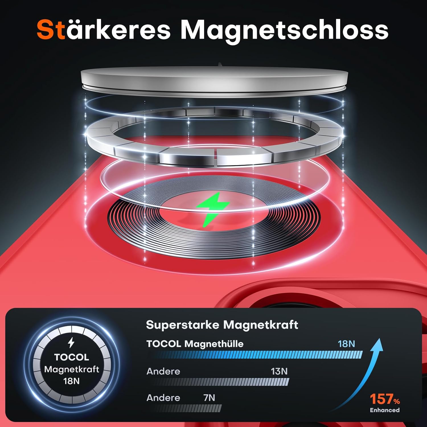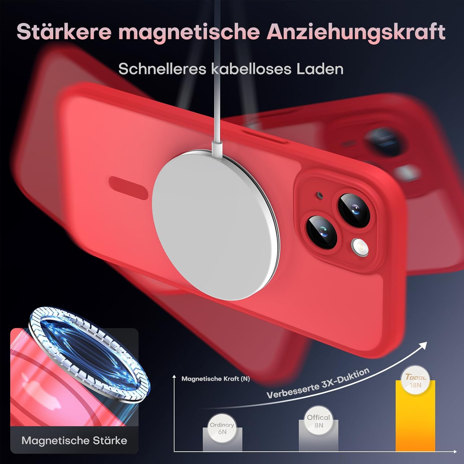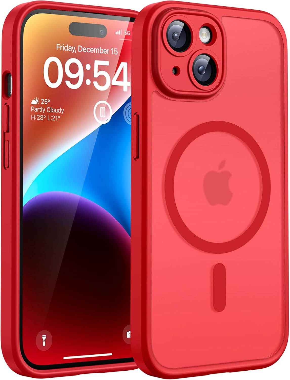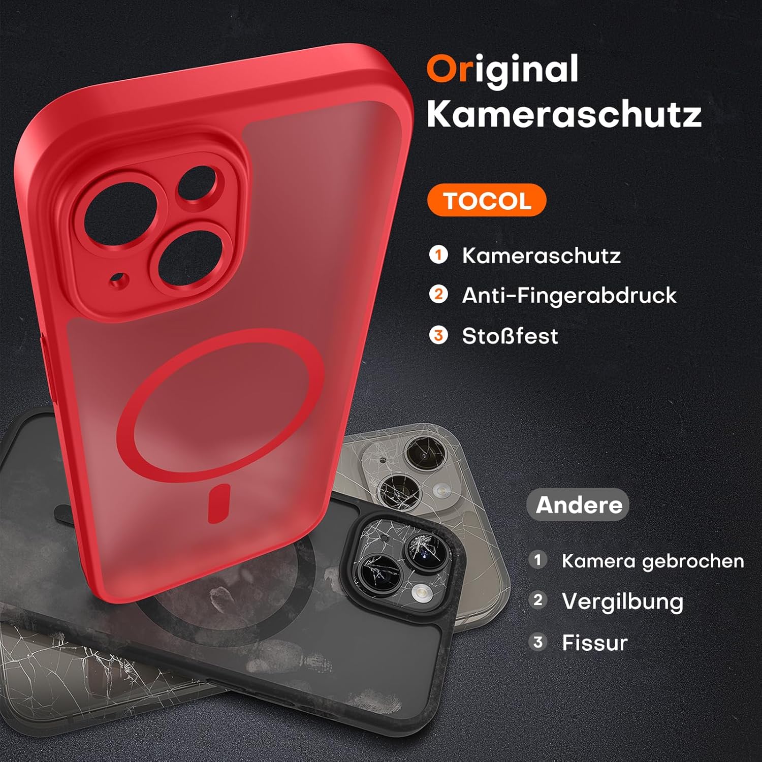 TOCOL калъф за iPhone 14, Magsafe, пълна защита на камерата, удароустойчив, устойчив на надраскване, прозрачен гръб, магнитен калъф за мобилен телефон за iPhone 14, червен