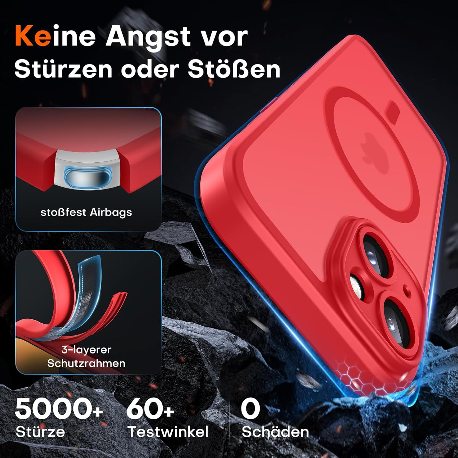 • Максимална безопасност при падане: Този калъф за iPhone 17 е изработен от термопластичен полиуретан (TPU), абсорбиращ ударите, с 4-слойна система и 360° въздушна възглавница, която ефективно намалява щетите от падане.