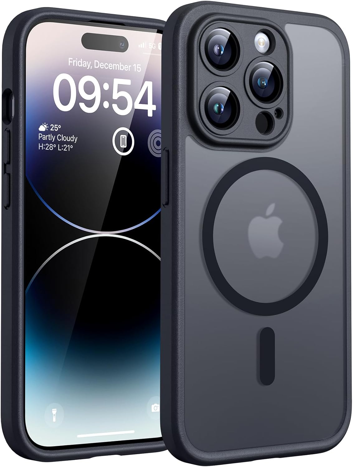 TOCOL Калъф за iPhone 14 Pro Max с MagSafe, пълна защита на камерата, вграден магнитен пръстен, удароустойчив, устойчив на надраскване, прозрачен матов калъф за мобилен телефон за iPhone 14 Pro Max 6.7 инча