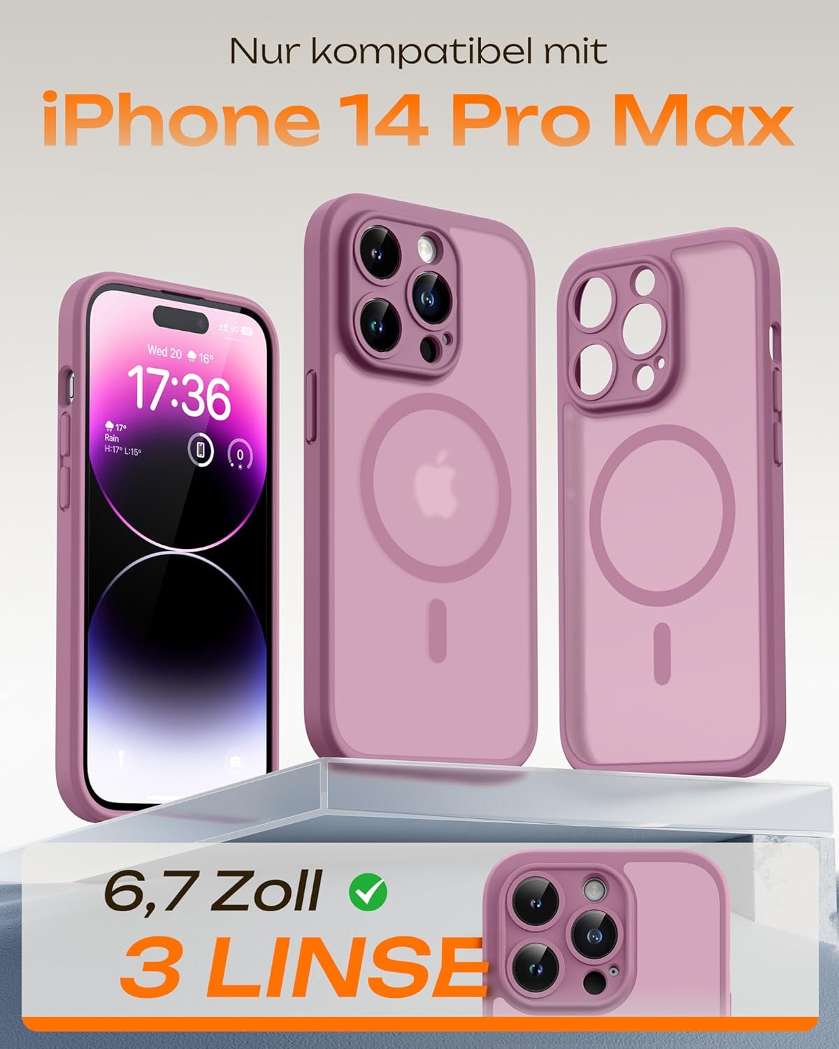TOCOL Калъф за iPhone 14 Pro Max с MagSafe, пълна защита на камерата, вграден магнитен пръстен, удароустойчив, устойчив на надраскване, прозрачен матов калъф за мобилен телефон за iPhone 14 Pro Max 6.7 инча