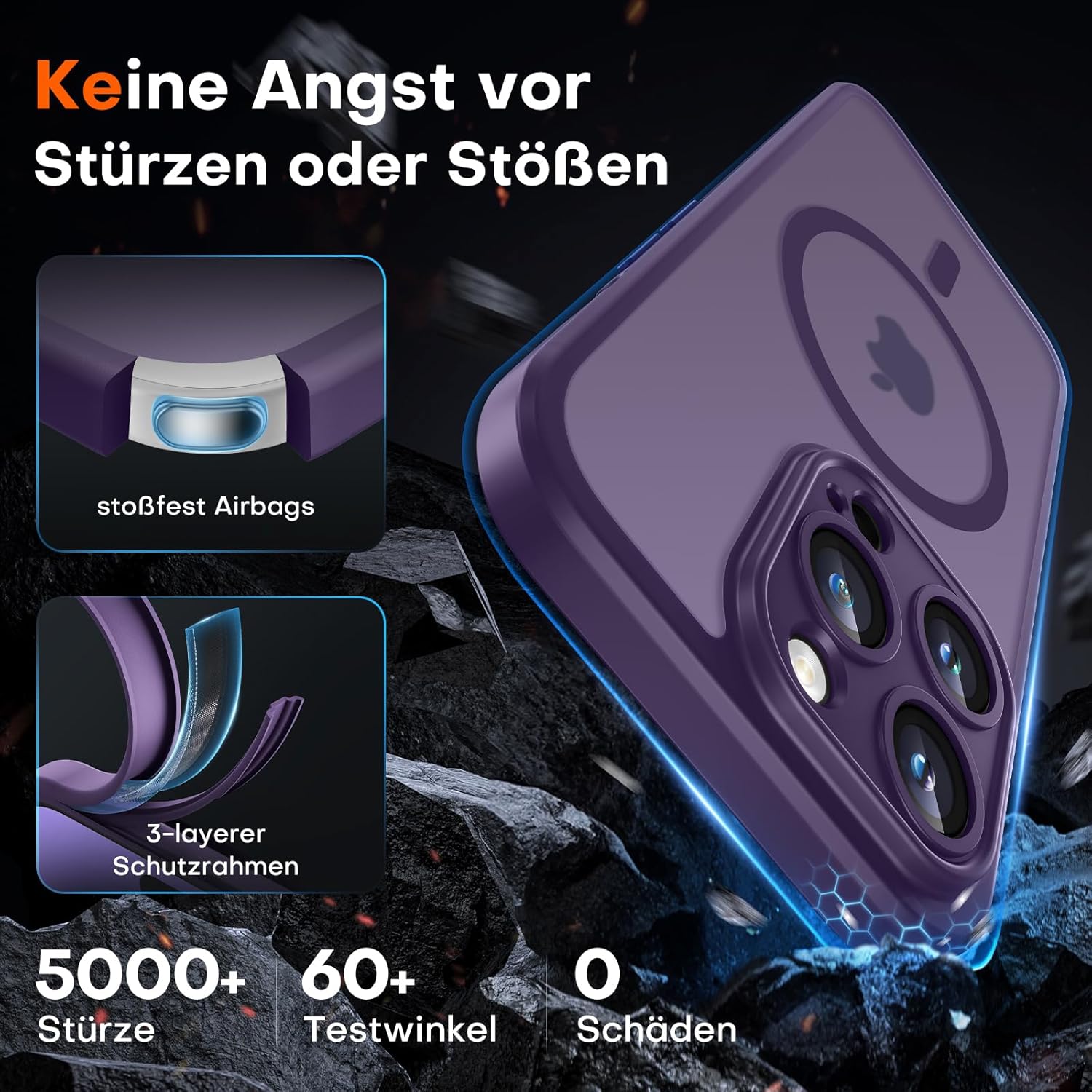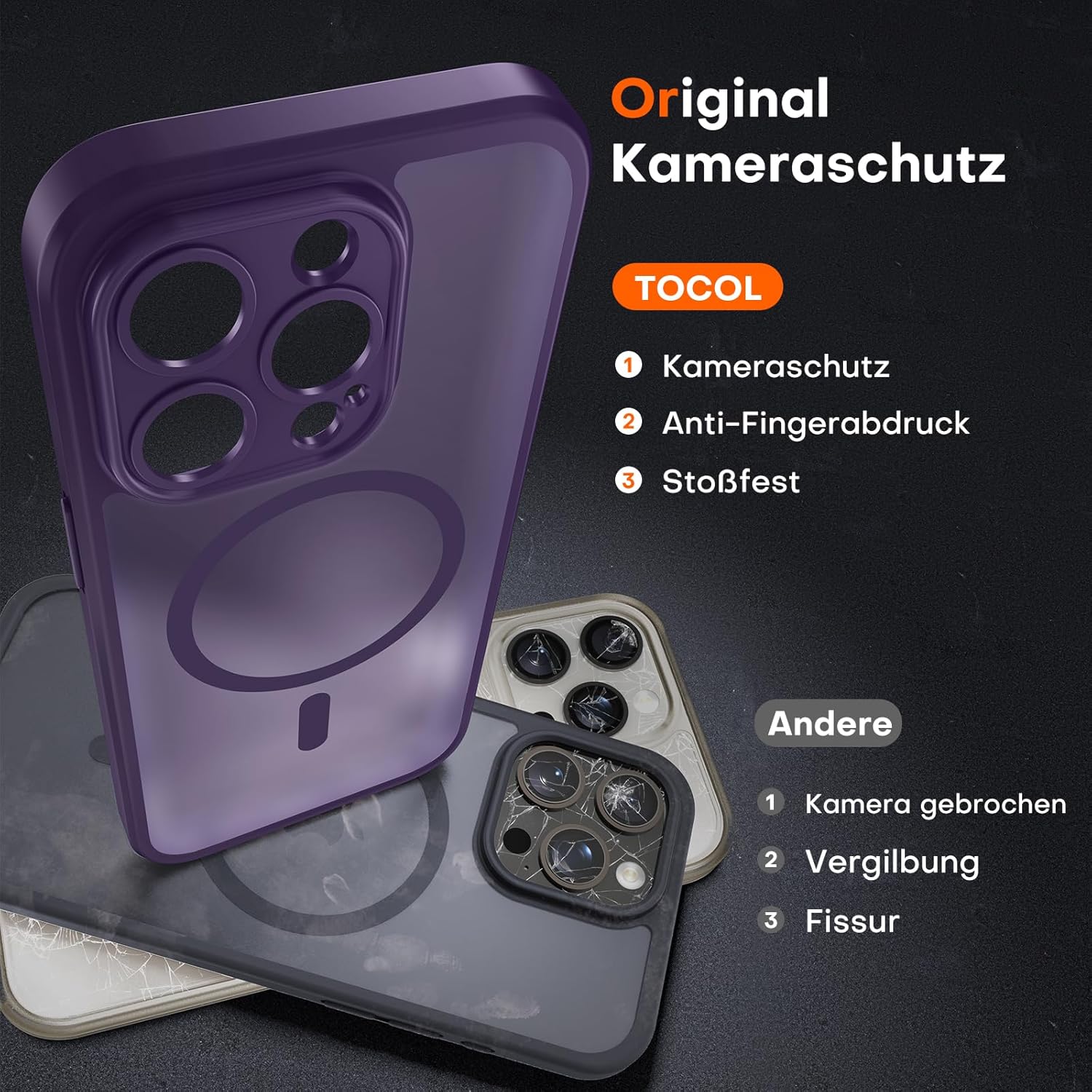 TOCOL Калъф за iPhone 14 Pro с Magsafe, Пълна защита на камерата, Удароустойчив, Устойчив на надраскване, Прозрачен гръб, Магнитен Калъф за Мобилен Телефон за iPhone 14 Pro, Тъмно Лилав