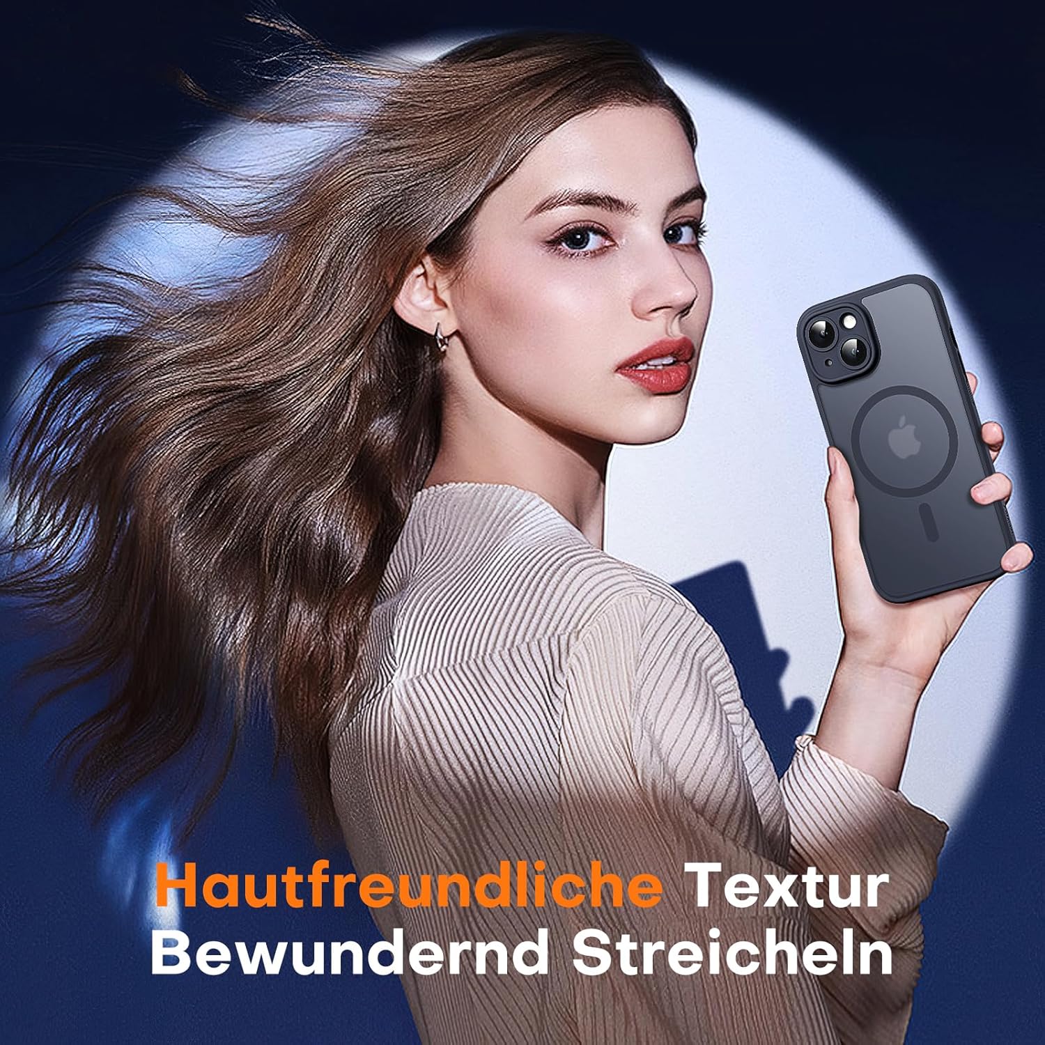 TOCOL Калъф за iPhone 14 с Magsafe, пълна защита на камерата, удароустойчив, устойчив на надраскване, прозрачен гръб, магнитен калъф за мобилен телефон за iPhone 14, черен