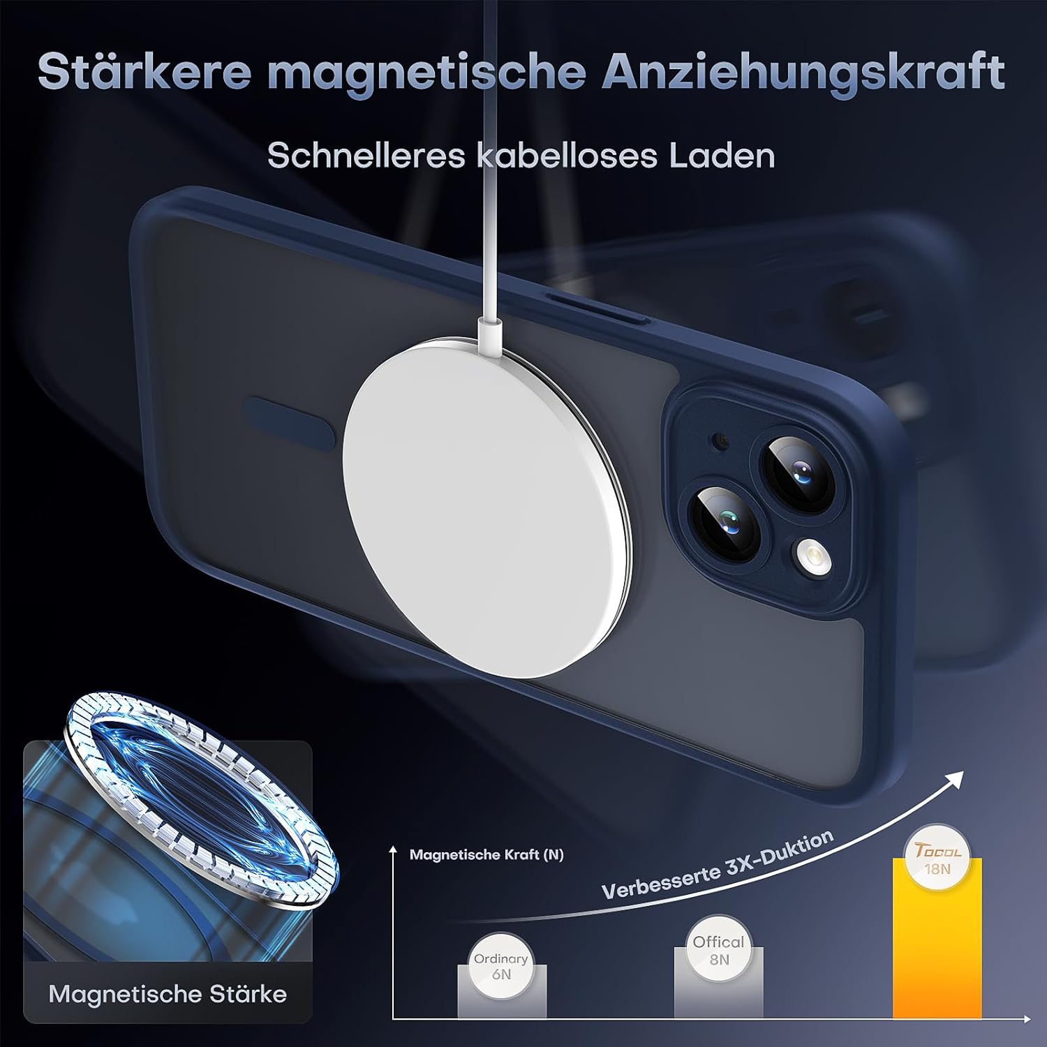 TOCOL Калъф за iPhone 15 Plus с Magsafe, Пълна защита на камерата, Удароустойчив, Устойчив на надраскване, Прозрачен гръб, Магнитен Калъф за Мобилен Телефон за iPhone 15 Plus, Син
