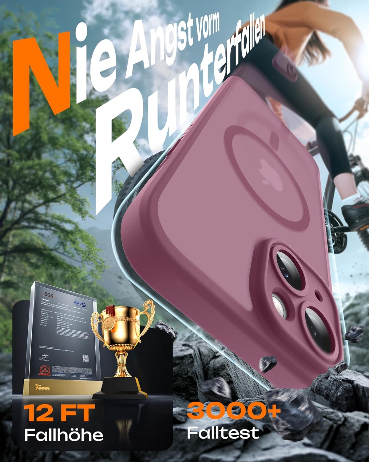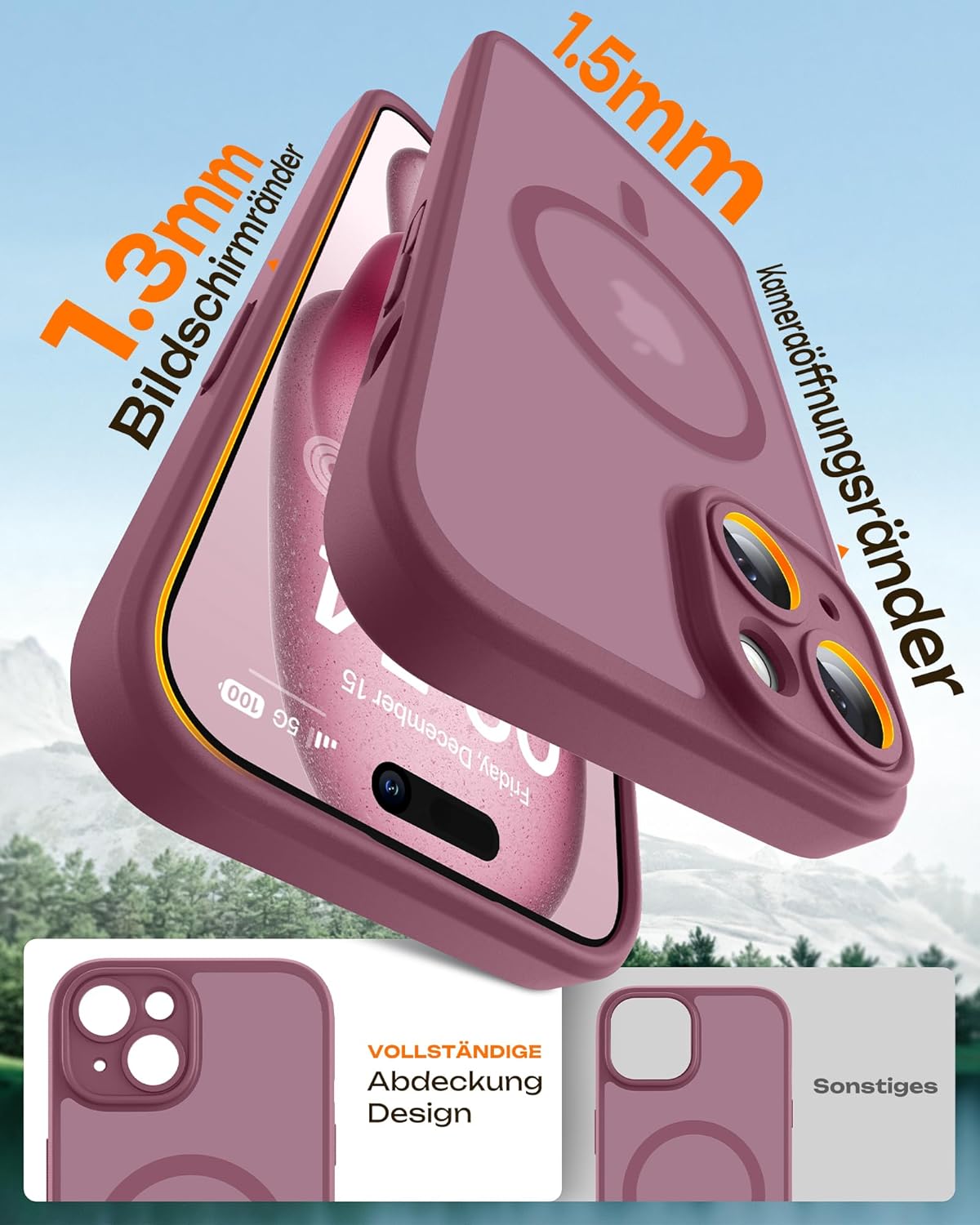 TOCOL Калъф за iPhone 15 Plus с MagSafe, пълна защита на камерата, вграден магнитен пръстен, удароустойчив, устойчив на надраскване, прозрачен матов калъф за мобилен телефон за iPhone 15 Plus 6.7 инча, цвят слива