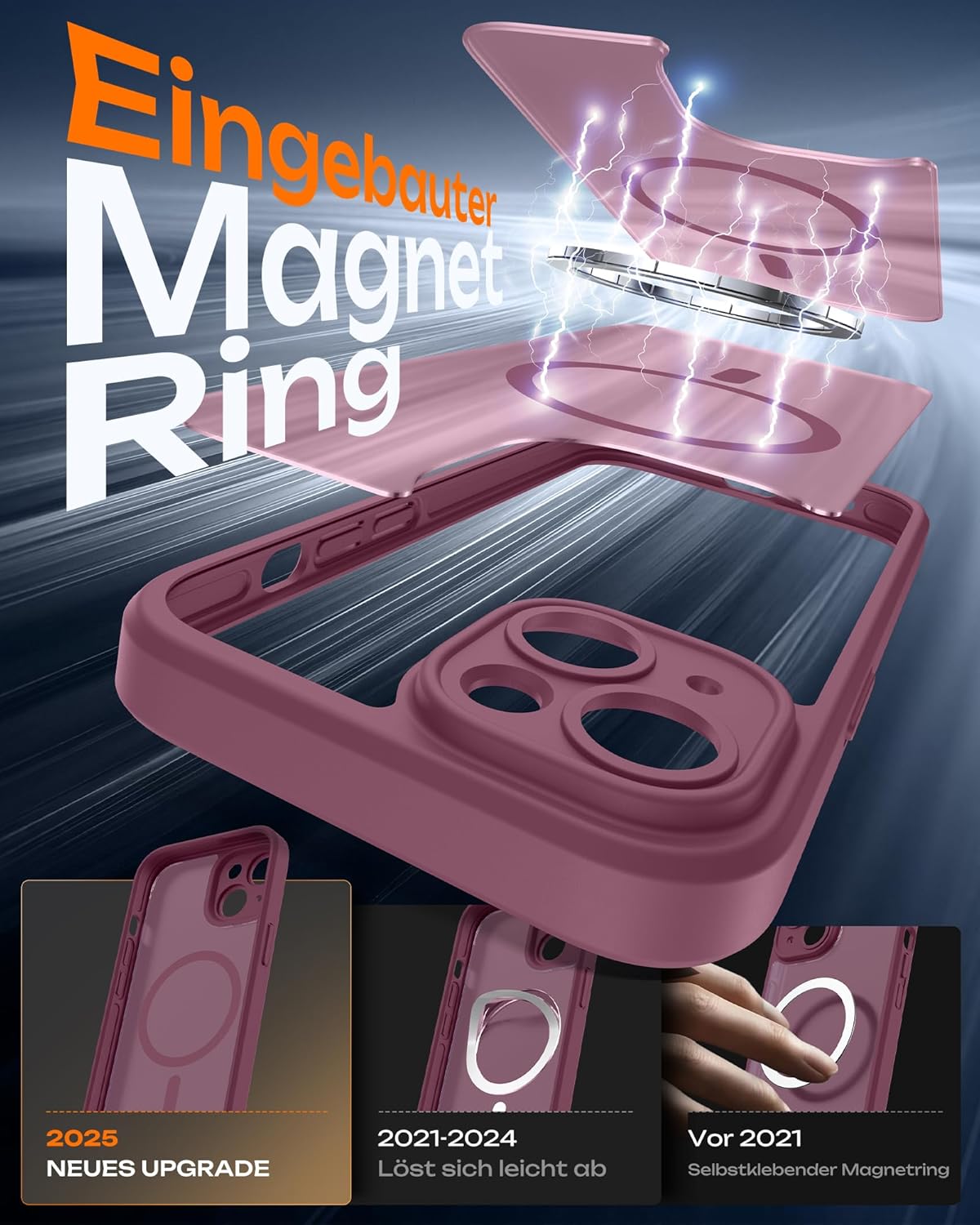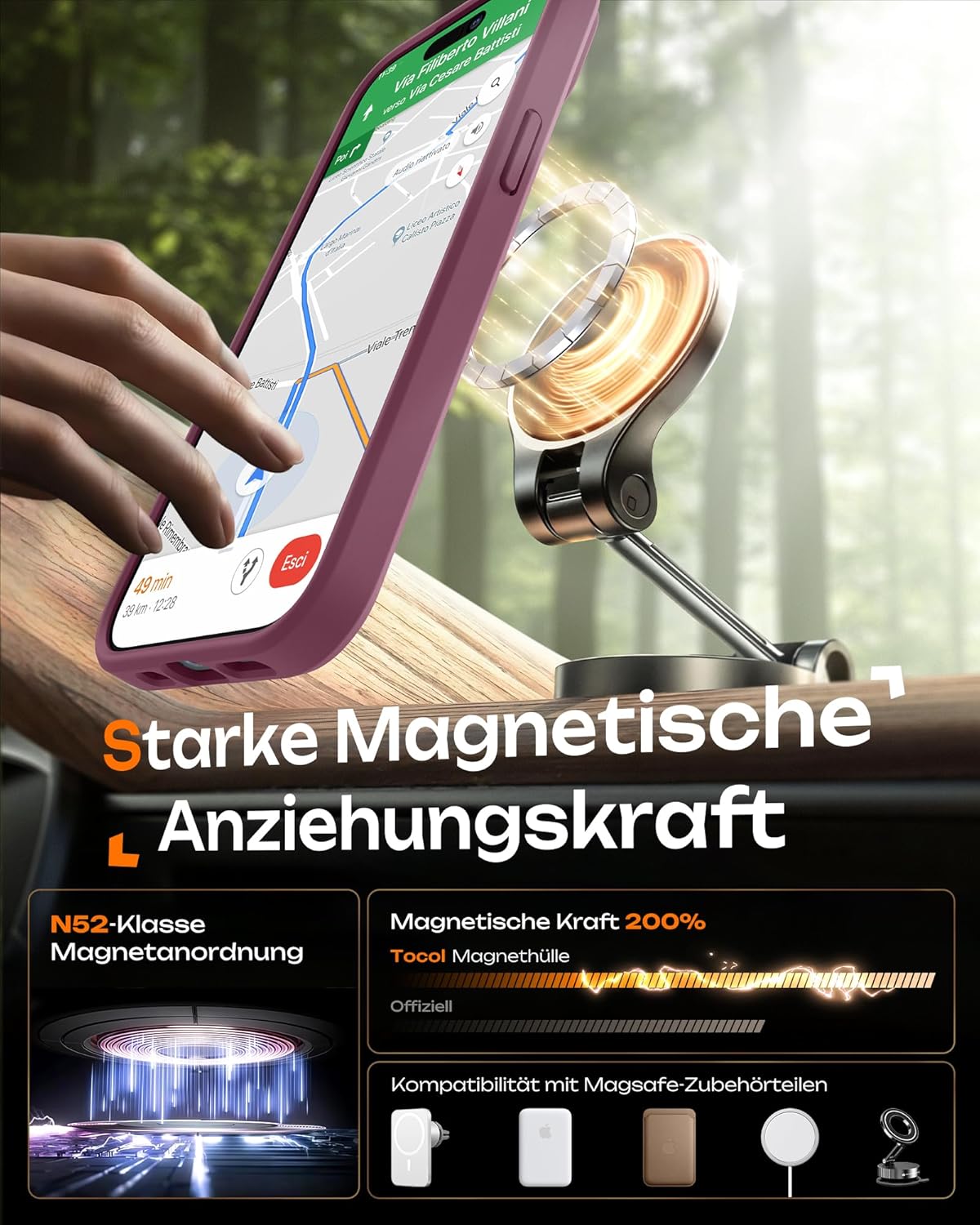 • Вграден магнитен пръстен: Магнитен калъф за iPhone 17 с вграден магнитен пръстен, никога не се разхлабва. Висока сила на задържане 20N за всички магнитни аксесоари. Остава стабилен в стойката за кола дори при тежки, неравни подове.