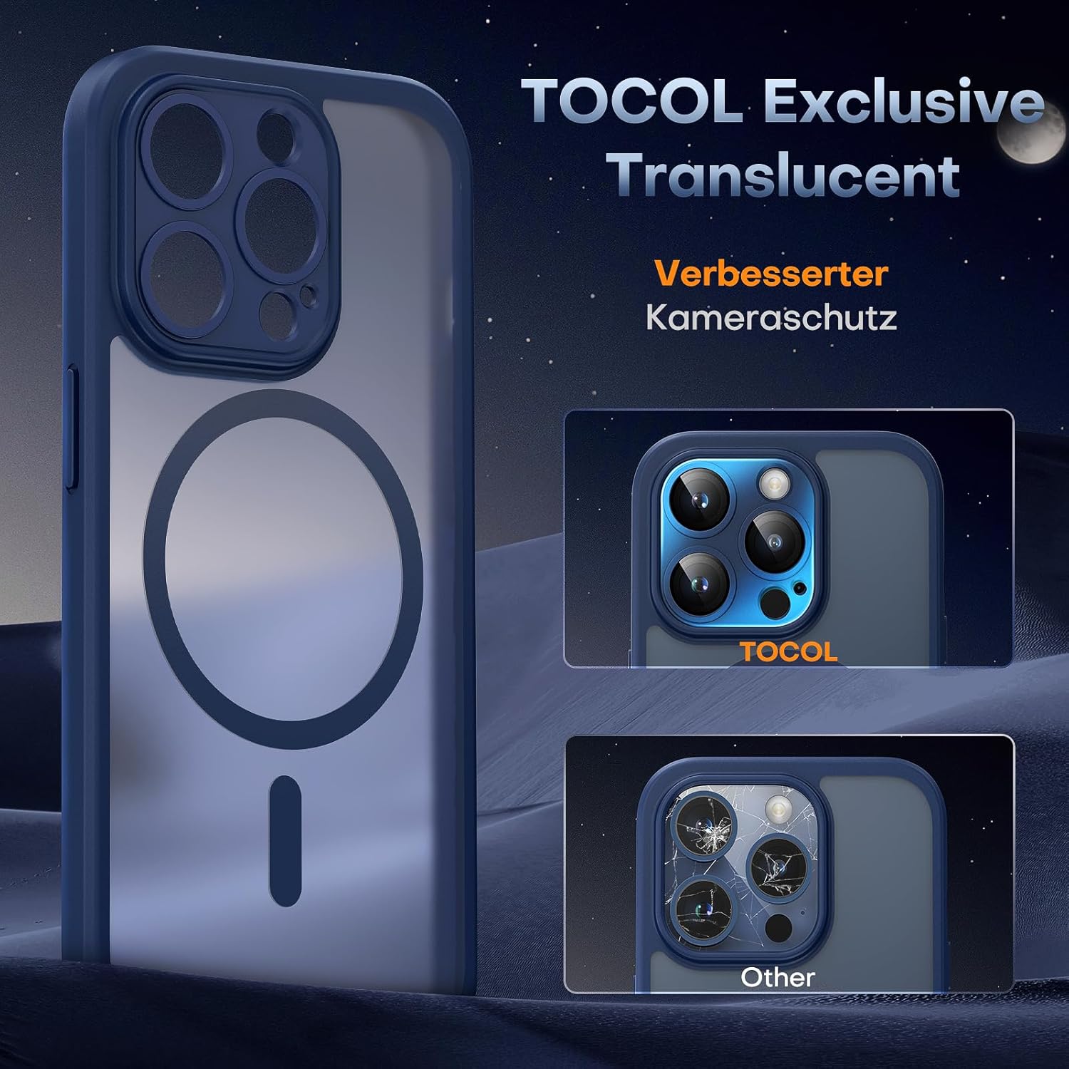 TOCOL Калъф за iPhone 15 Pro с Magsafe, Пълна защита на камерата, Удароустойчив, Устойчив на надраскване, Прозрачен гръб, Магнитен Калъф за Мобилен Телефон за iPhone 15 Pro, Син