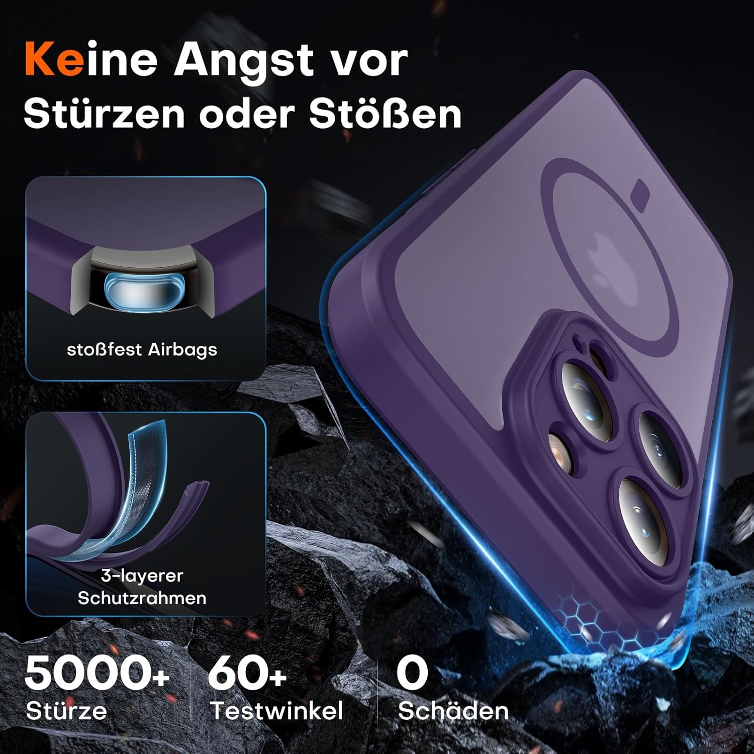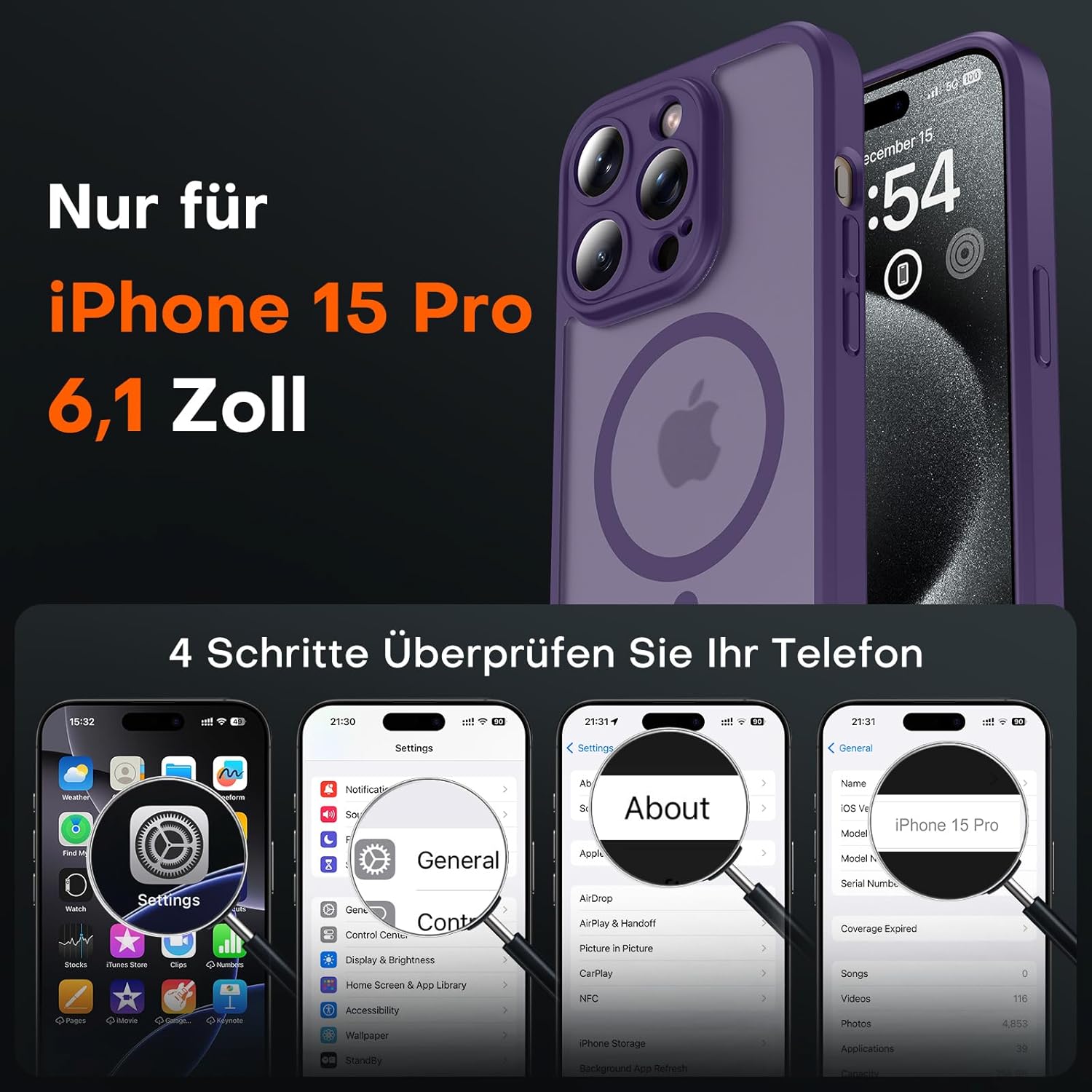 TOCOL Калъф за iPhone 15 Pro с Magsafe, Пълна защита на камерата, Удароустойчив, Устойчив на надраскване, Прозрачен гръб, Магнитен Калъф за Мобилен Телефон за iPhone 15 Pro, Тъмно Лилав