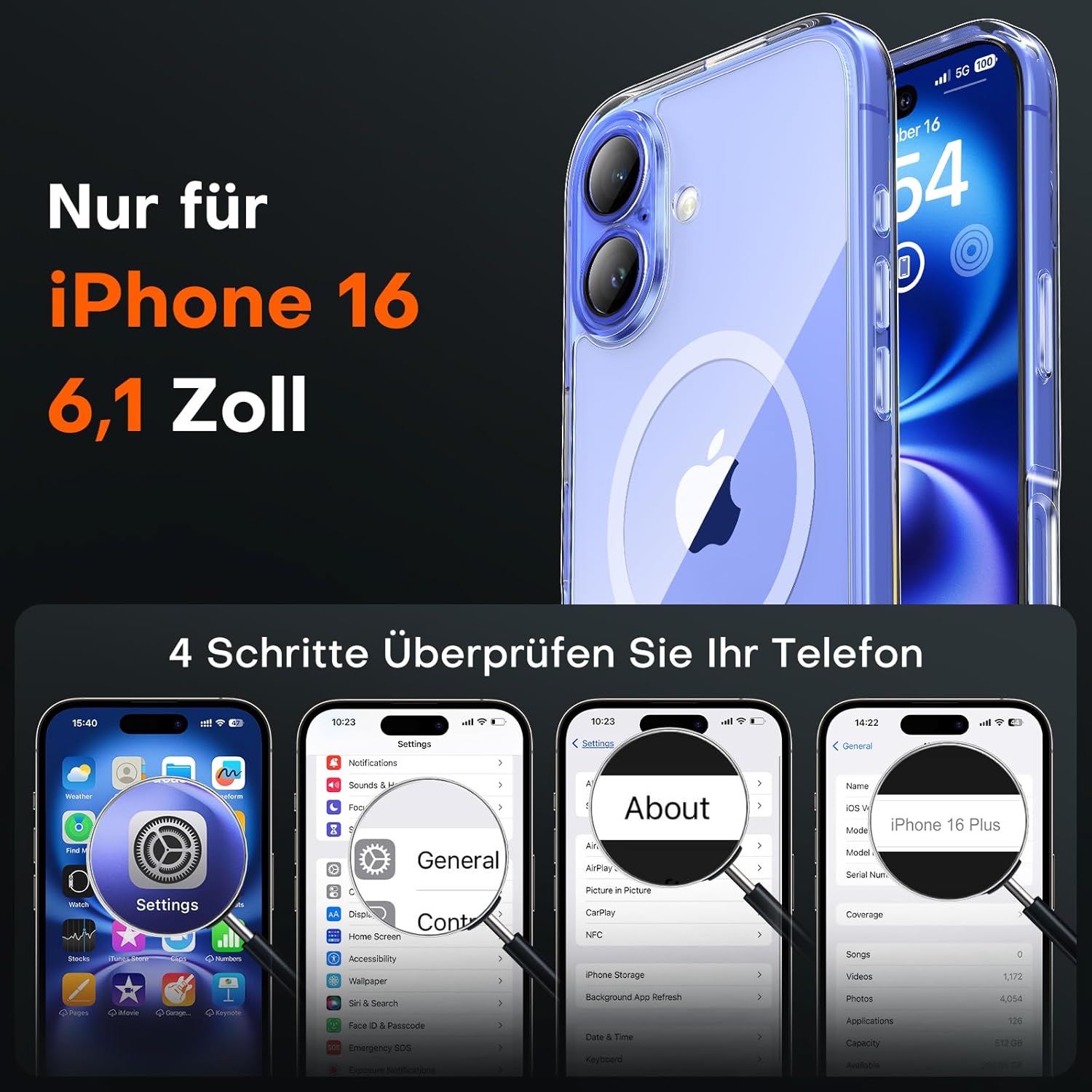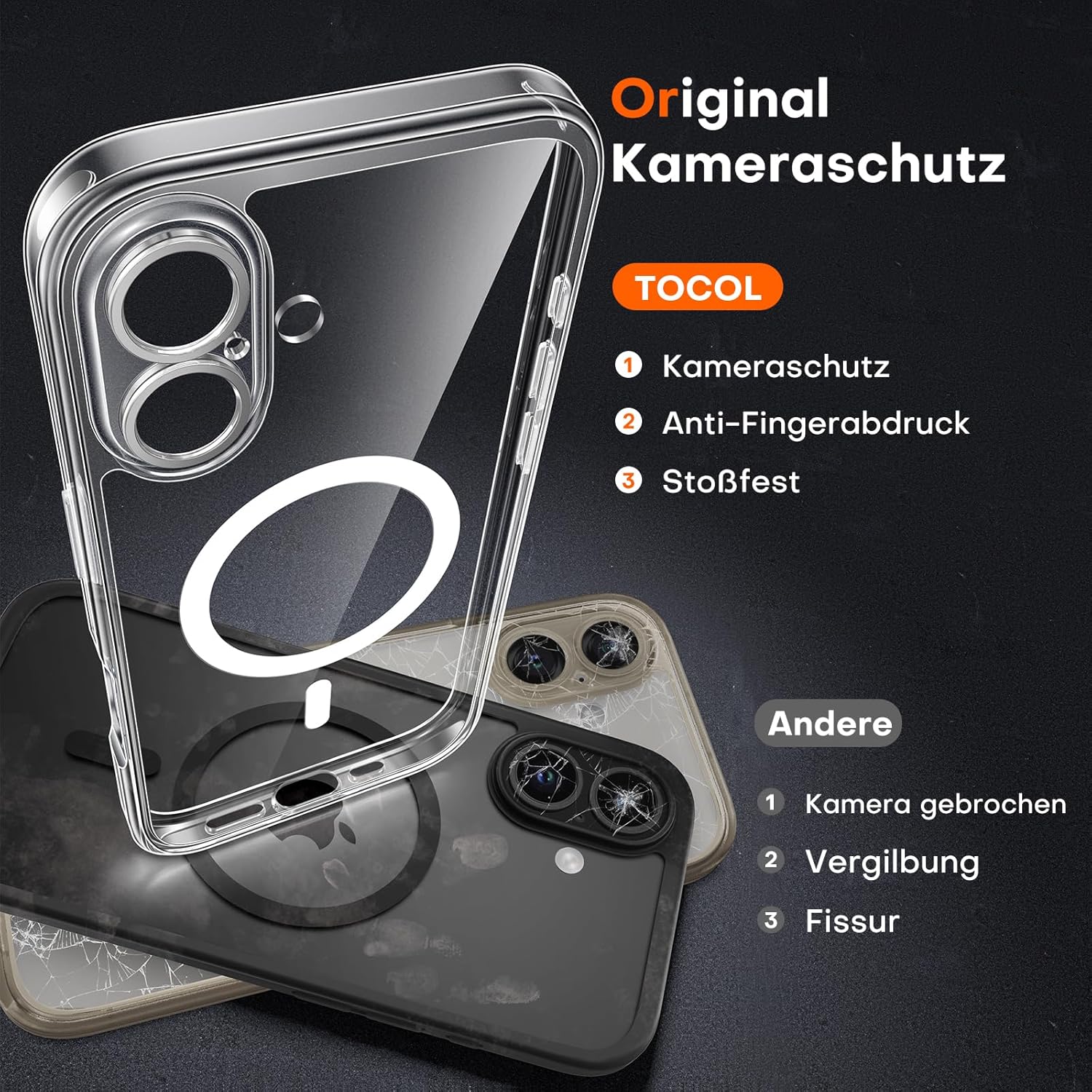 TOCOL калъф за iPhone 16, Magsafe, пълна защита на камерата, никога не пожълтява, удароустойчив, устойчив на надраскване, магнитен калъф за мобилен телефон за iPhone 16, прозрачен