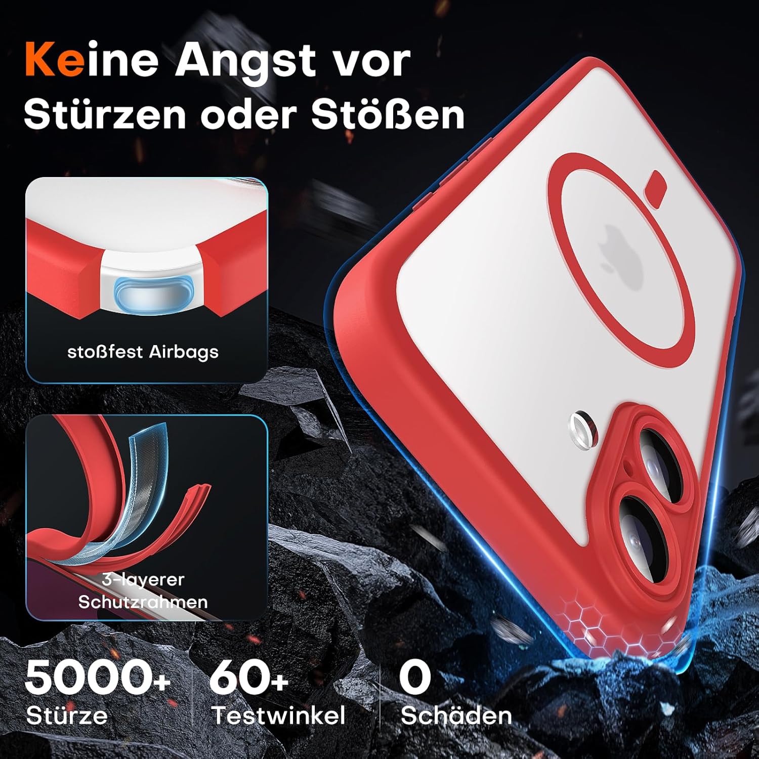 • Максимална безопасност при падане: Този калъф за iPhone 17 е изработен от термопластичен полиуретан (TPU), абсорбиращ ударите, с 4-слойна система и 360° въздушна възглавница, която ефективно намалява щетите от падане.