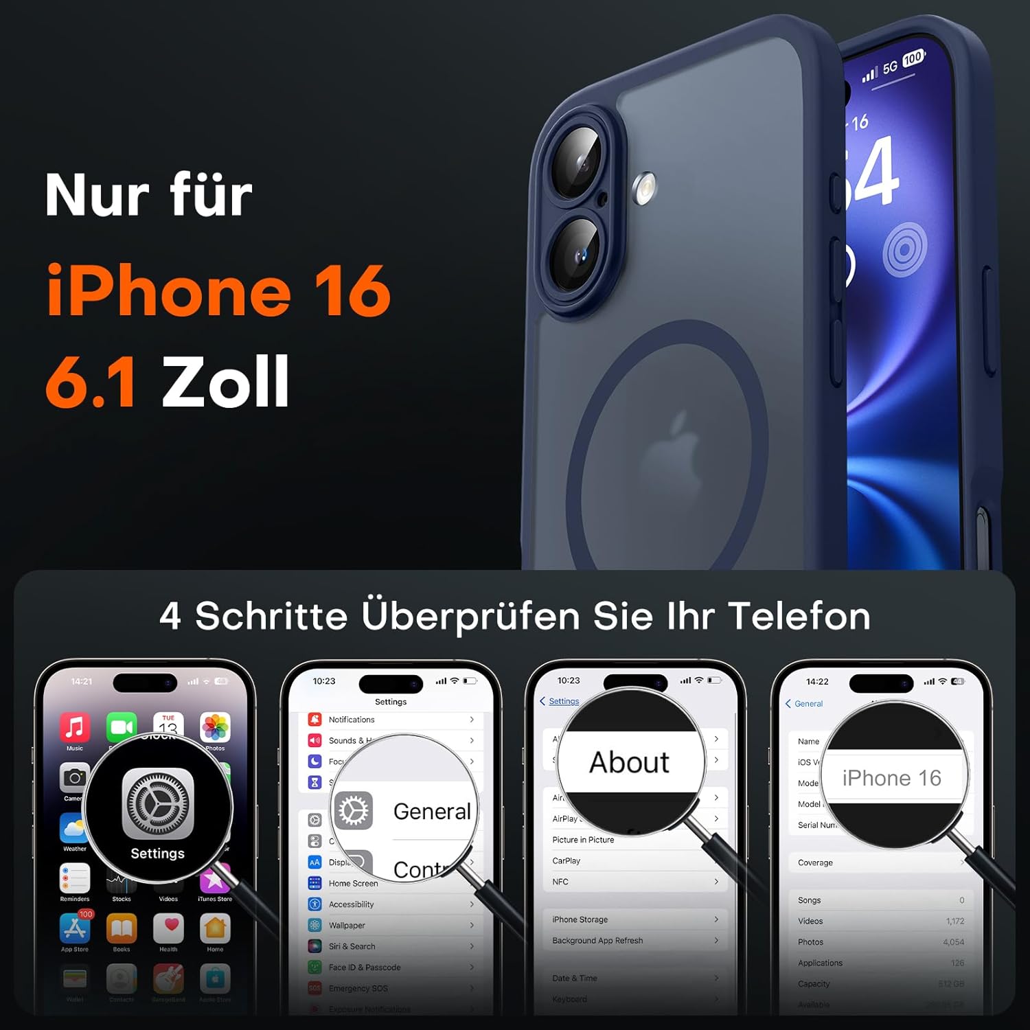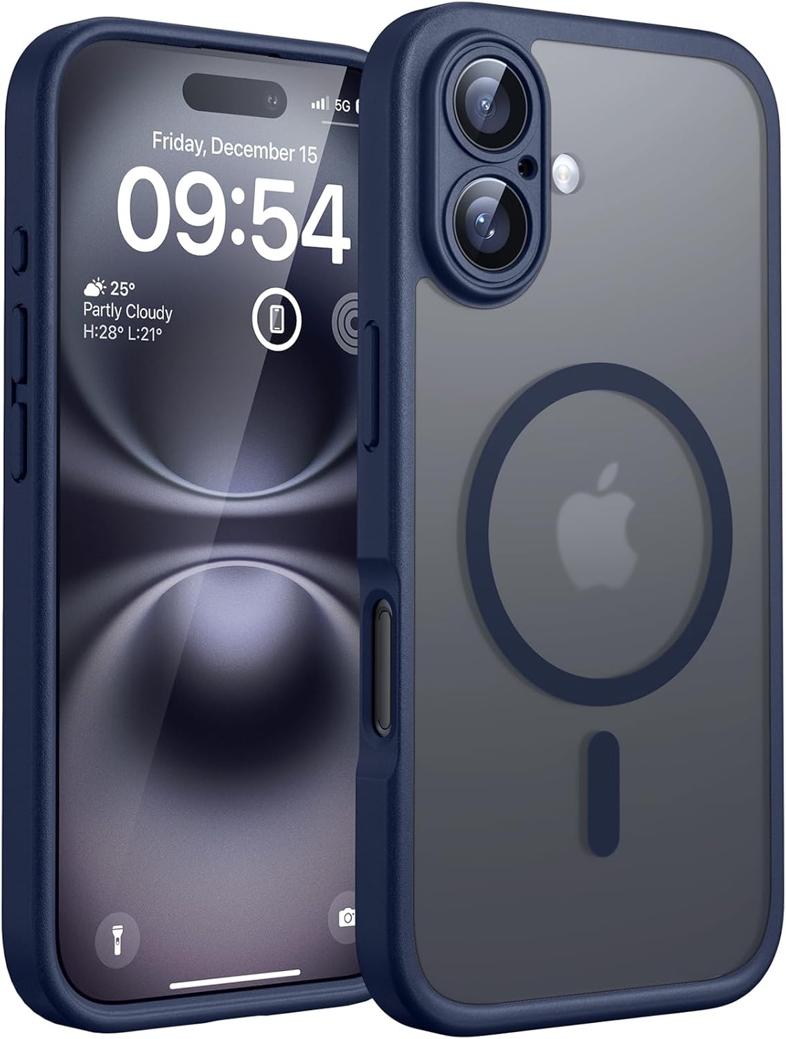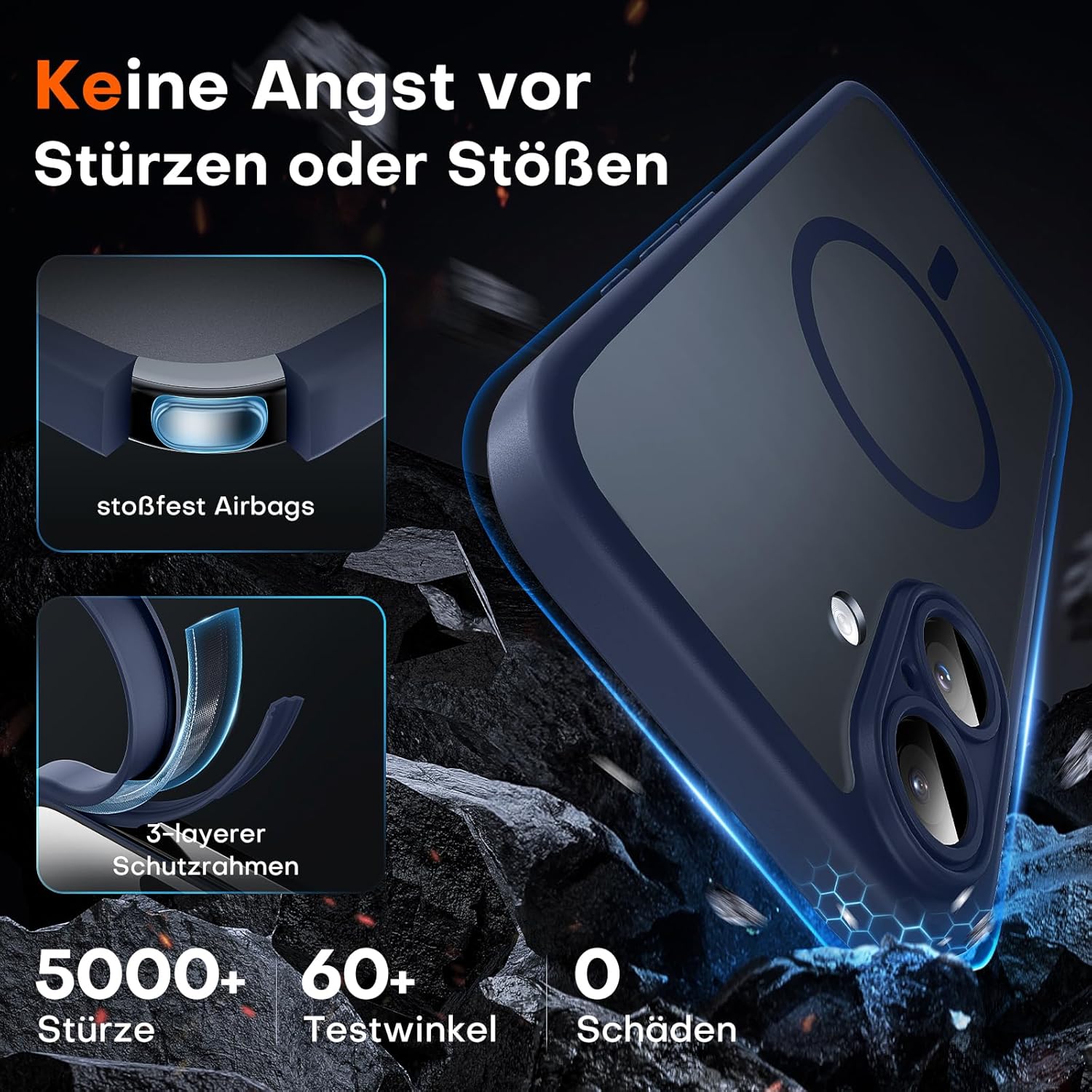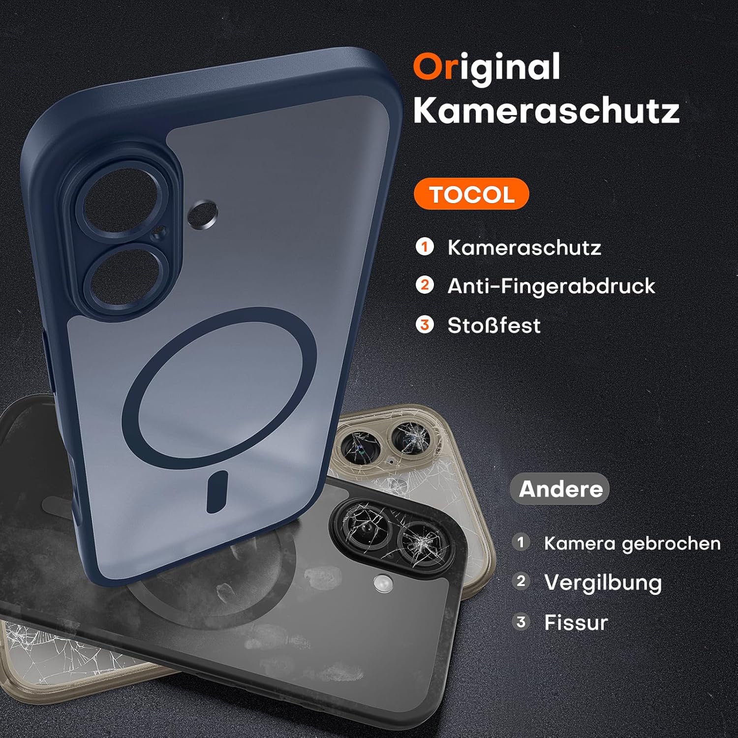 TOCOL калъф за iPhone 16, Magsafe, пълна защита на камерата, удароустойчив, устойчив на надраскване, прозрачен гръб, магнитен калъф за мобилен телефон за iPhone 16, син