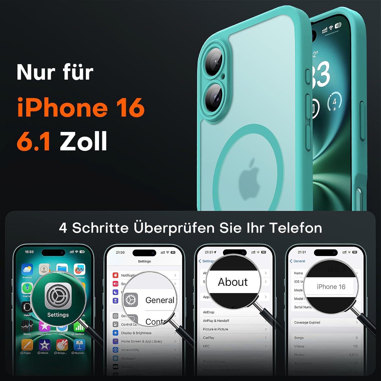 TOCOL калъф за iPhone 16, Magsafe, пълна защита на камерата, удароустойчив, устойчив на надраскване, прозрачен гръб, магнитен калъф за мобилен телефон за iPhone 16, синьо-зелен