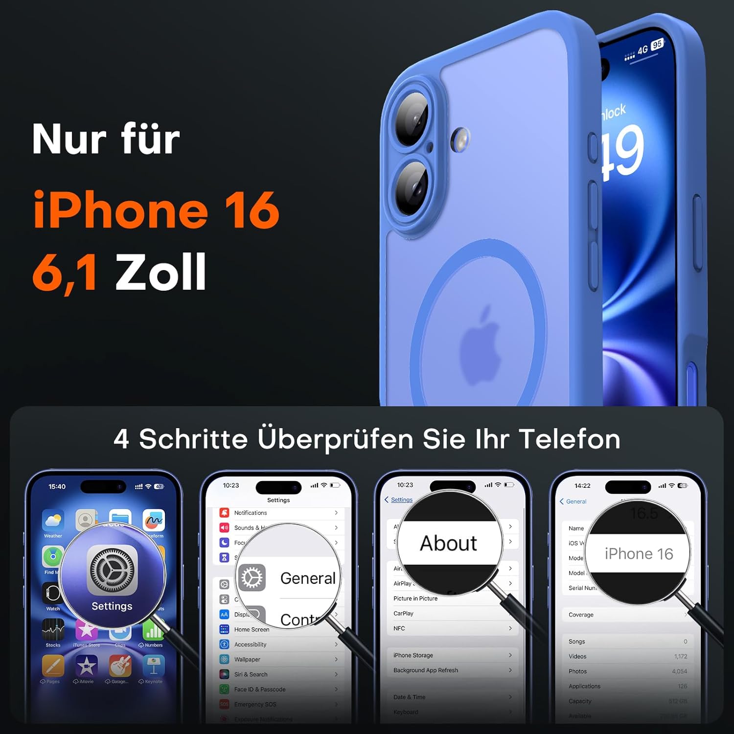 TOCOL калъф за iPhone 16, Magsafe, пълна защита на камерата, удароустойчив, устойчив на надраскване, прозрачен гръб, магнитен калъф за мобилен телефон за iPhone 16, ултрамаринен