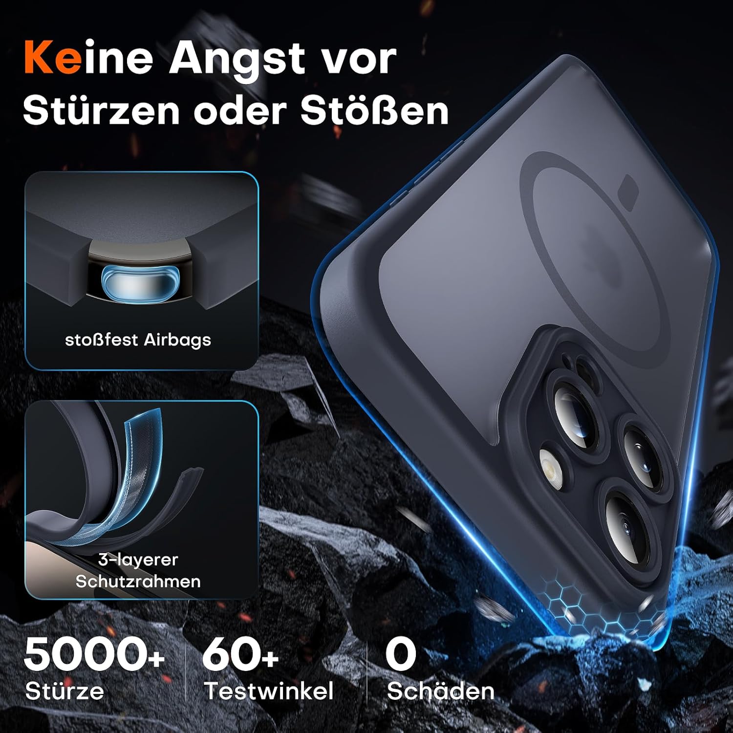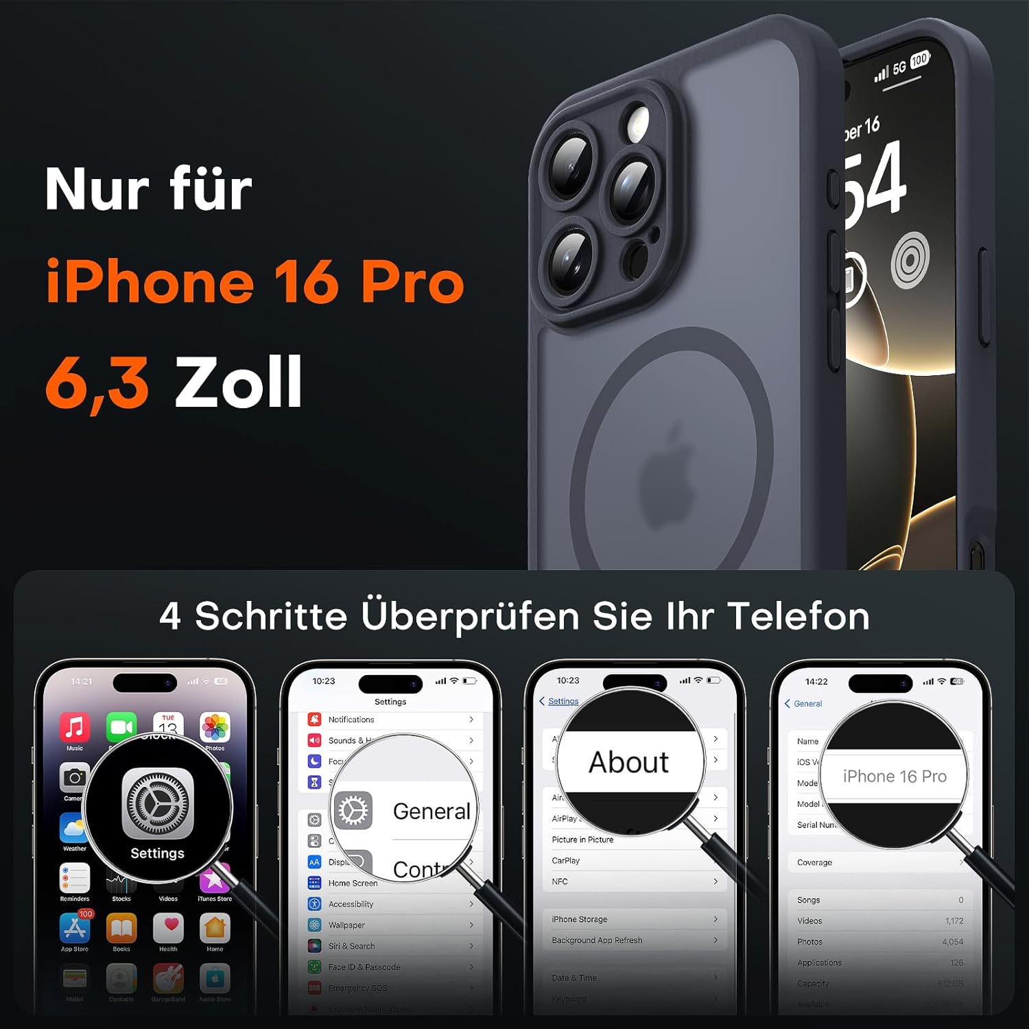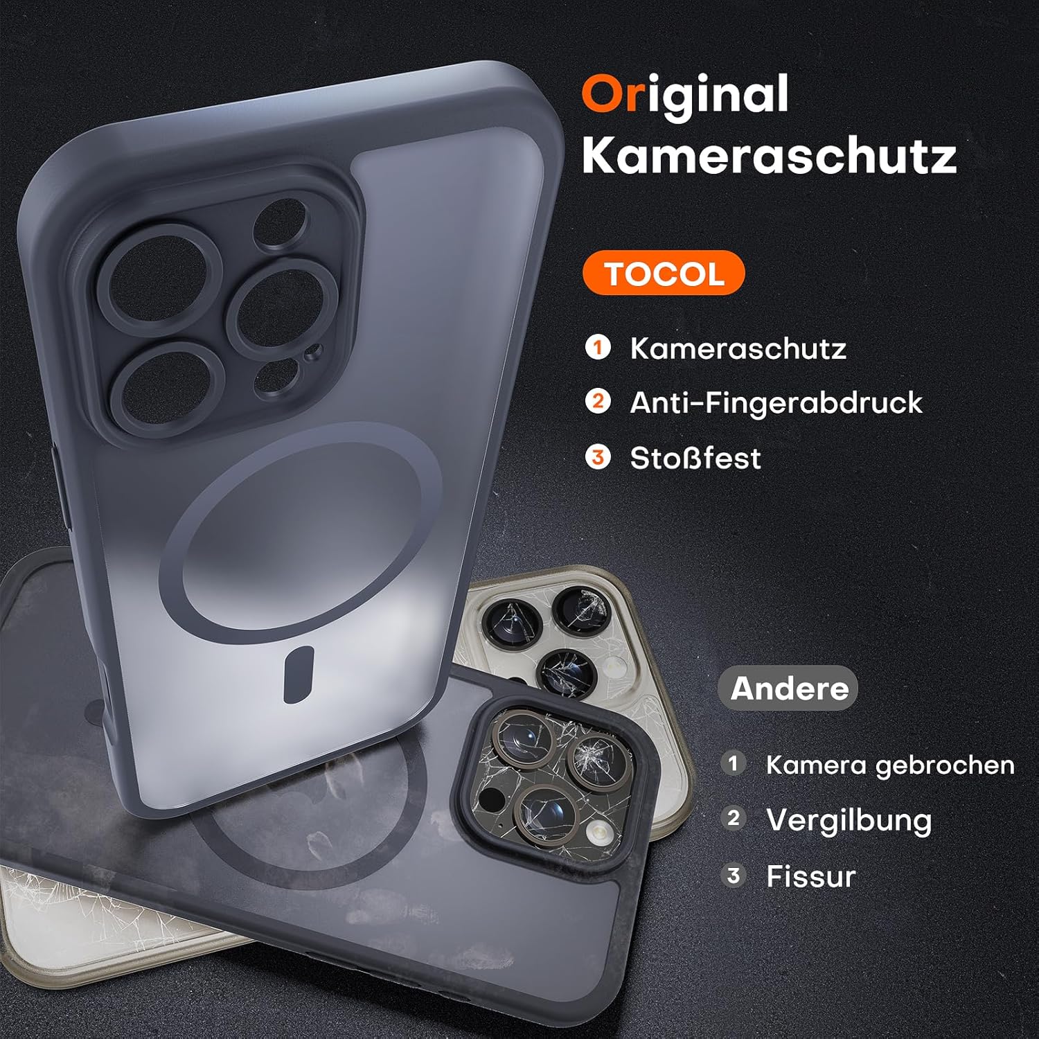 TOCOL Калъф за iPhone 16 Pro с Magsafe, Пълна защита на камерата, Удароустойчив, Устойчив на надраскване, Прозрачен гръб, Магнитен Калъф за Мобилен Телефон за iPhone 16 Pro, Черен