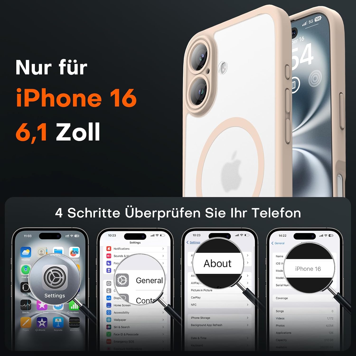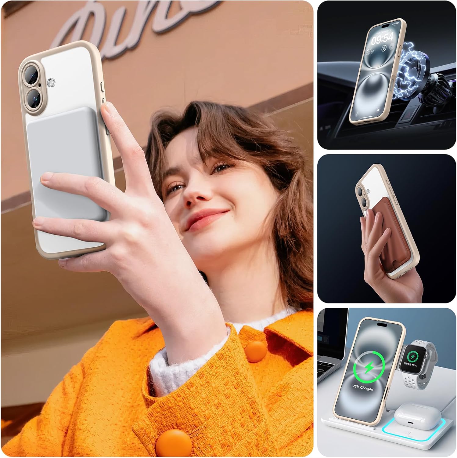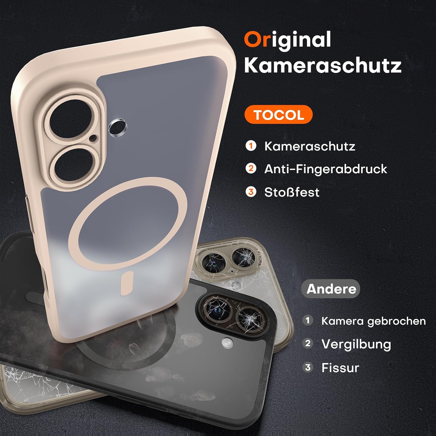 TOCOL Калъф за iPhone 16 с Magsafe, пълна защита на камерата, удароустойчив, устойчив на надраскване, прозрачен гръб, магнитен калъф за мобилен телефон за iPhone 16, цвят пустинен пясък