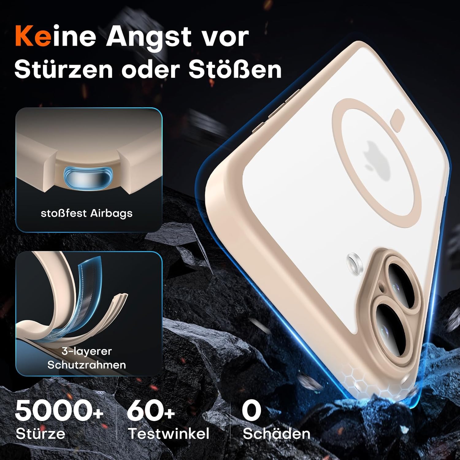• Максимална безопасност при падане: Този калъф за iPhone 17 е изработен от термопластичен полиуретан (TPU), абсорбиращ ударите, с 4-слойна система и 360° въздушна възглавница, която ефективно намалява щетите от падане.
