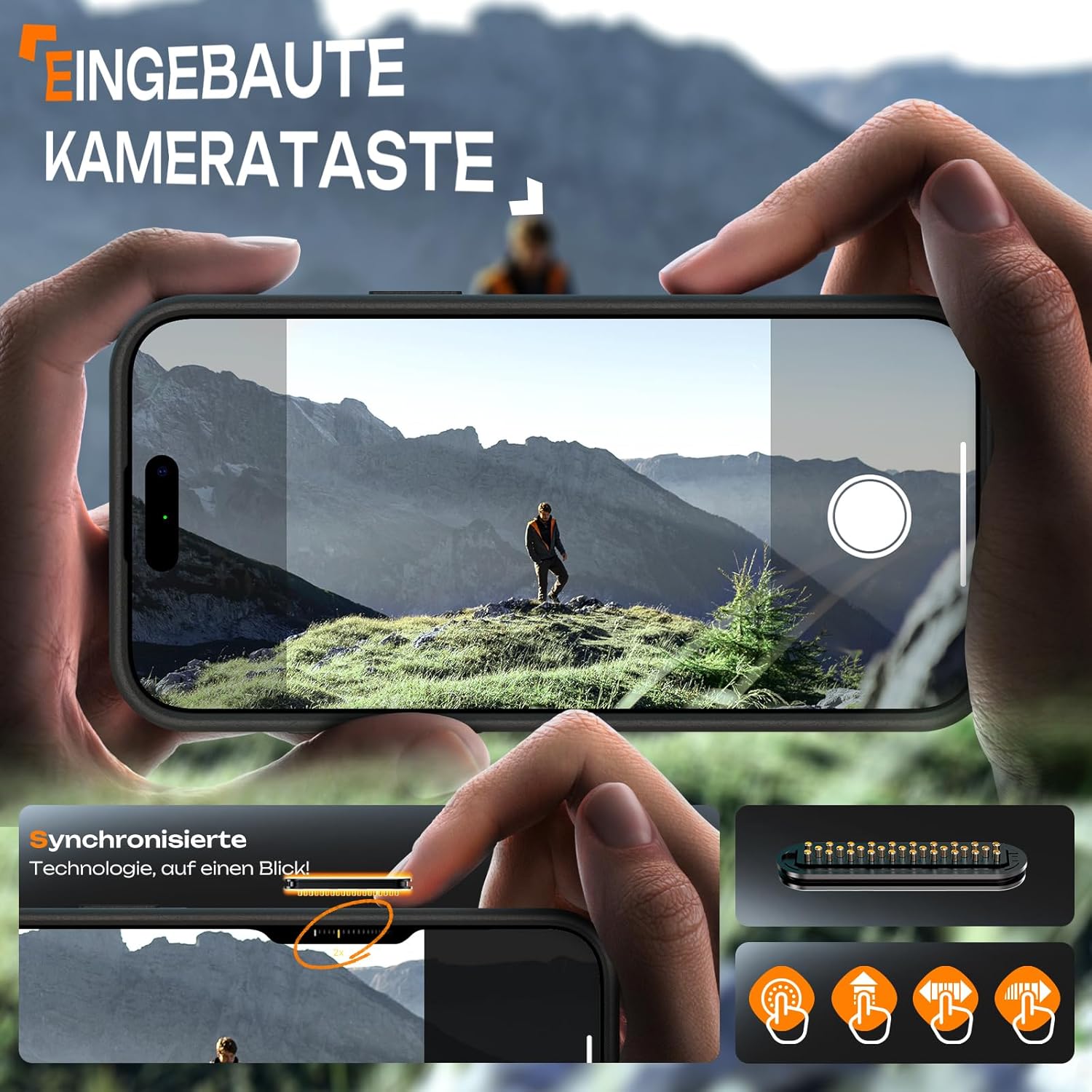 • Проектиран за защита на камерата: Защитният калъф по цялата повърхност с прецизен изрез за обектива осигурява максимална защита на камерата, без да се прави компромис с качеството на изображението. Повдигнатият ръб от 0,8 мм предпазва обективите на камерата на мобилния телефон от надраскване.