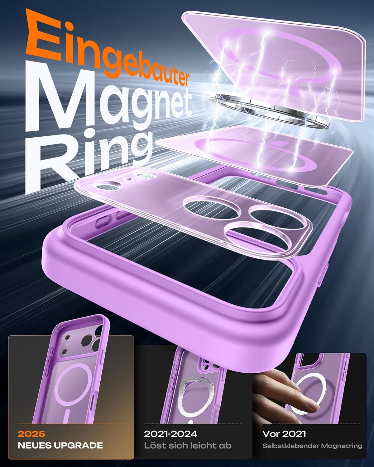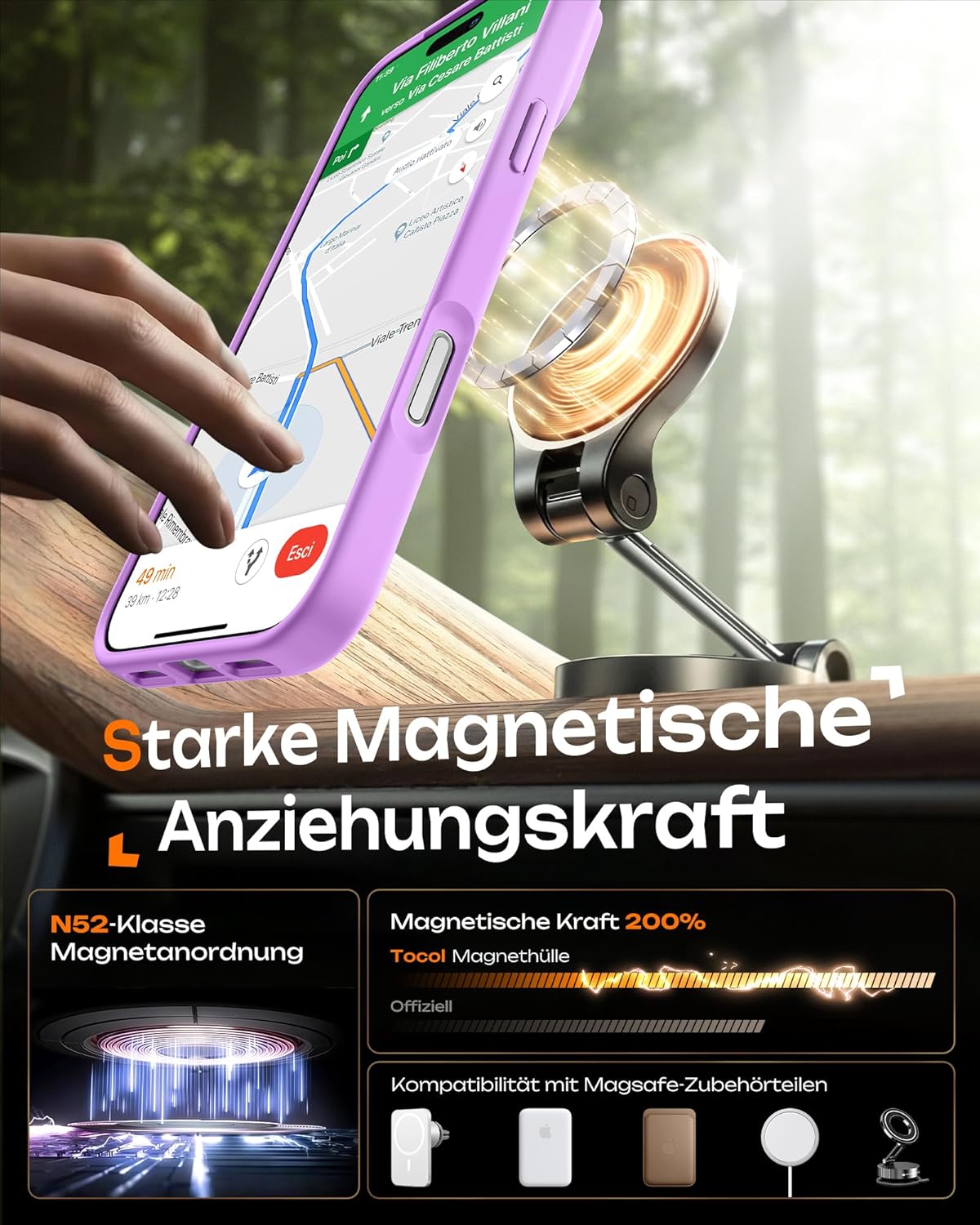 • Вграден магнитен пръстен: Магнитен калъф за iPhone 17 с вграден магнитен пръстен, никога не се разхлабва. Висока сила на задържане 20N за всички магнитни аксесоари. Остава стабилен в стойката за кола дори при тежки, неравни подове.