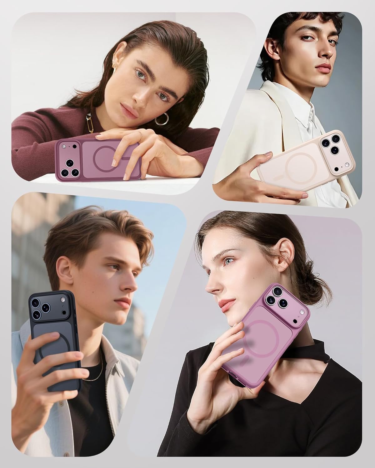 TOCOL Калъф за iPhone 17 Pro с MagSafe, Пълна защита на камерата, Вграден магнитен пръстен, Удароустойчив, Устойчив на надраскване, Прозрачен матов Калъф за мобилен телефон за iPhone 17 Pro 6.3 инча, Сливов