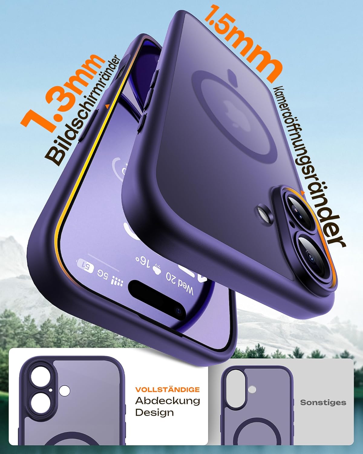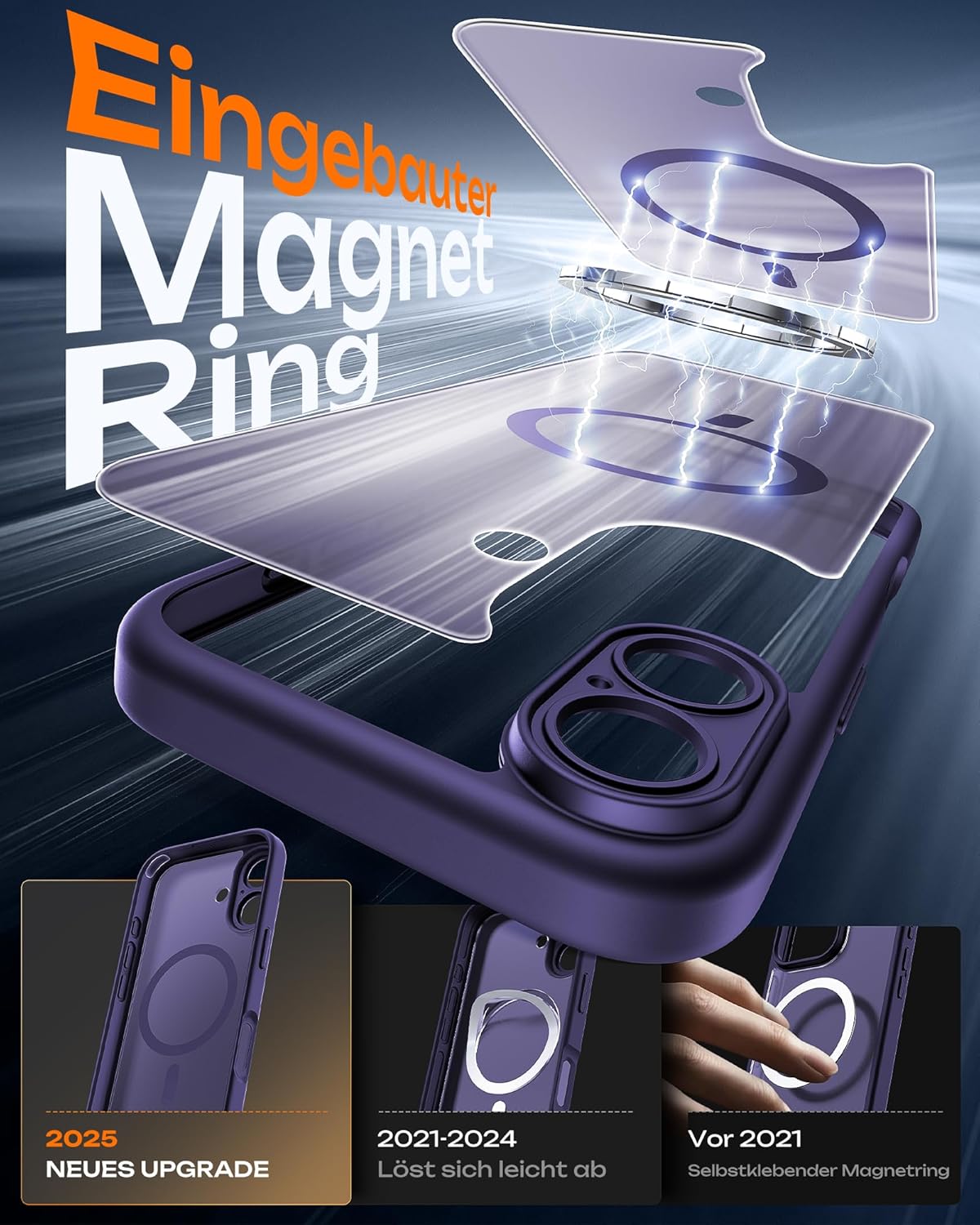 TOCOL Калъф за iPhone 17 с MagSafe, пълна защита на камерата, вграден магнитен пръстен, удароустойчив, устойчив на надраскване, прозрачен матов калъф за мобилен телефон за iPhone 17 6.3 инча, тъмно лилав