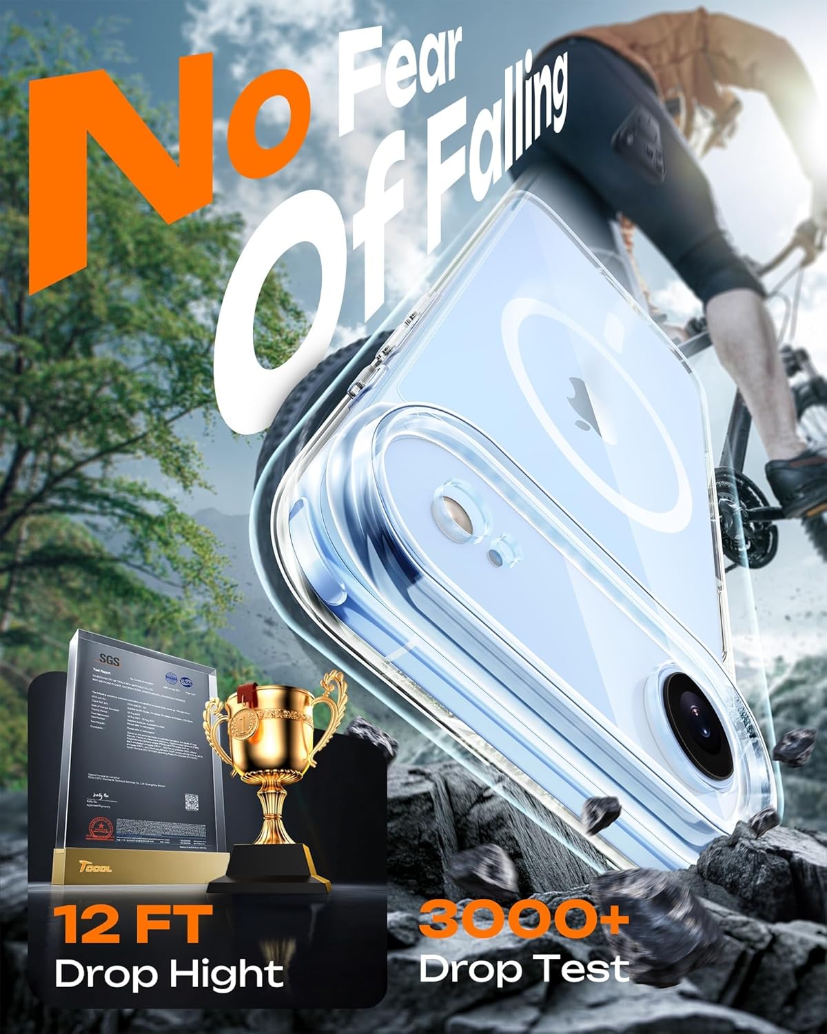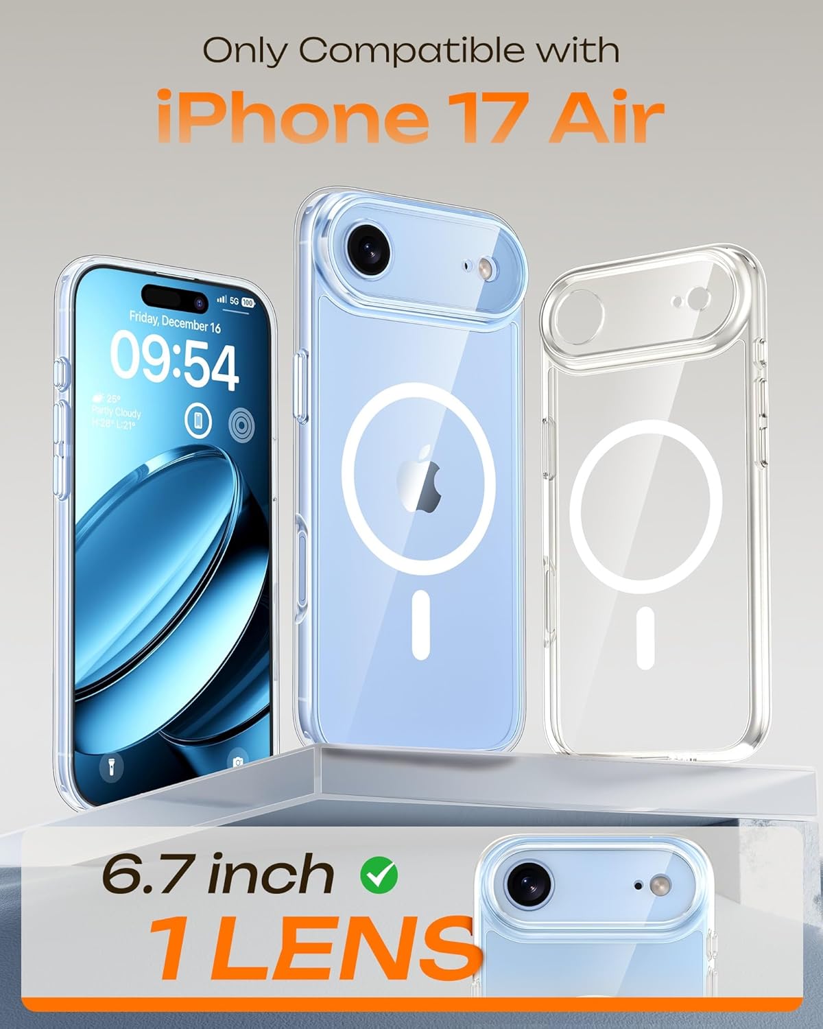 TOCOL Калъф за iPhone Air с MagSafe, Пълна защита на камерата, Никога не пожълтява, Удароустойчив, Устойчив на надраскване, Магнитен Калъф за Мобилен Телефон за iPhone 17 Air 6.5 инча, Прозрачен
