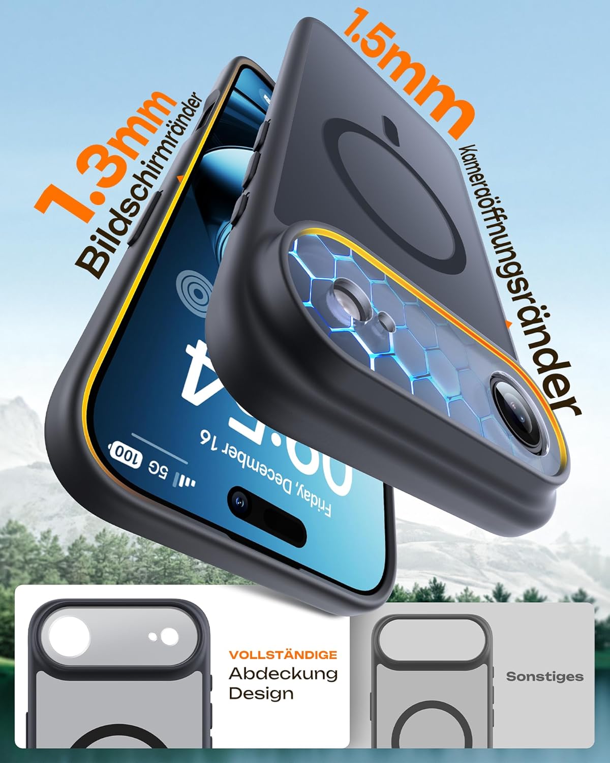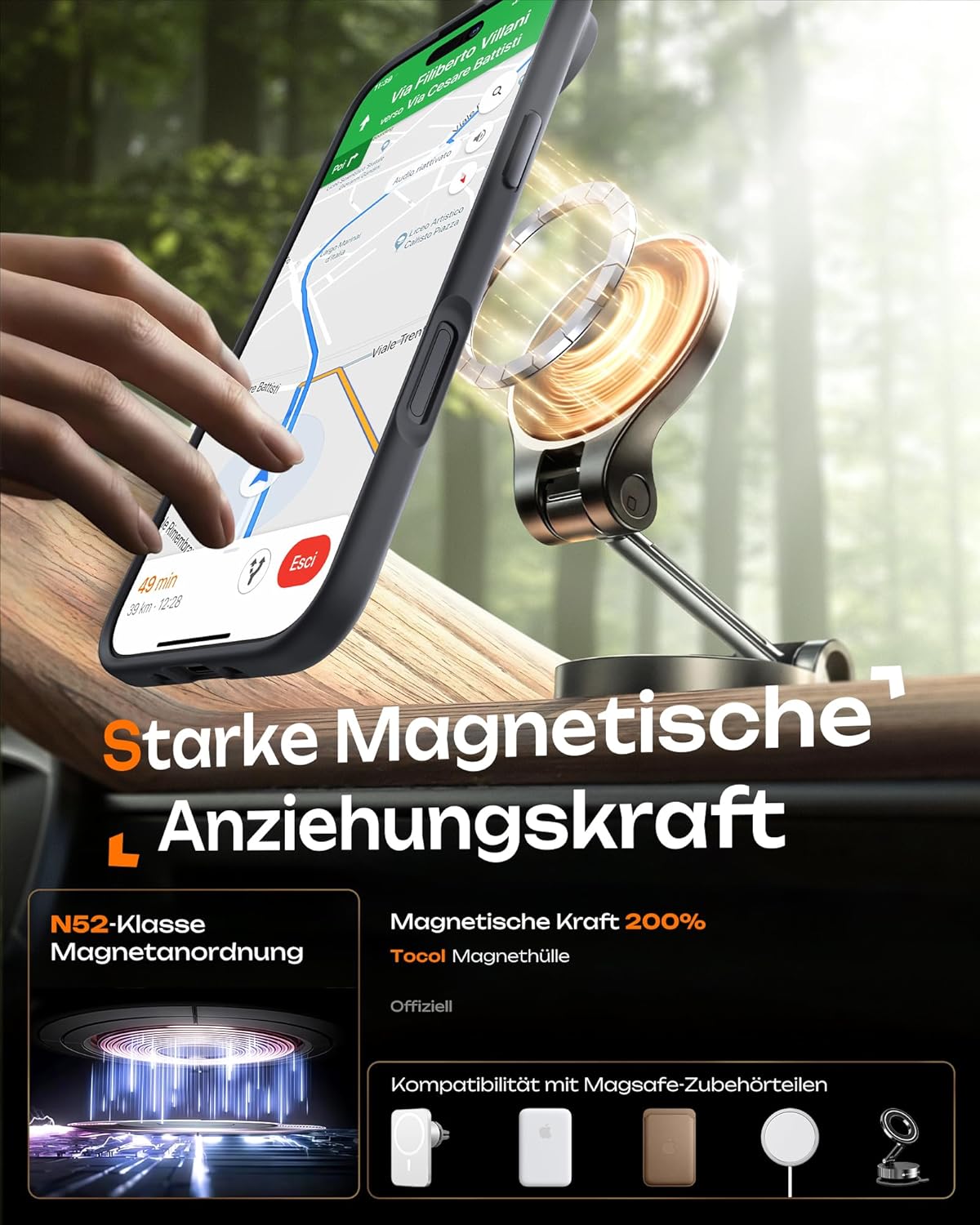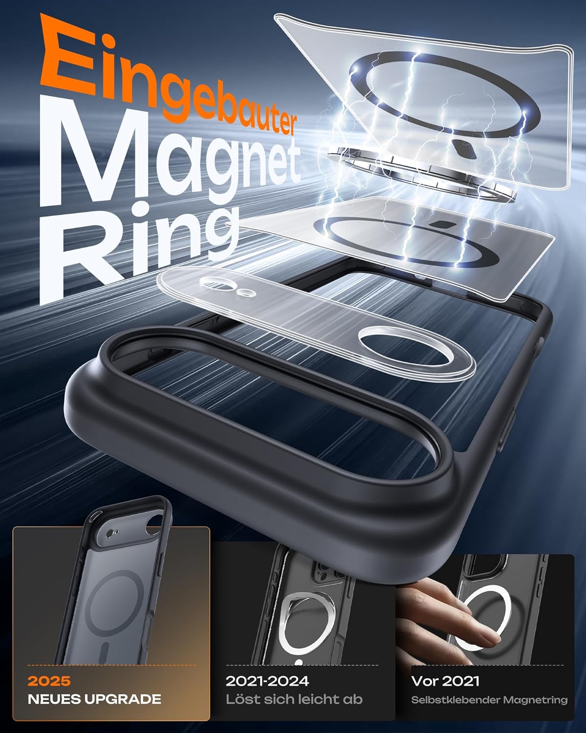 • Вграден магнитен пръстен: Магнитен калъф за iPhone 17 с вграден магнитен пръстен, никога не се разхлабва. Висока сила на задържане 20N за всички магнитни аксесоари. Остава стабилен в стойката за кола дори при тежки, неравни подове.