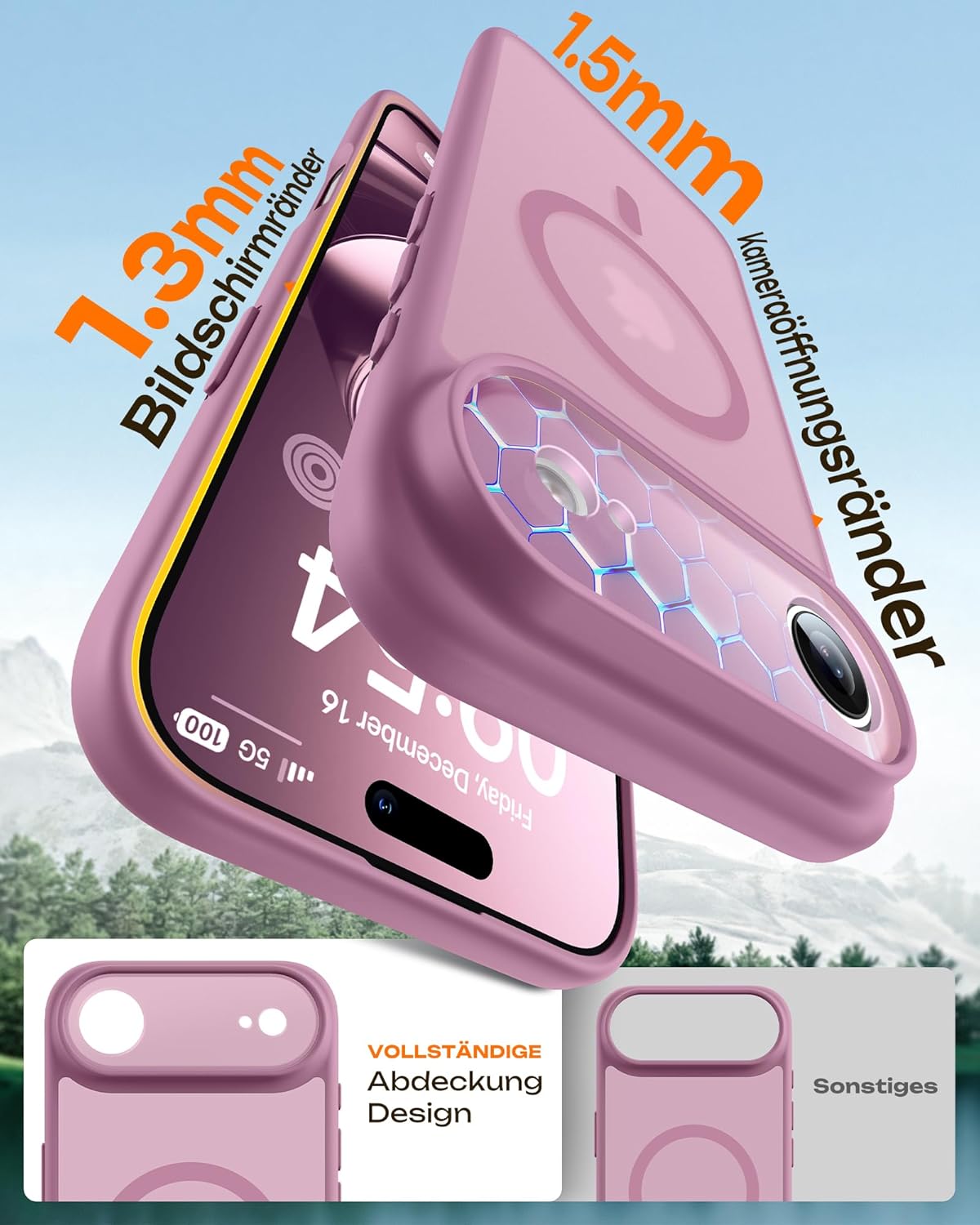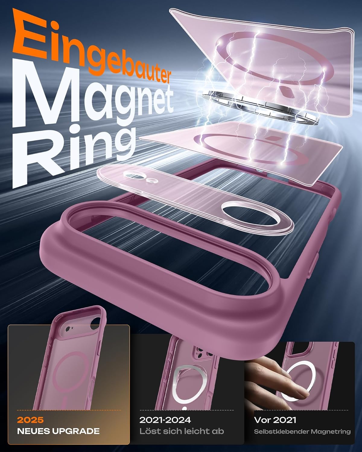 • Вграден магнитен пръстен: Магнитен калъф за iPhone 17 с вграден магнитен пръстен, никога не се разхлабва. Висока сила на задържане 20N за всички магнитни аксесоари. Остава стабилен в стойката за кола дори при тежки, неравни подове.