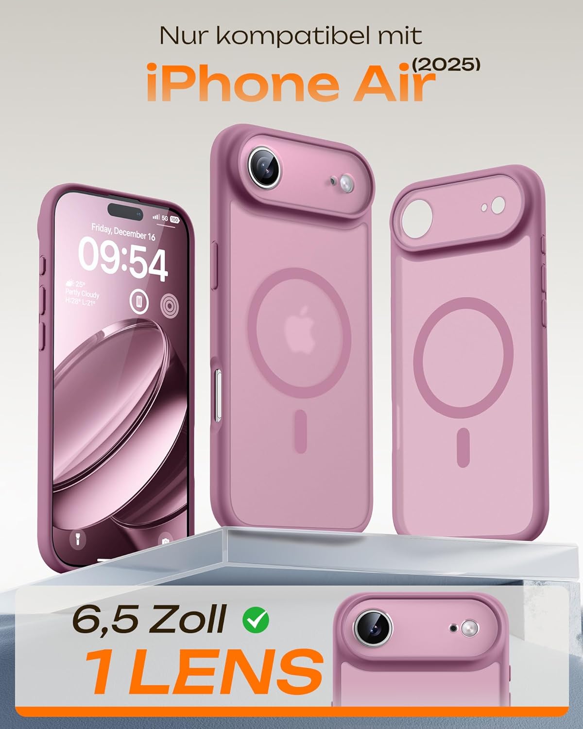 TOCOL Калъф за iPhone Air с MagSafe, пълна защита на камерата, вграден магнитен пръстен, удароустойчив, устойчив на надраскване, прозрачен матов калъф за мобилен телефон за iPhone 17 Air 6.5 инча, лилав