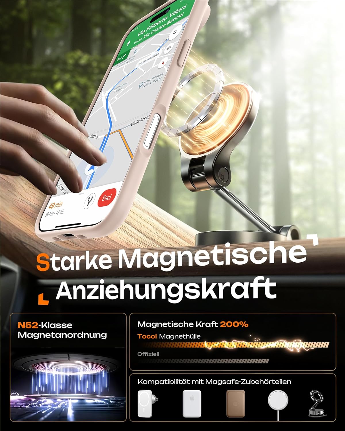 • Вграден магнитен пръстен: Магнитен калъф за iPhone 17 с вграден магнитен пръстен, никога не се разхлабва. Висока сила на задържане 20N за всички магнитни аксесоари. Остава стабилен в стойката за кола дори при тежки, неравни подове.