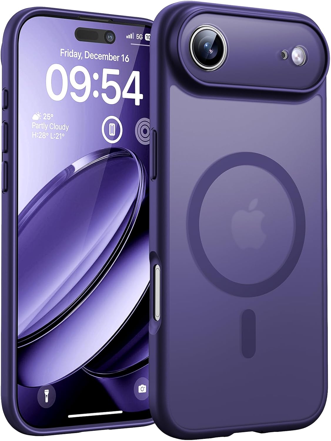 TOCOL Калъф за iPhone Air с MagSafe, пълна защита на камерата, вграден магнитен пръстен, удароустойчив, устойчив на надраскване, прозрачен матов калъф за мобилен телефон за iPhone 17 Air 6.5 инча, тъмно лилав