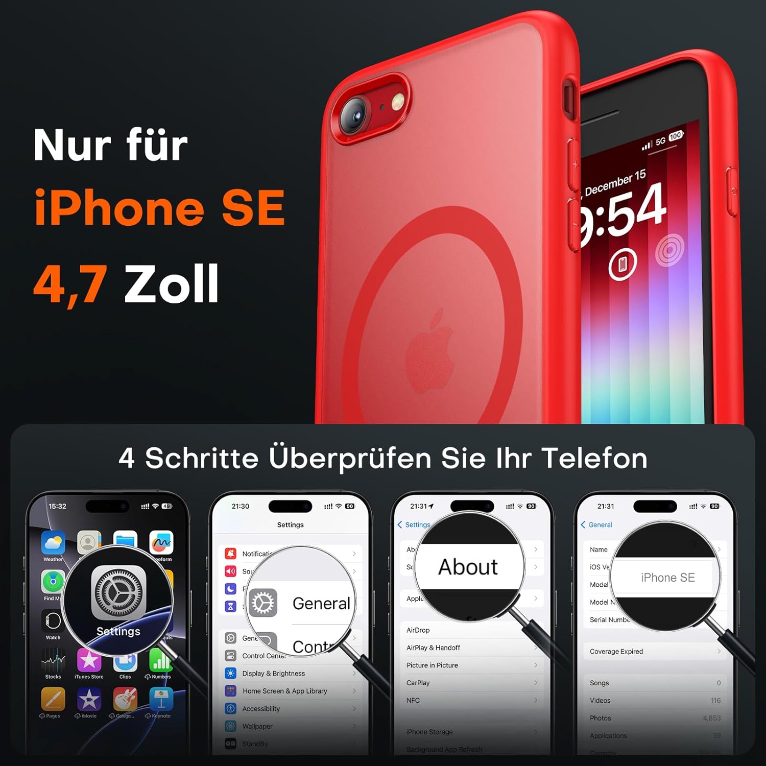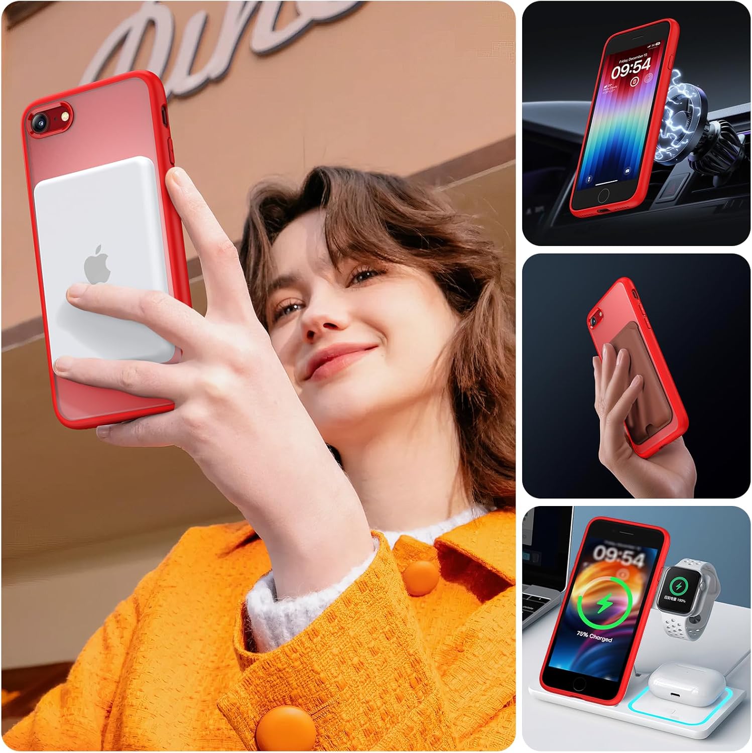 TOCOL Калъф за iPhone SE с Magsafe, за iPhone 8/7 Калъф, Удароустойчив, Против Отпечатъци от Пръсти, Устойчив на Надраскване, Прозрачен Заден Държач, Матов Магнитен Калъф за Мобилен Телефон за iPhone 8/7/SE 3/2 (2022/2020)