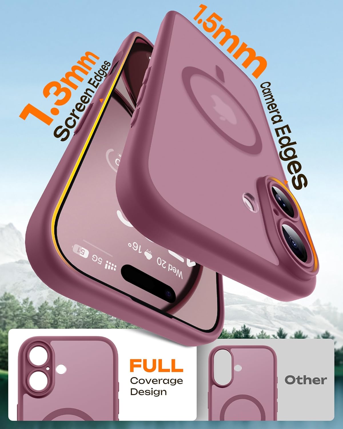 TOCOL Калъф за Magnetic 2025 6.3 инча, Пълна защита на камерата, Вграден магнитен пръстен, Удароустойчив, Устойчив на надраскване, Прозрачен матов калъф за мобилен телефон, Сливов