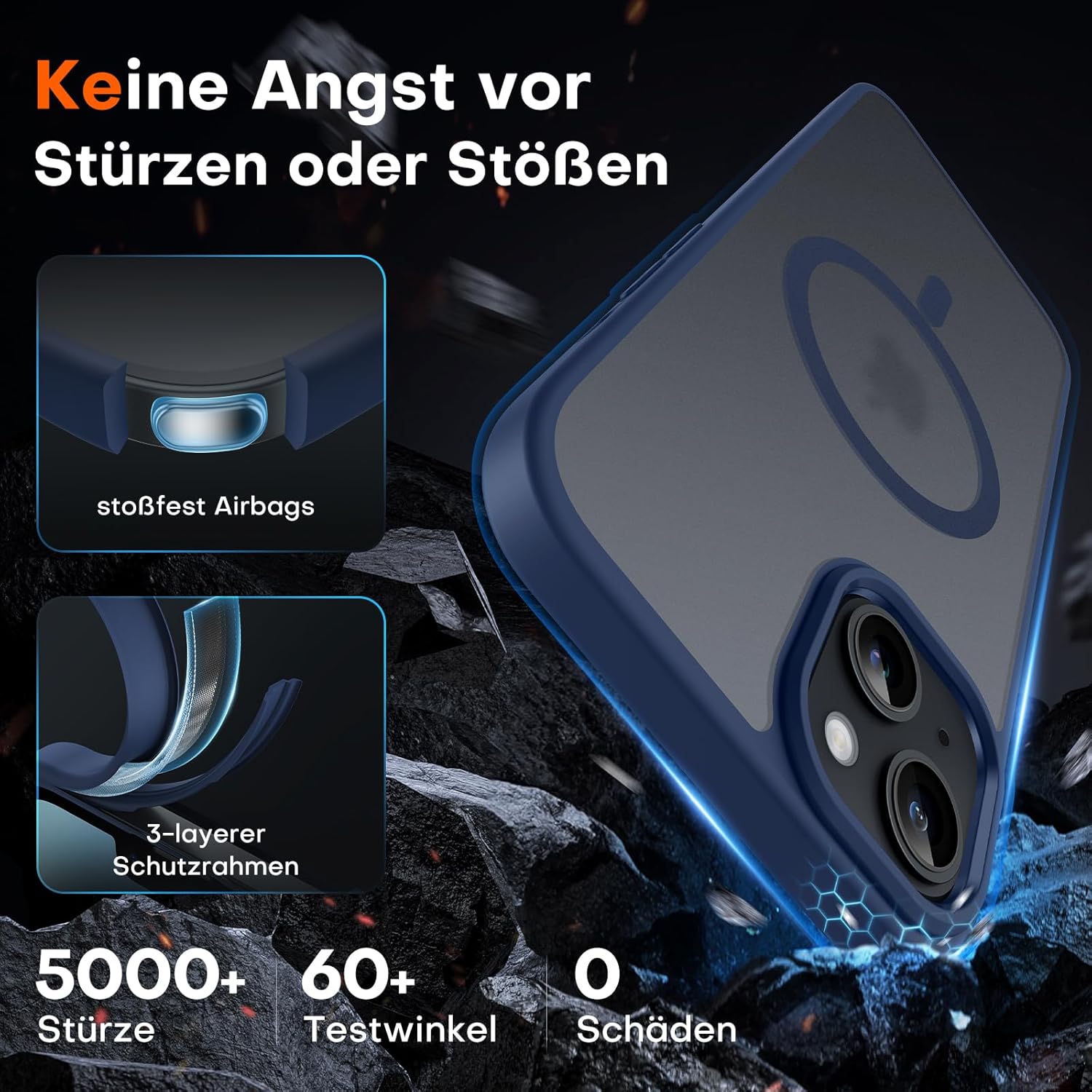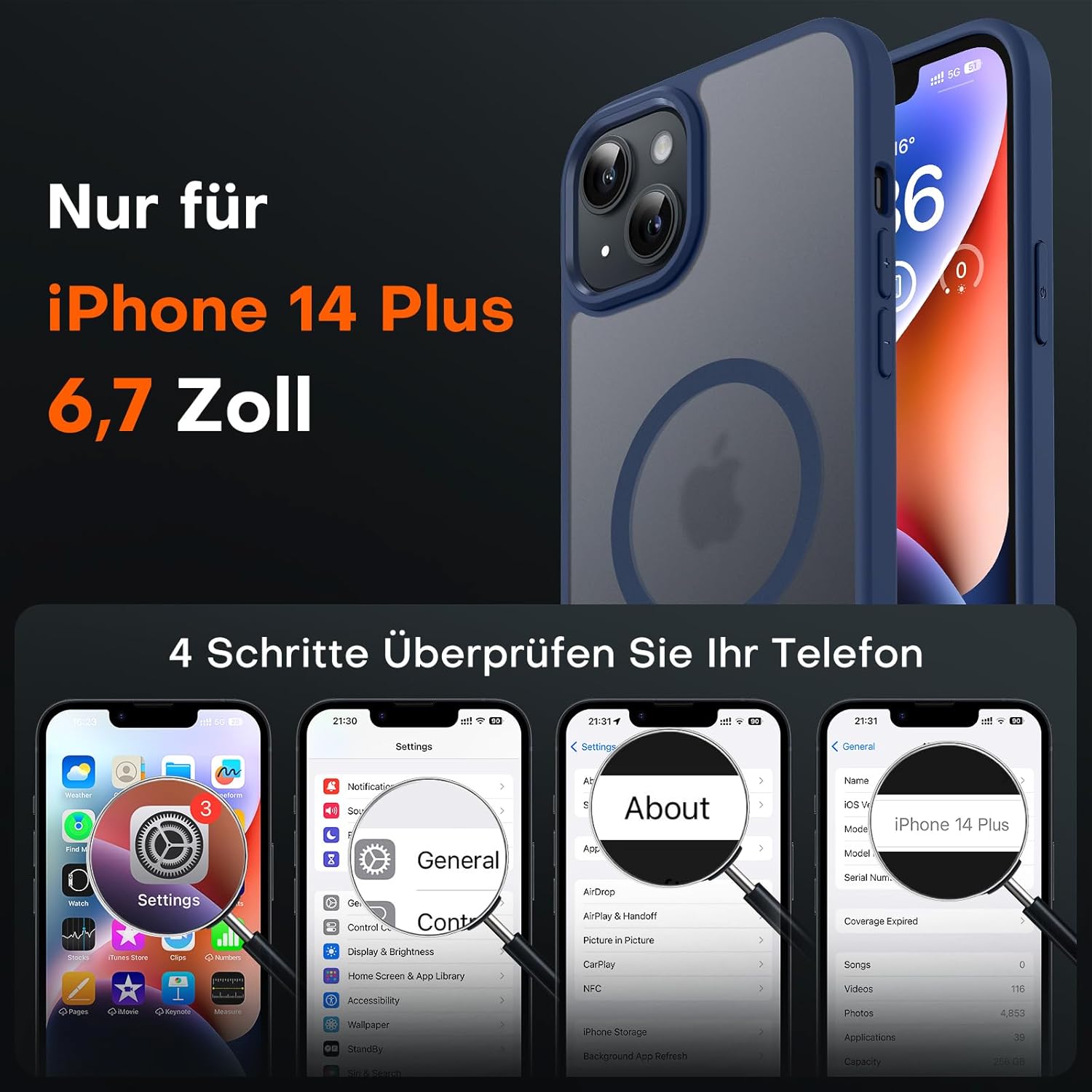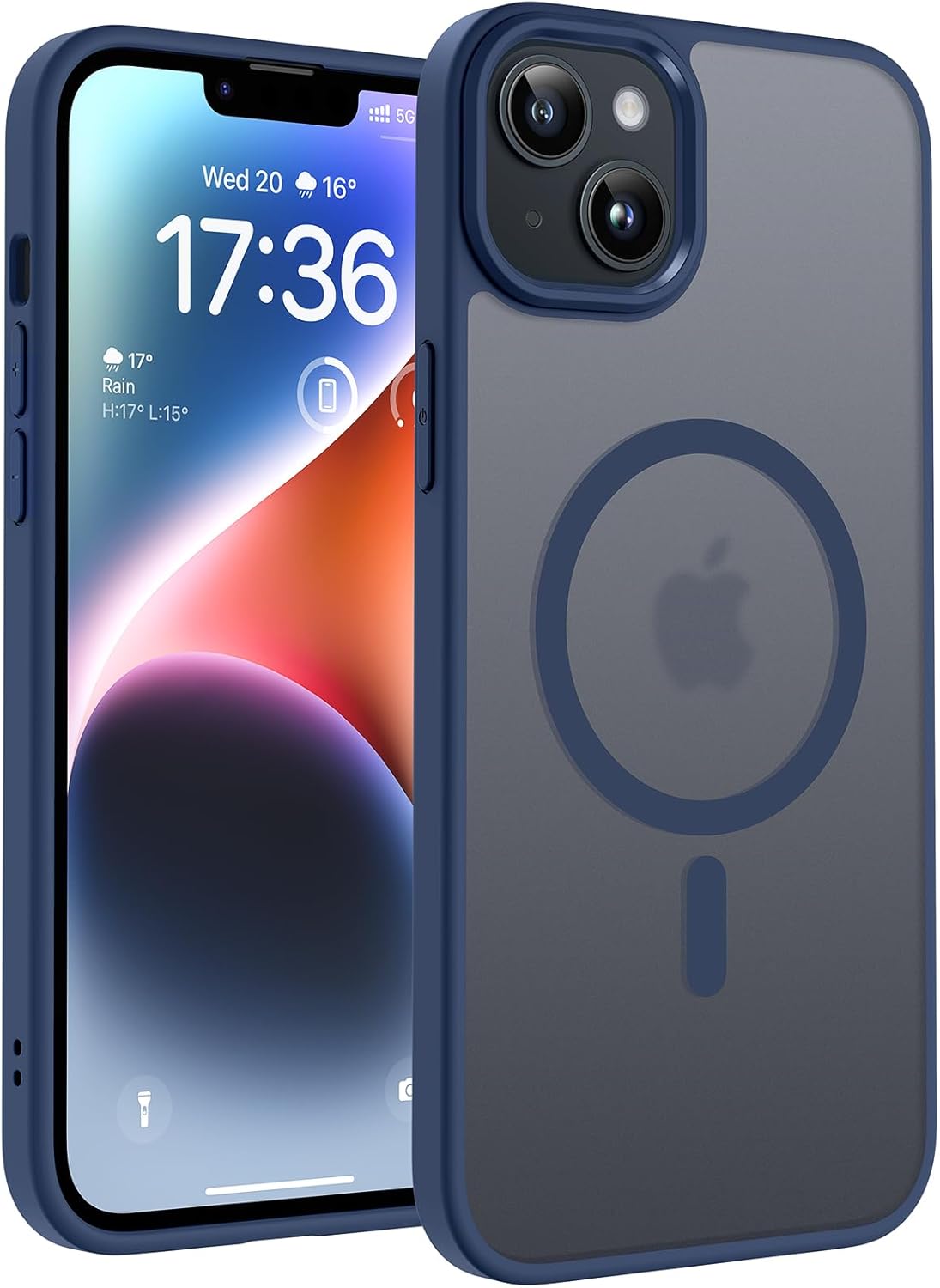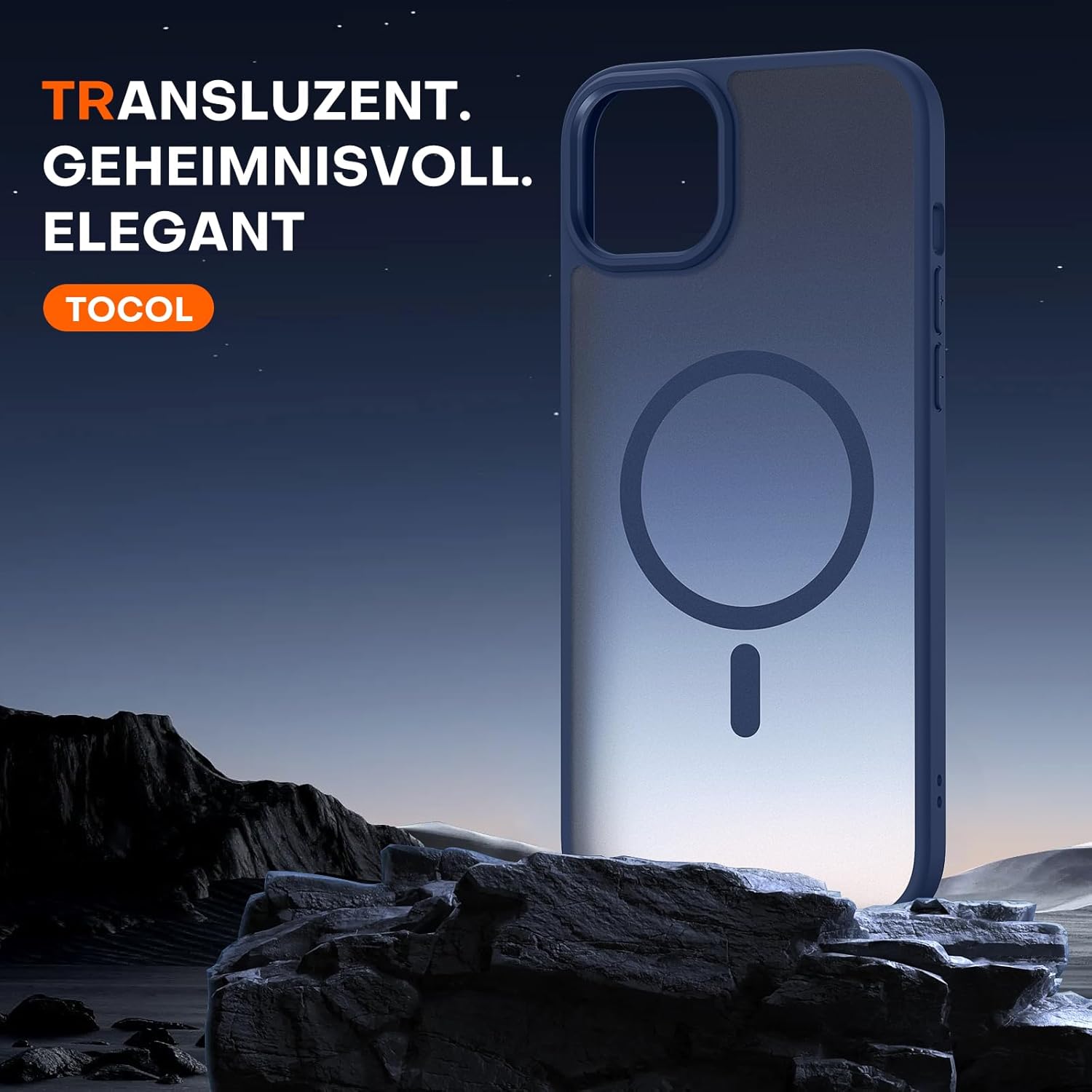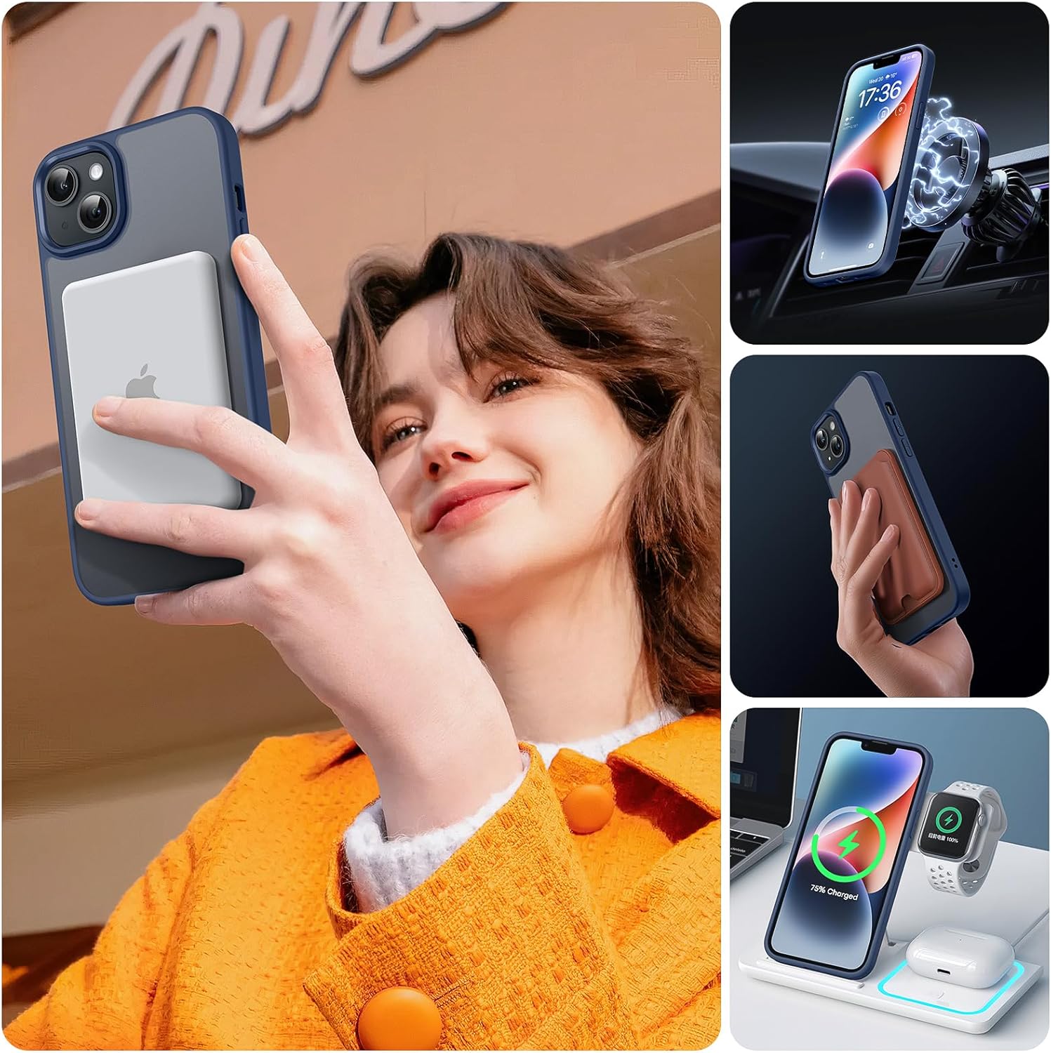 TOCOL Кейс за iPhone 14 Plus с Magsafe покритие, Удароустойчив, Против пръстови отпечатъци, Устойчив на надраскване, Прозрачен гръб, Неплъзгащ се, Матов, Магнитен Кейс за Мобилен Телефон за iPhone 14 Plus, Син