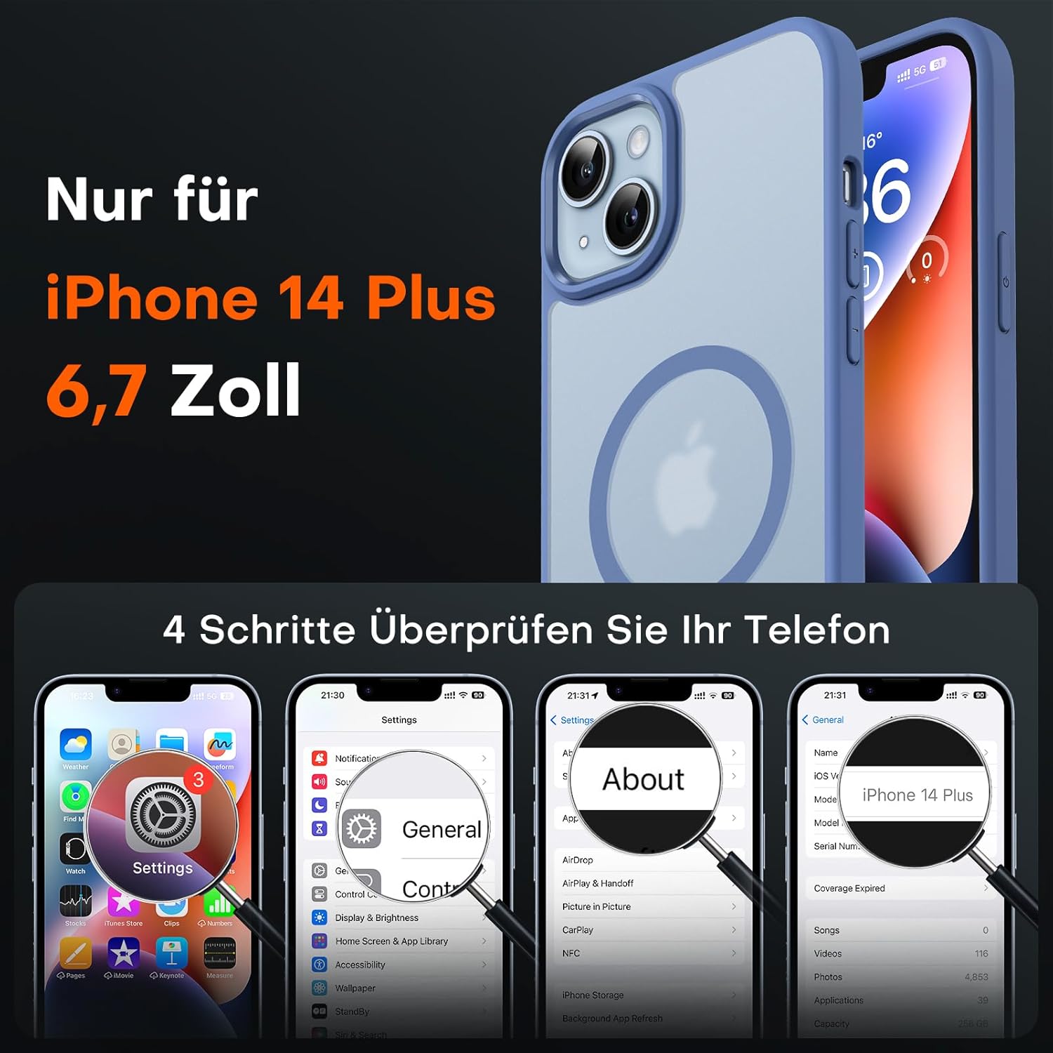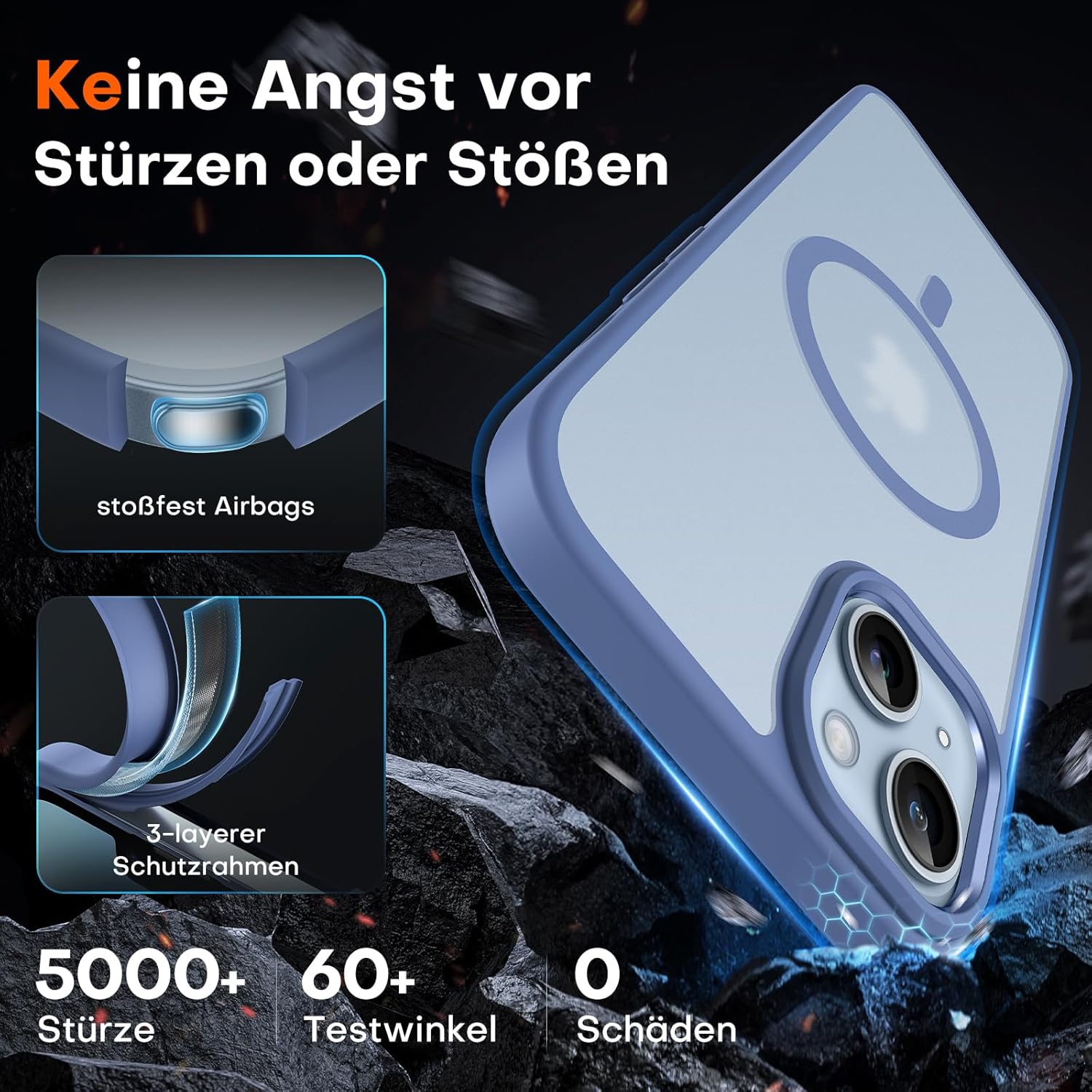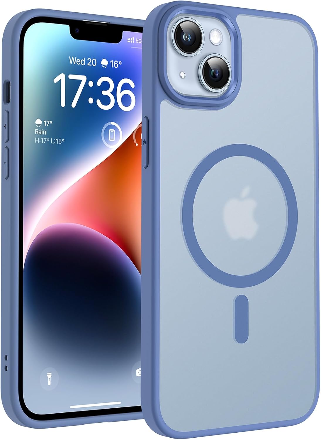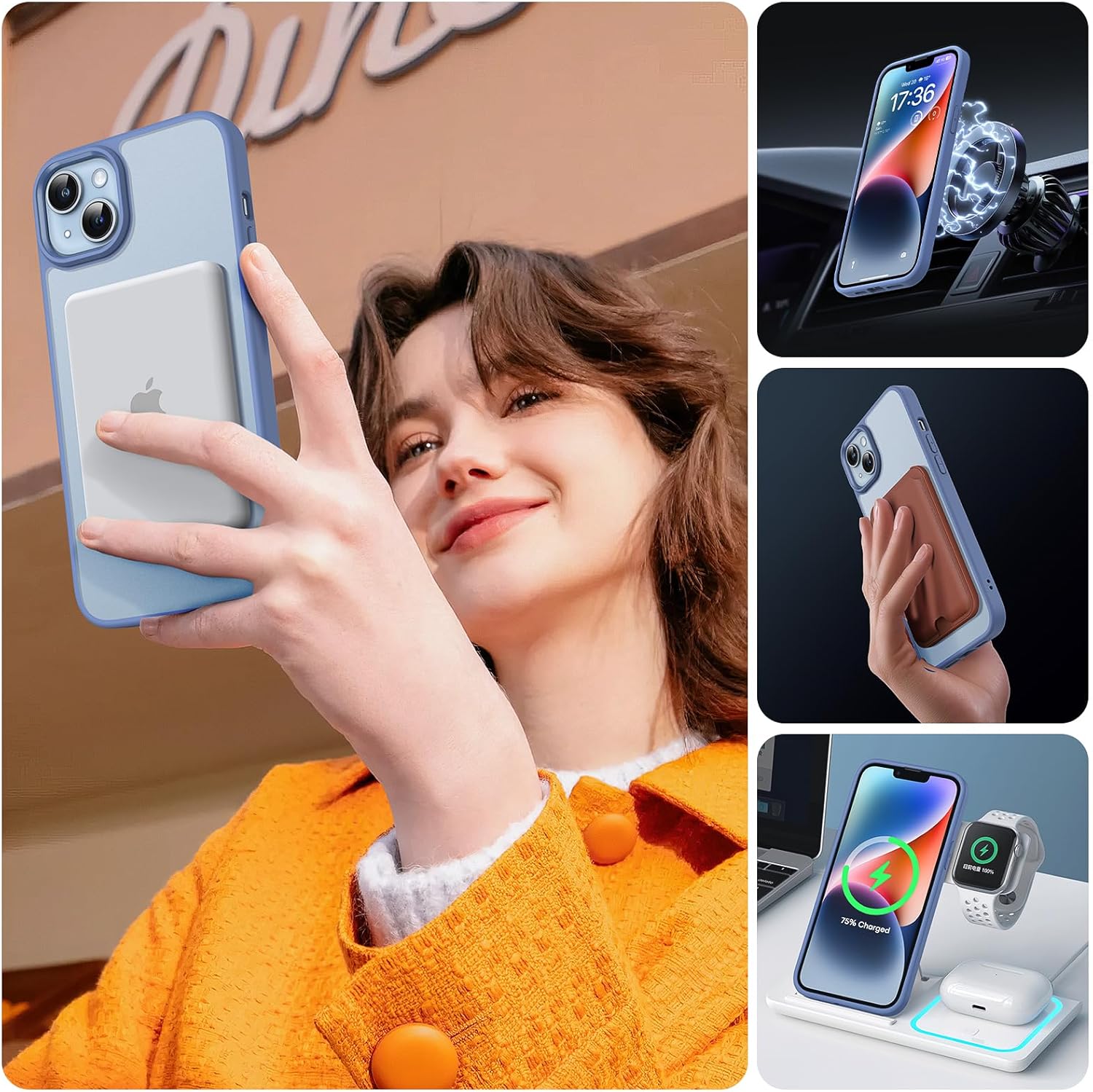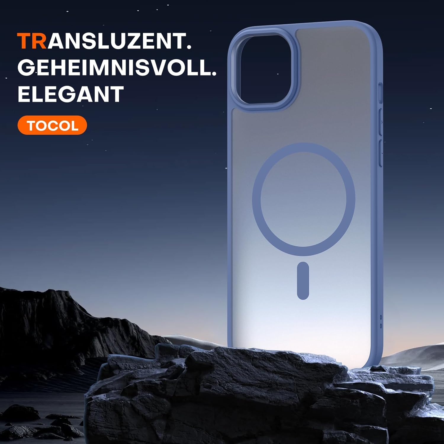 TOCOL Кейс за iPhone 14 Plus с Magsafe, Удароустойчив, Против пръстови отпечатъци, Устойчив на надраскване, Прозрачен гръб, Неплъзгащ се, Матов, Магнитен Кейс за Мобилен Телефон за iPhone 14 Plus, Светлосин