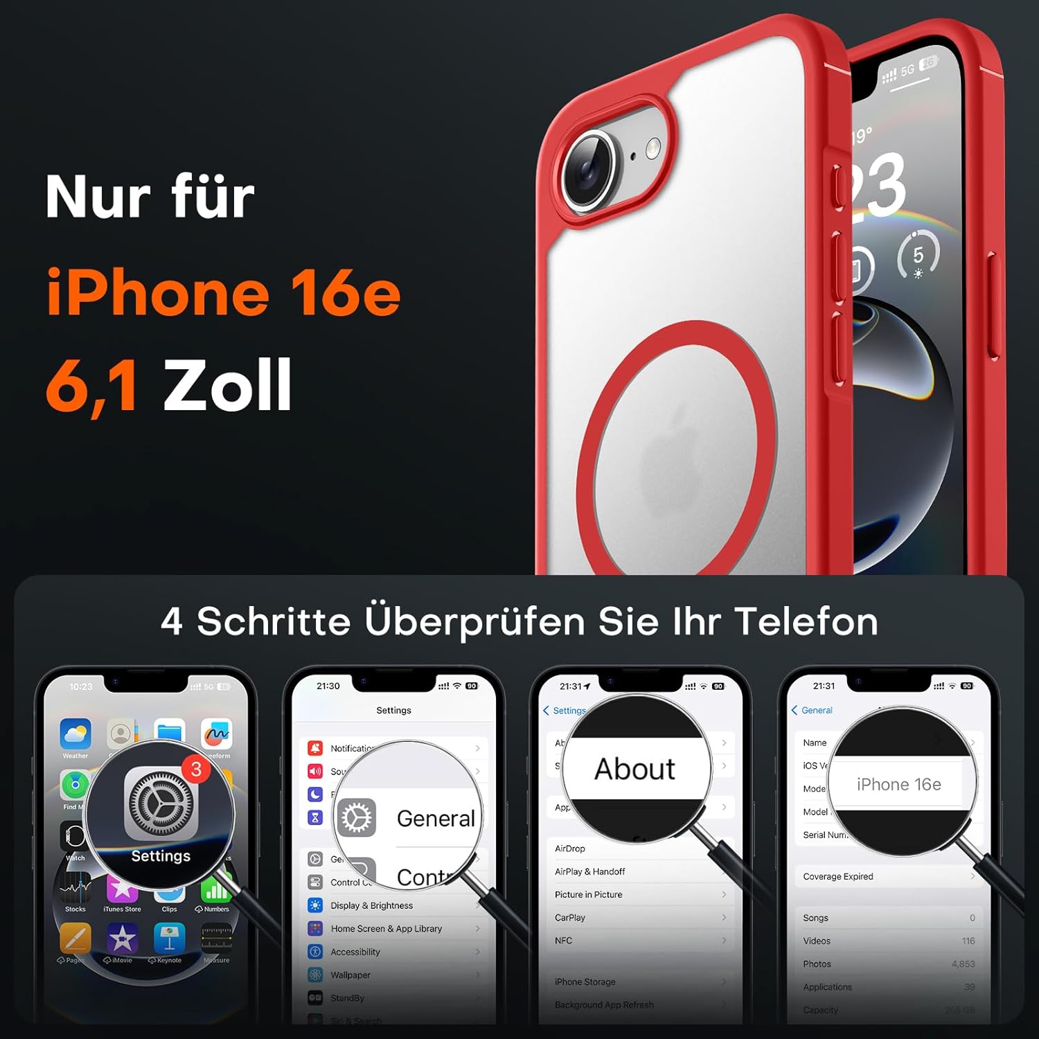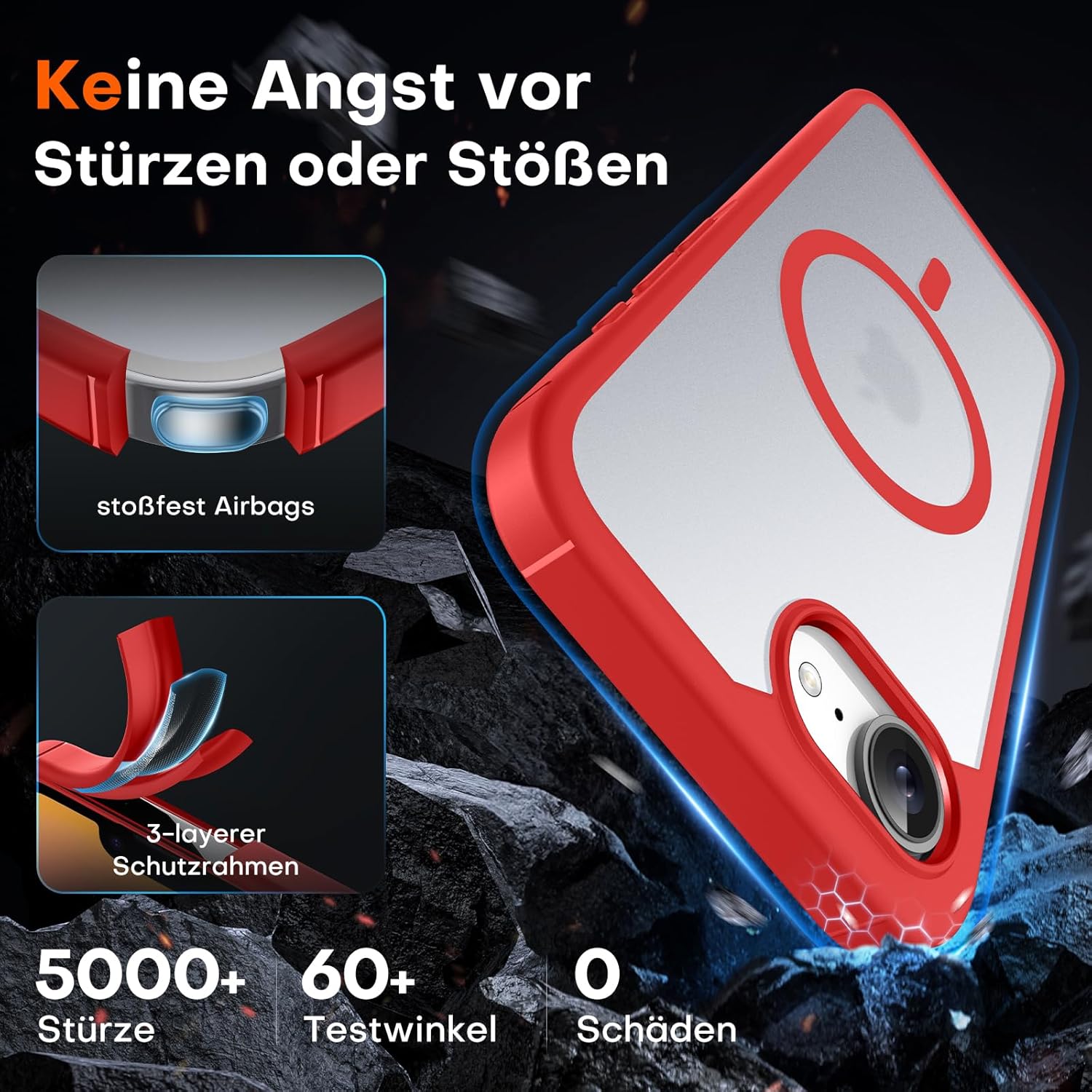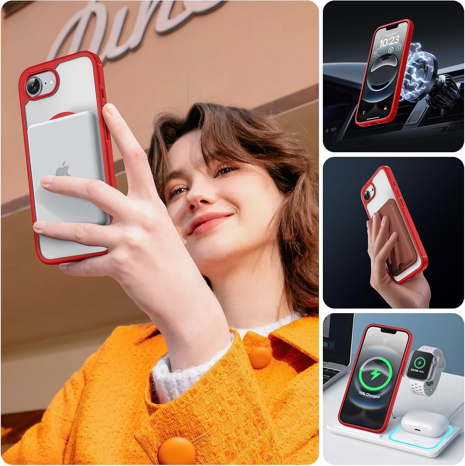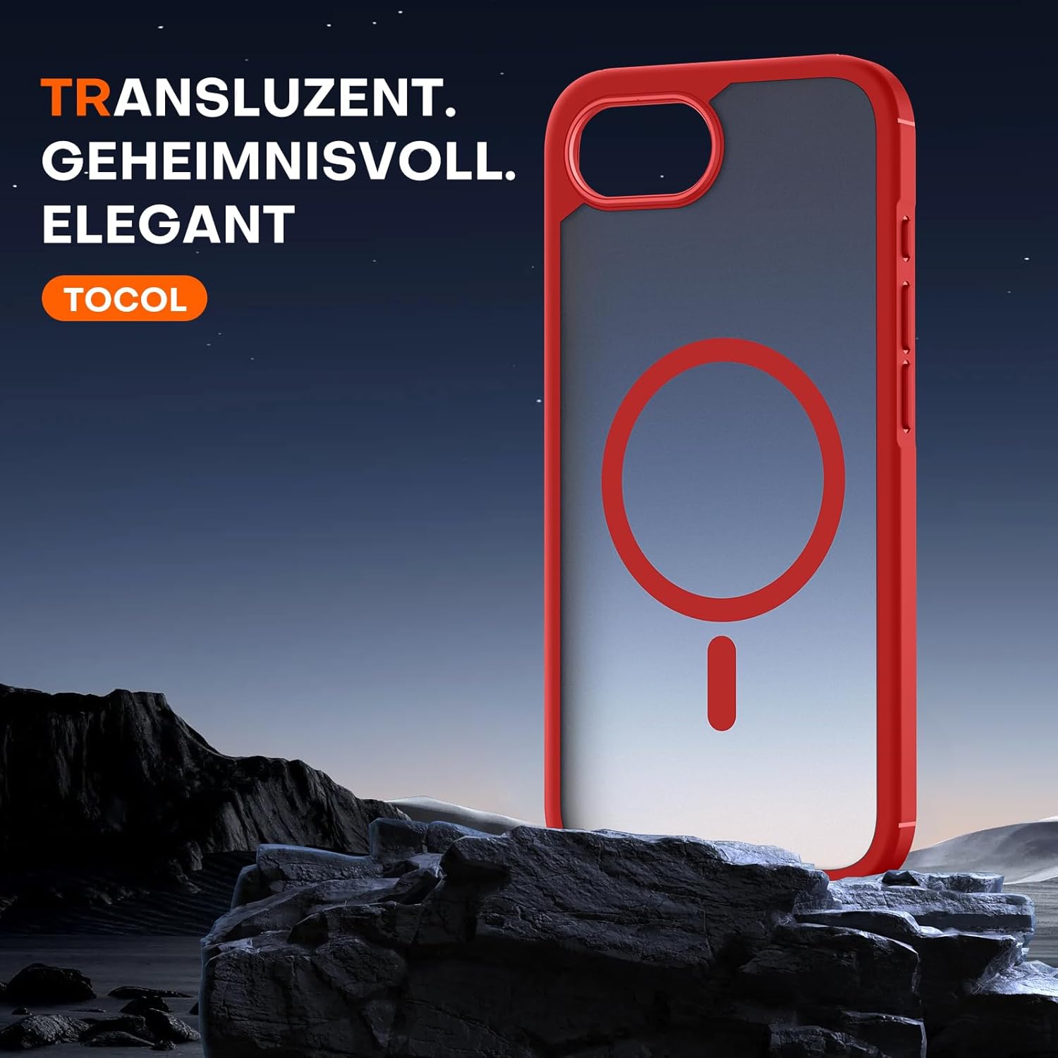 TOCOL Кейс за iPhone 16e с Magsafe покритие, Удароустойчив, Против пръстови отпечатъци, Устойчив на надраскване, Прозрачен гръб, Неплъзгащ се, Матов, Магнитен Кейс за Мобилен Телефон за iPhone 16e, Червен