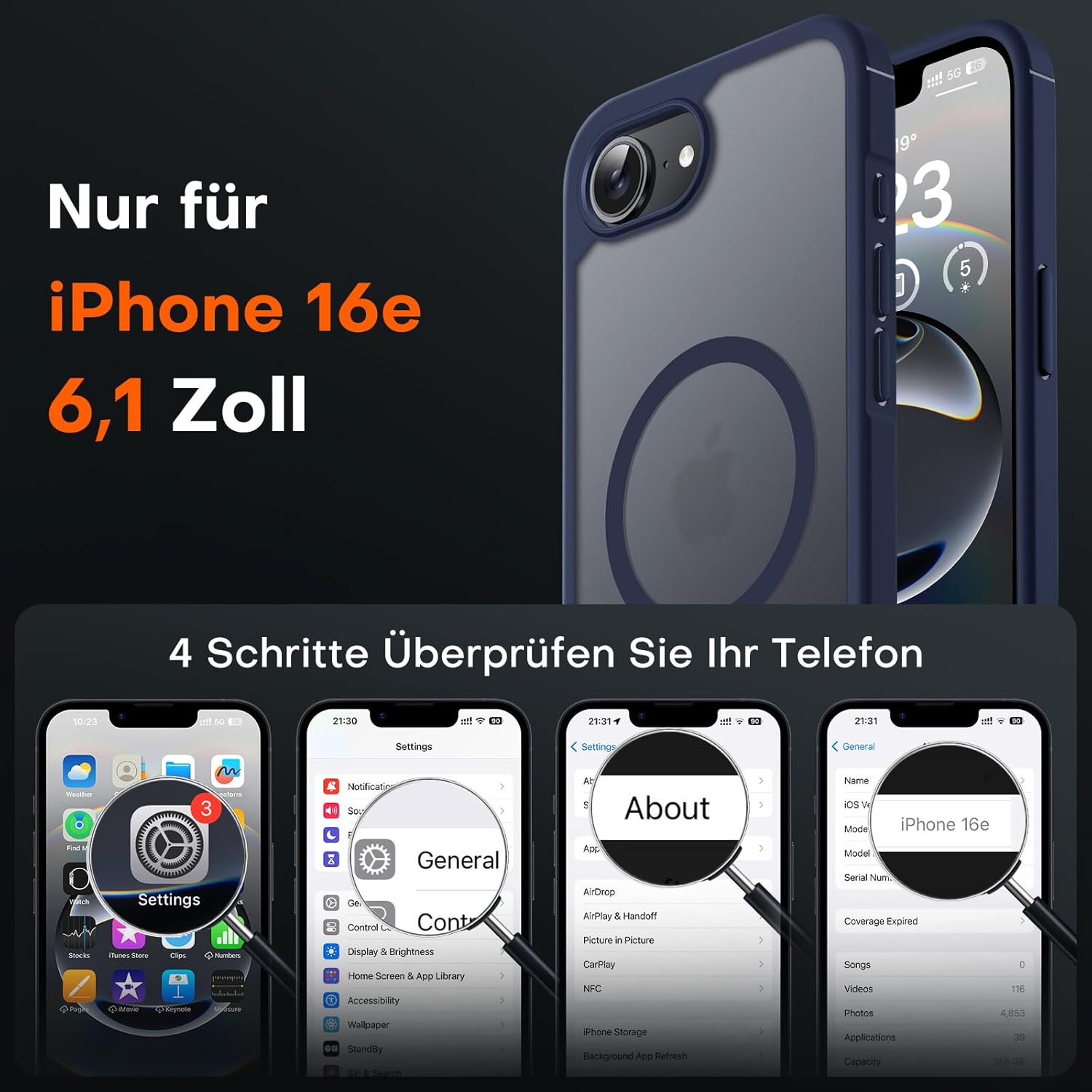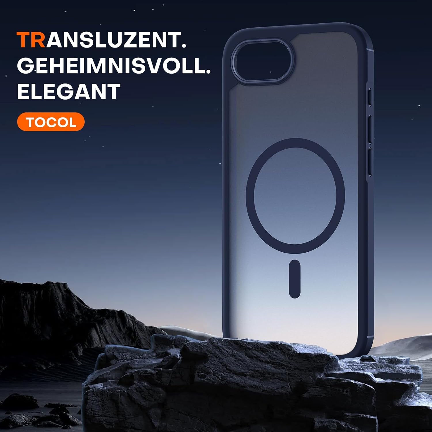 TOCOL Кейс за iPhone 16e с Magsafe покритие, Удароустойчив, Против пръстови отпечатъци, Устойчив на надраскване, Прозрачен гръб, Неплъзгащ се, Матов, Магнитен Кейс за Мобилен Телефон за iPhone 16e, Син