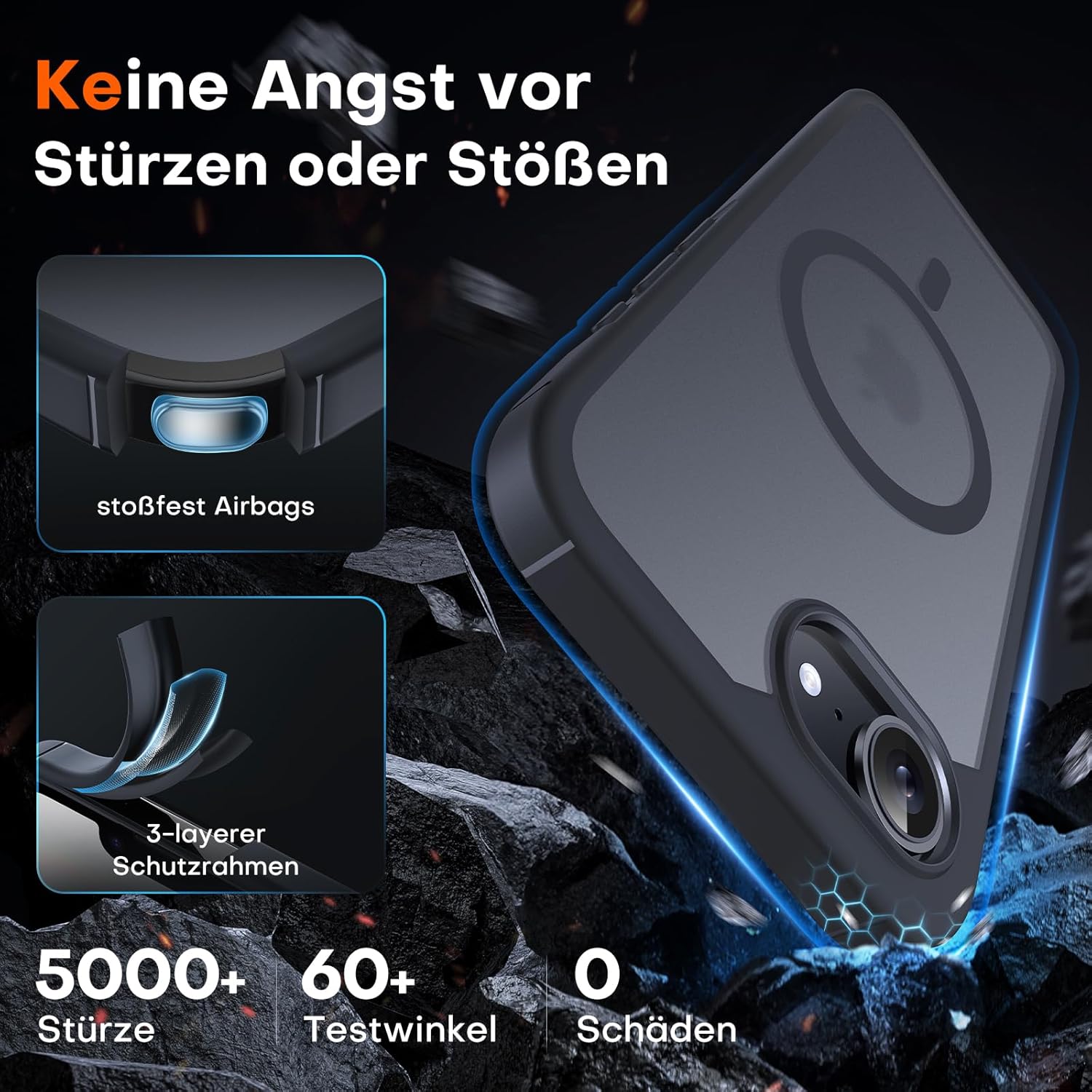 • Максимална безопасност при падане: Този калъф за iPhone 17 е изработен от термопластичен полиуретан (TPU), абсорбиращ ударите, с 4-слойна система и 360° въздушна възглавница, която ефективно намалява щетите от падане.